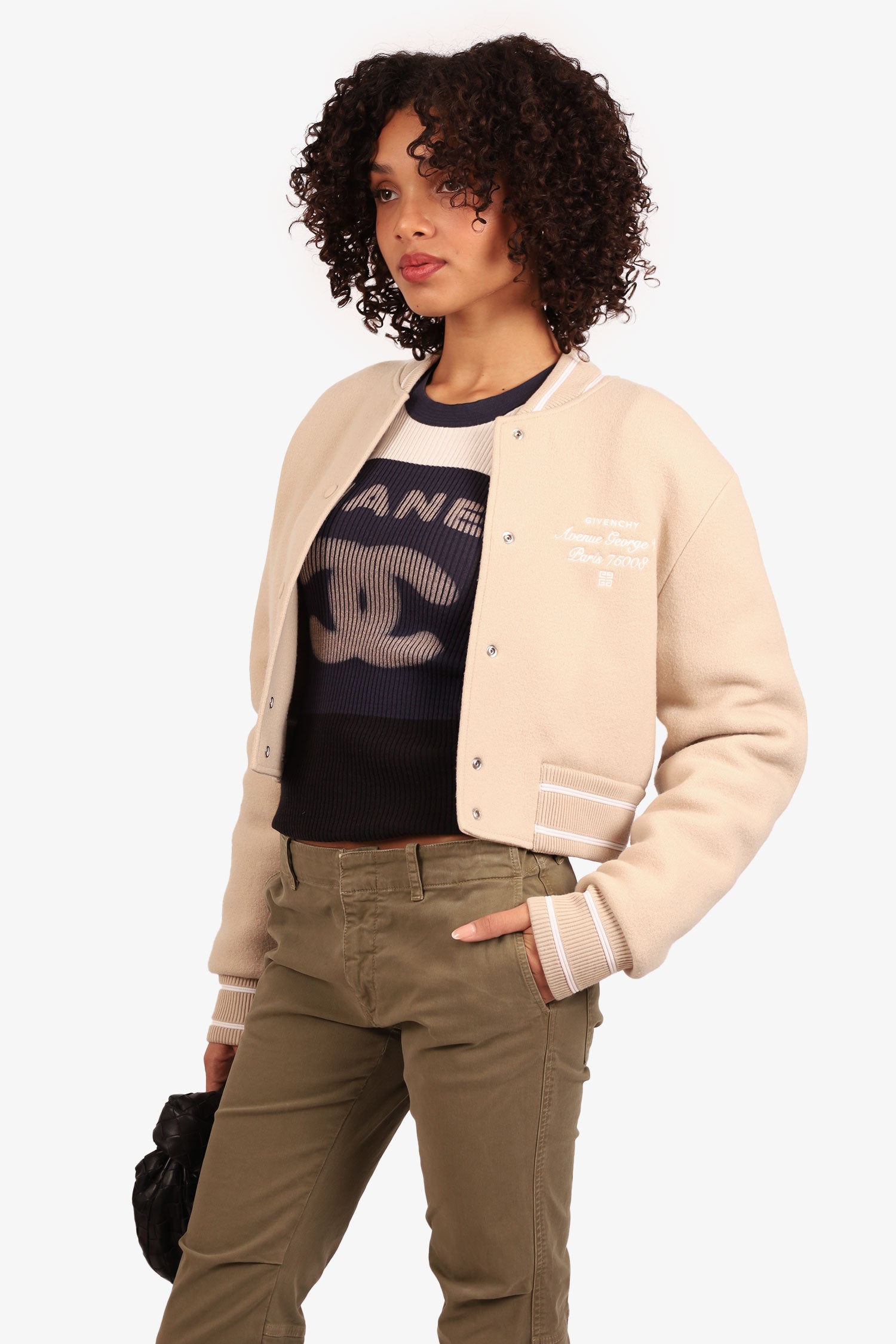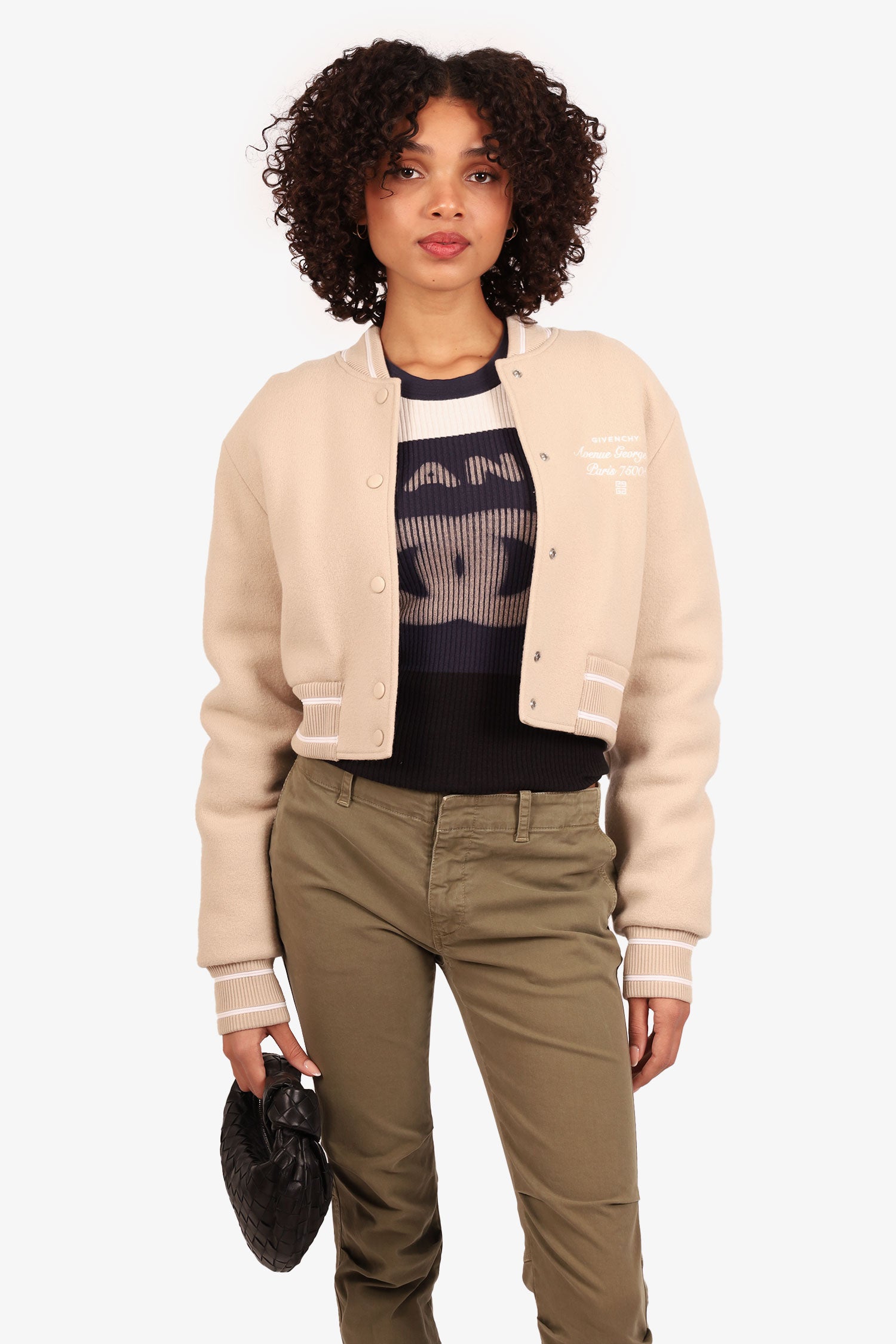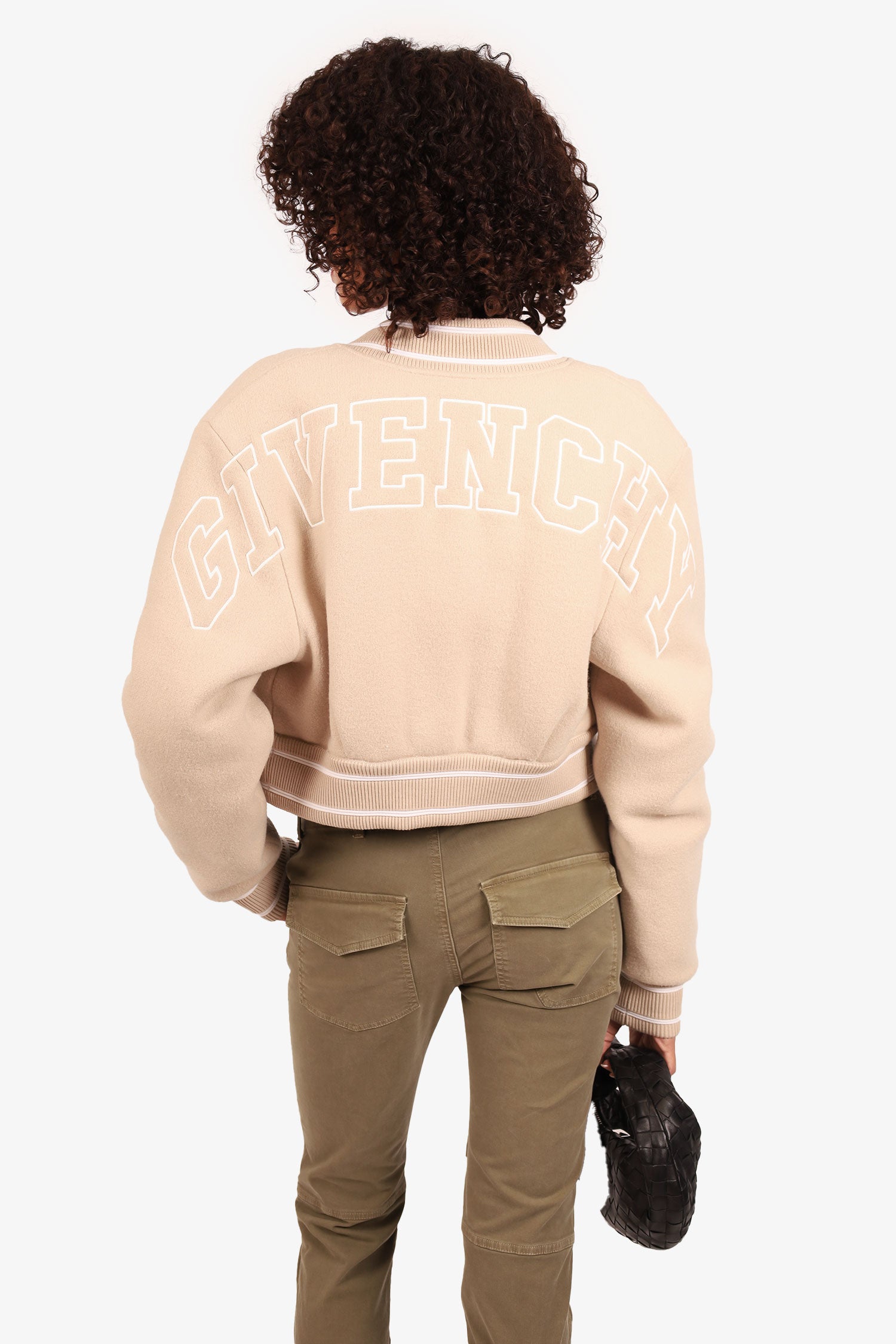 Givenchy Beige Cropped Embroidered Bomber Jacket Size XS