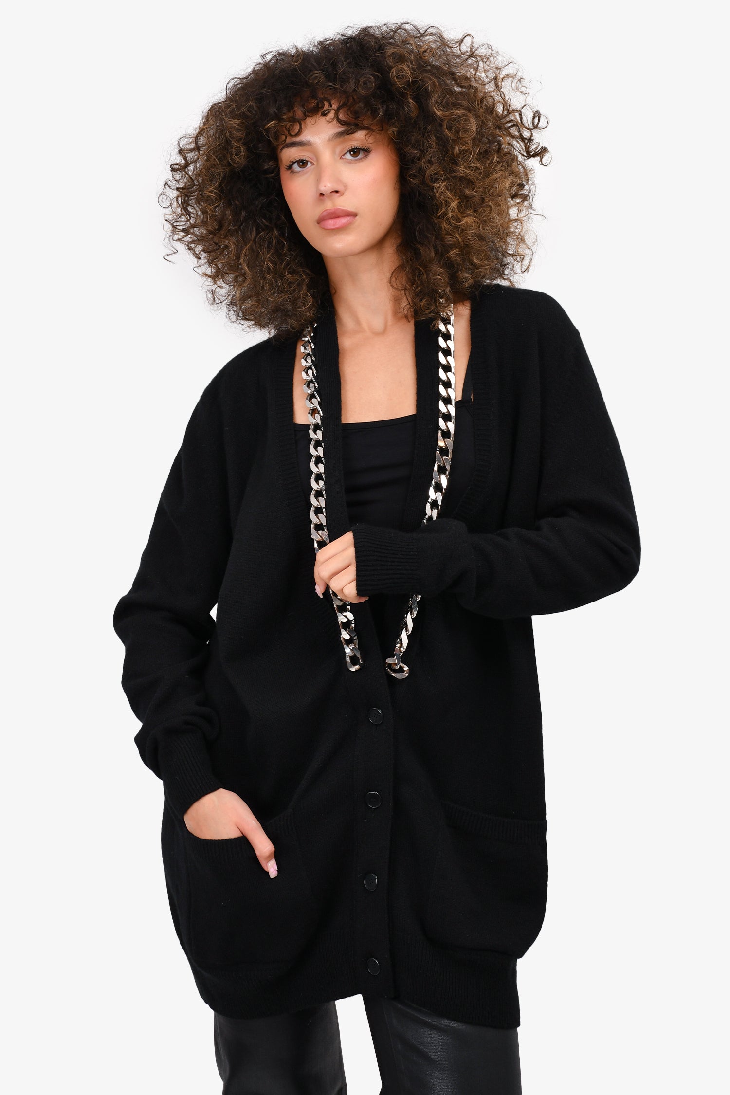 Refresh availabilityGivenchy Black Cashmere Cardigan with Thick Silver Chain. Front button closure. Silver-tone hardware.