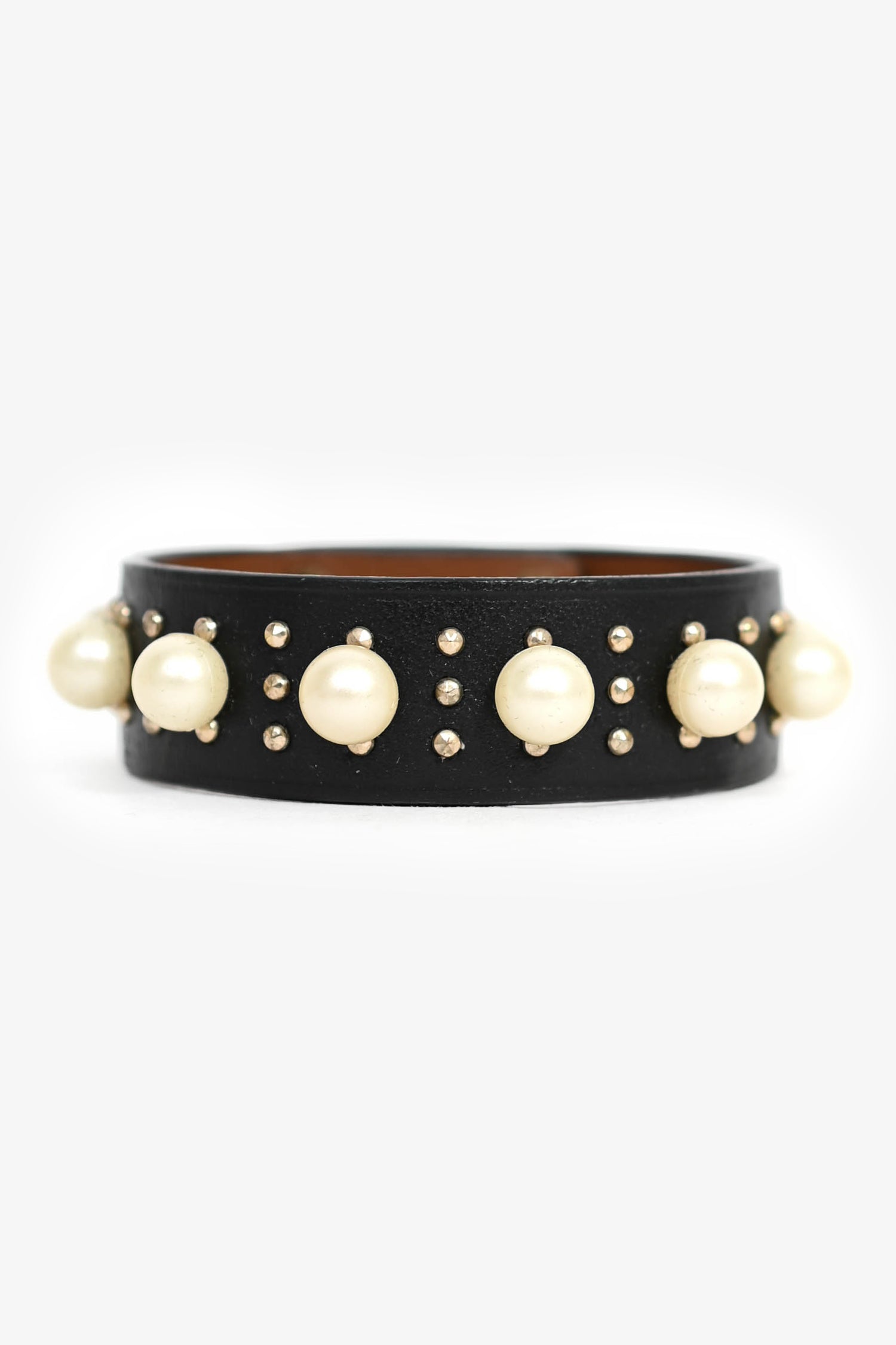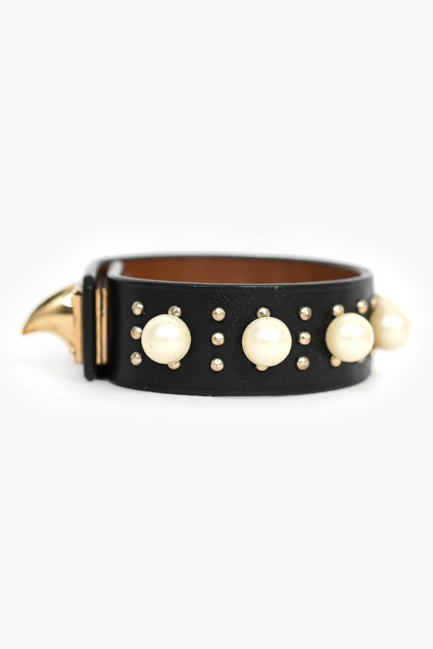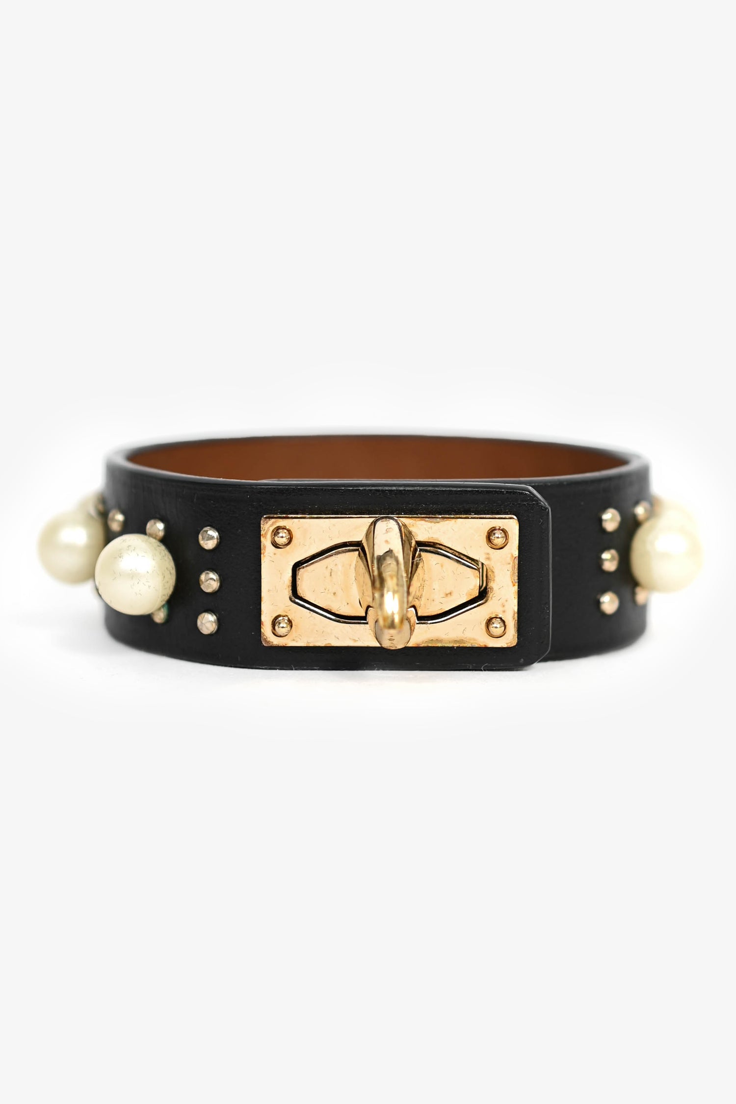 Refresh availabilityGivenchy Black Leather Faux Pearl Shark Bracelet. Front turn-lock closure.