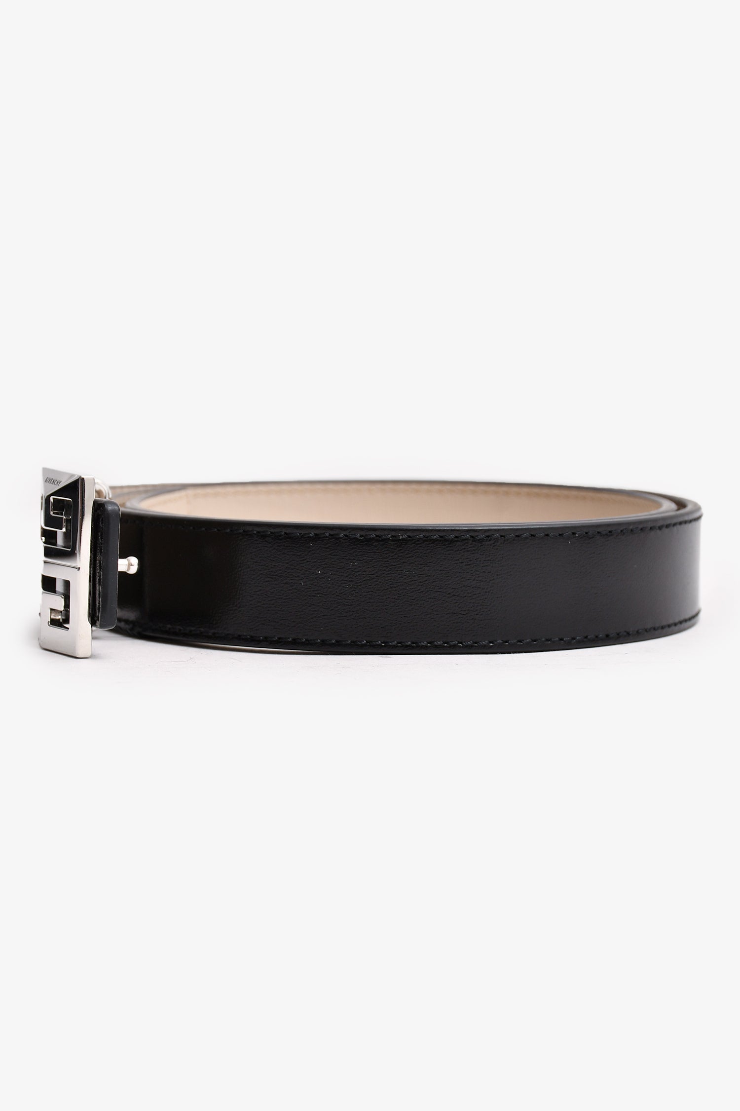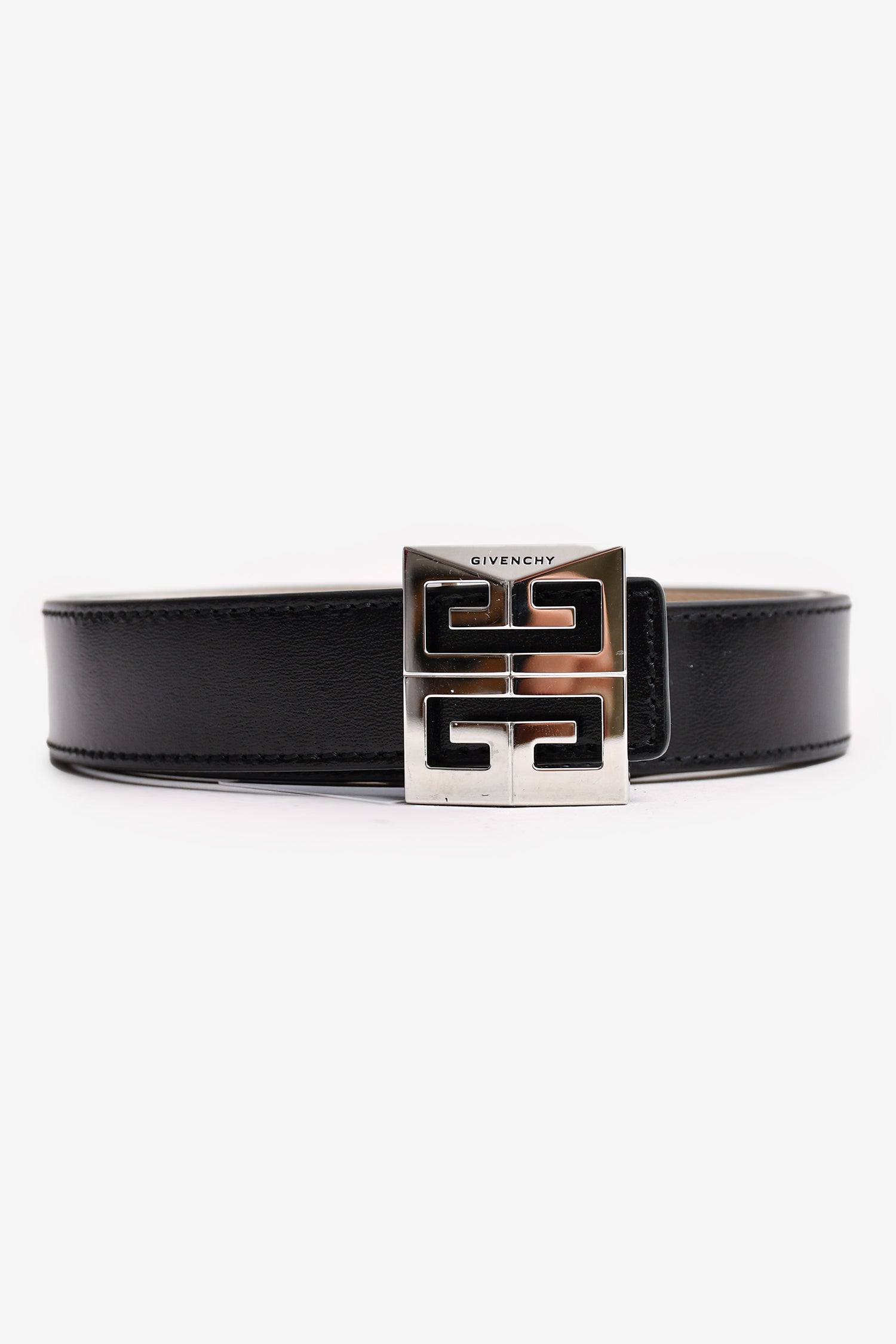 Refresh availabilityGivenchy Black Leather Logo Buckle Belt. Adjustable pull-through buckle closure. Silver-tone hardware. Tonal stitching.
