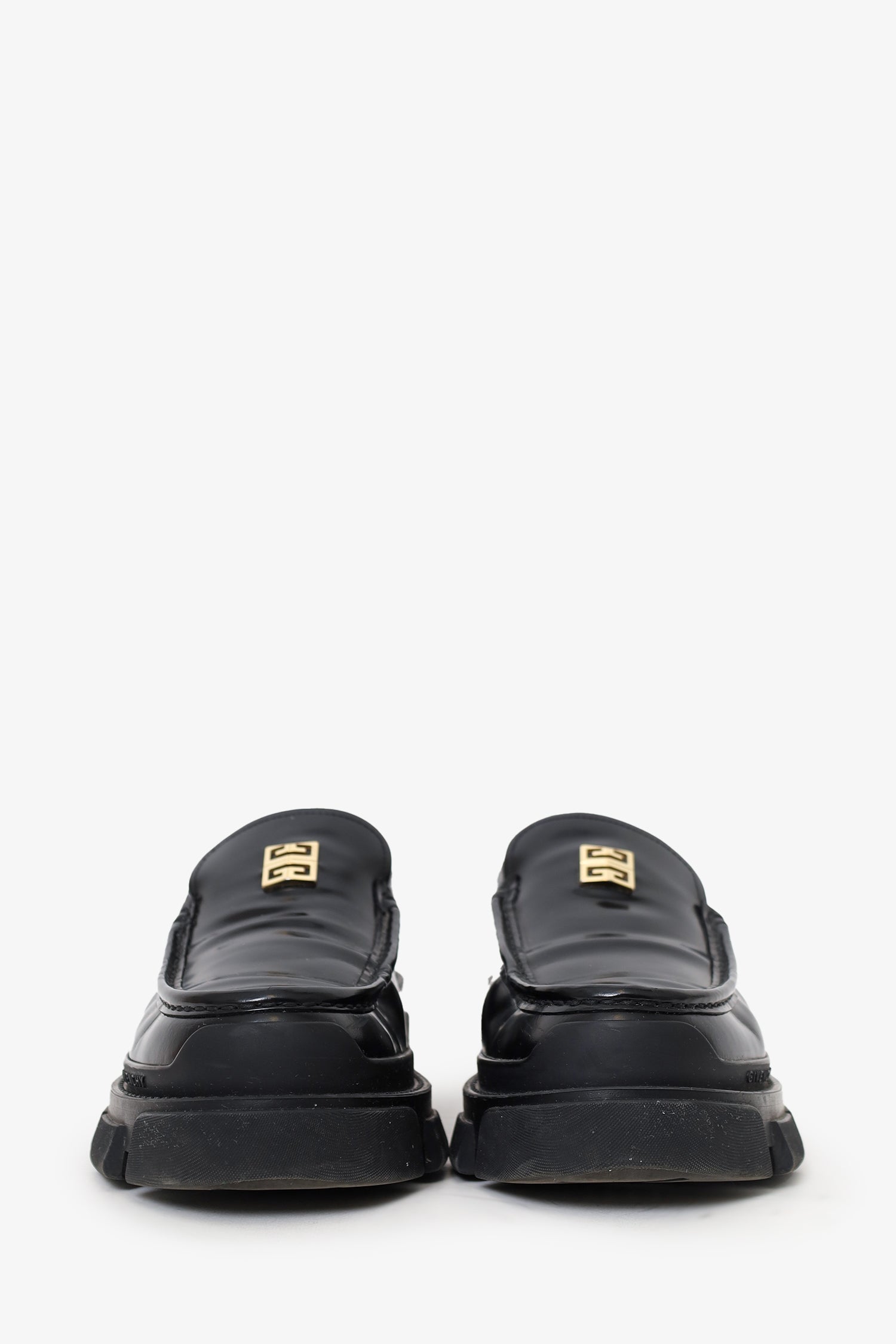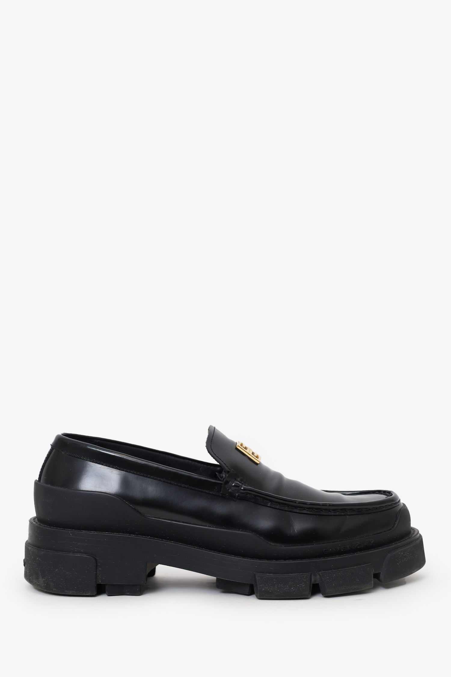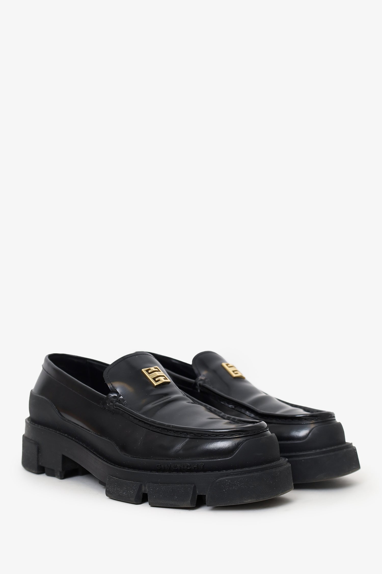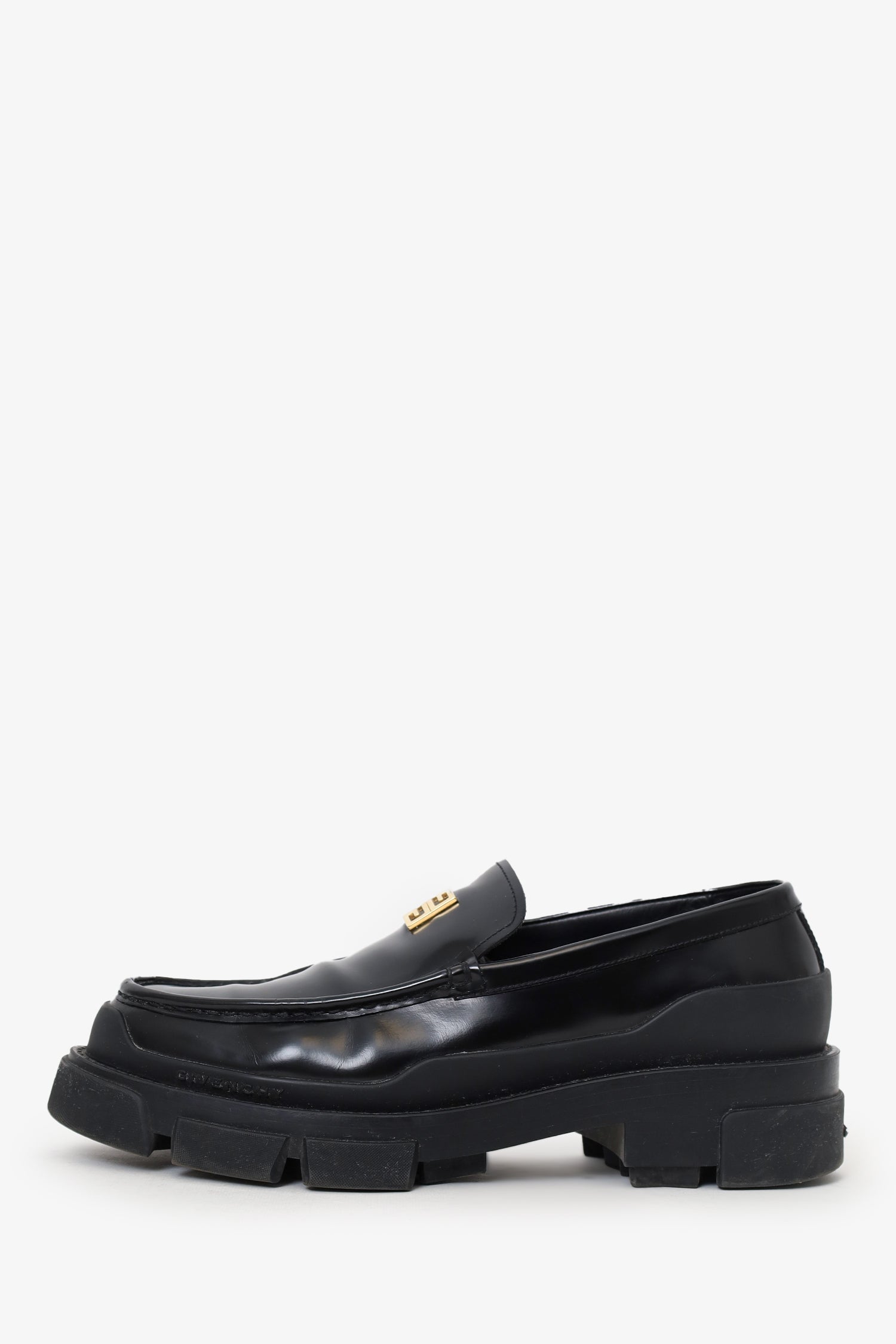 Refresh availabilityGivenchy Black Leather Logo-plaque Terra Loafer. Slip-on. Round toe. Gold-tone hardware. Tonal stitching.