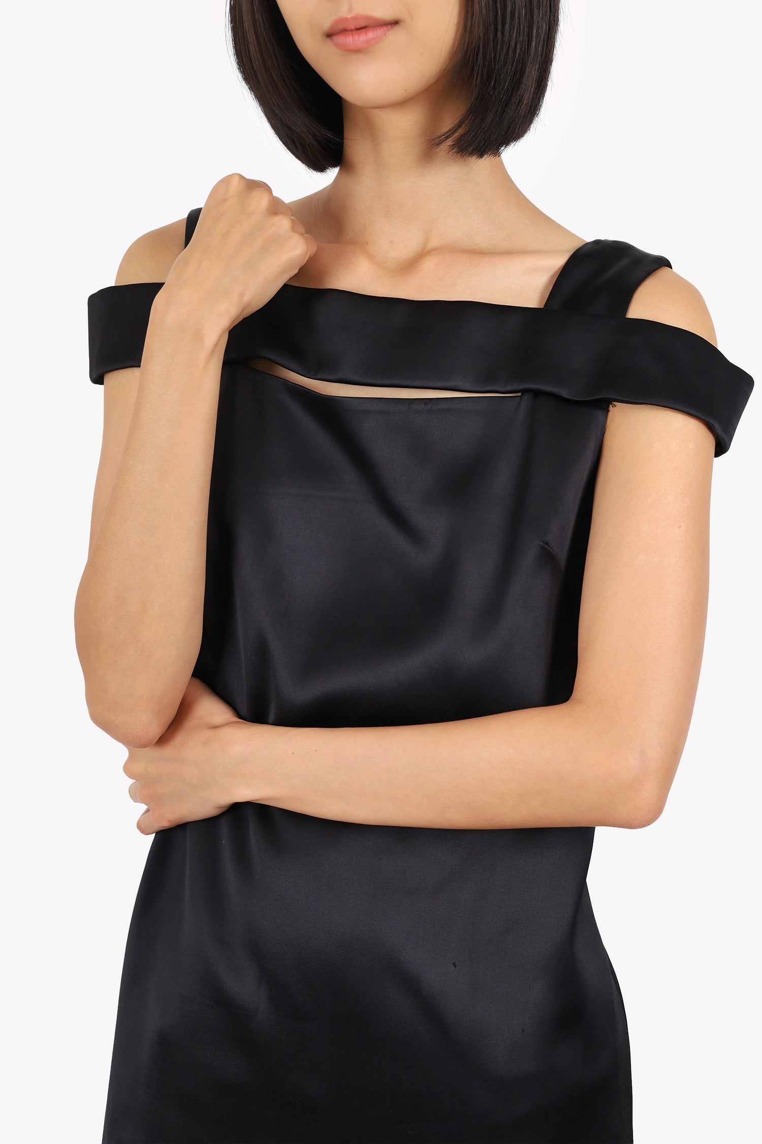 Refresh availabilityGivenchy Black Satin Cut-out Sleeveless Mini Dress. Slip-on. Square neckline. Rear cut-out with zip and hook closure. Lined interior. Tonal stitching.
