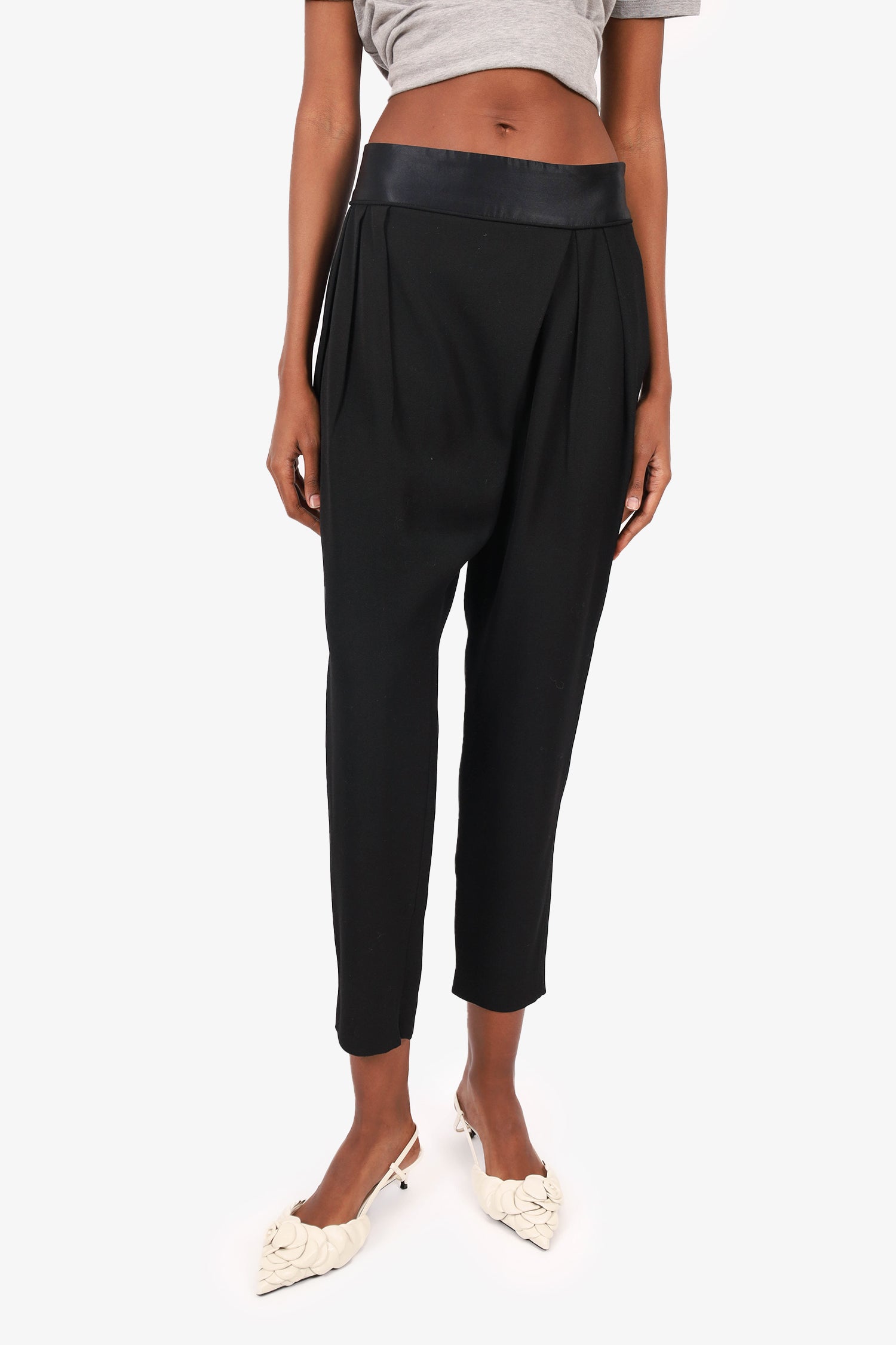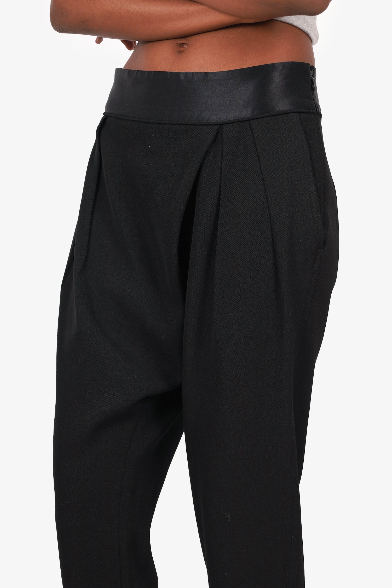 Givenchy Black Wool/Silk Drape Front Trousers Size 42