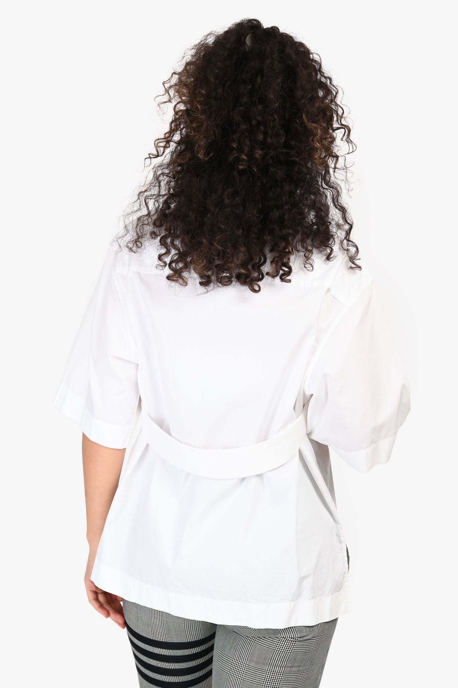 Givenchy White Button Up Short Sleeve Shirt Estimated Size M with Buckle