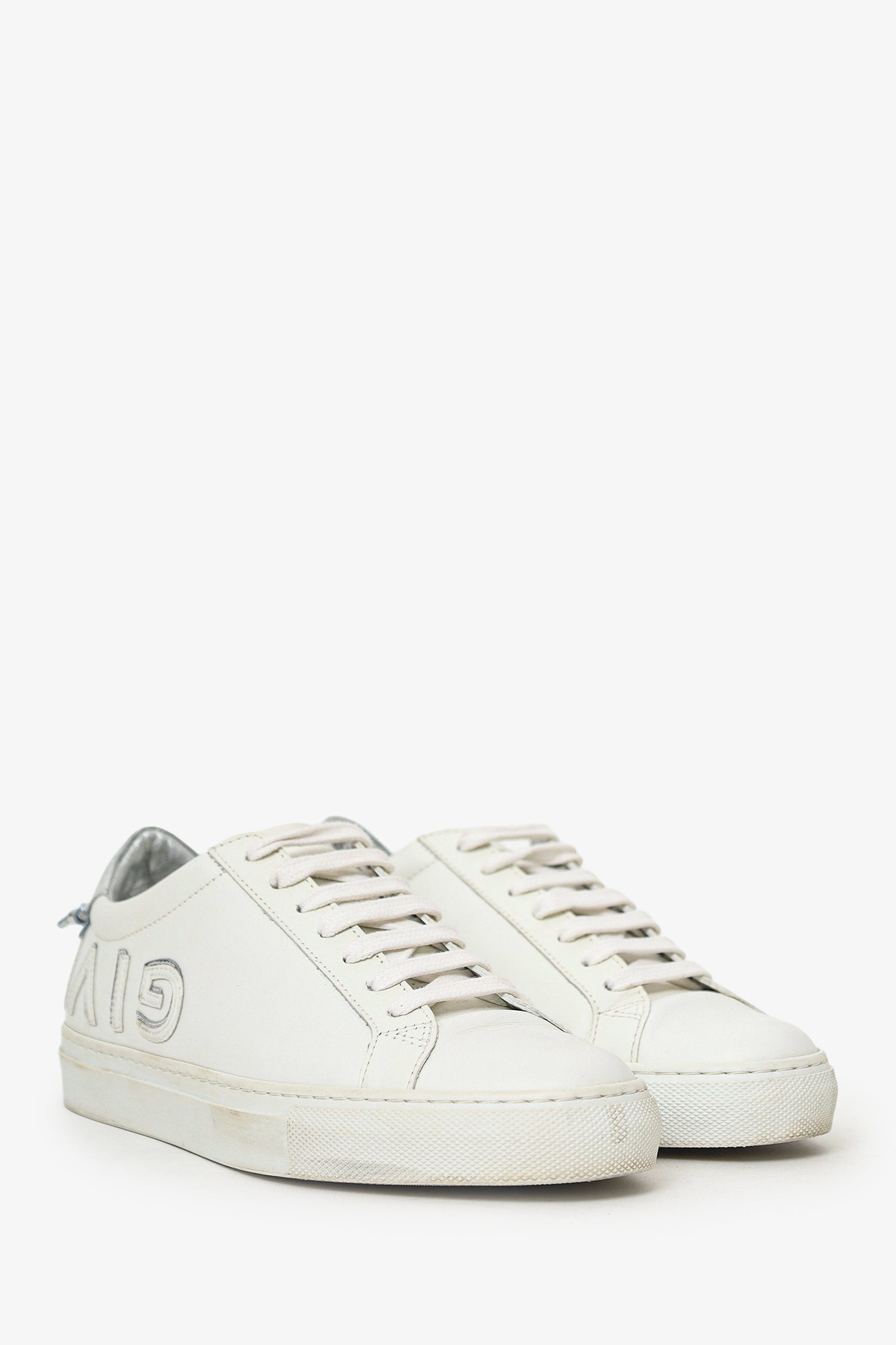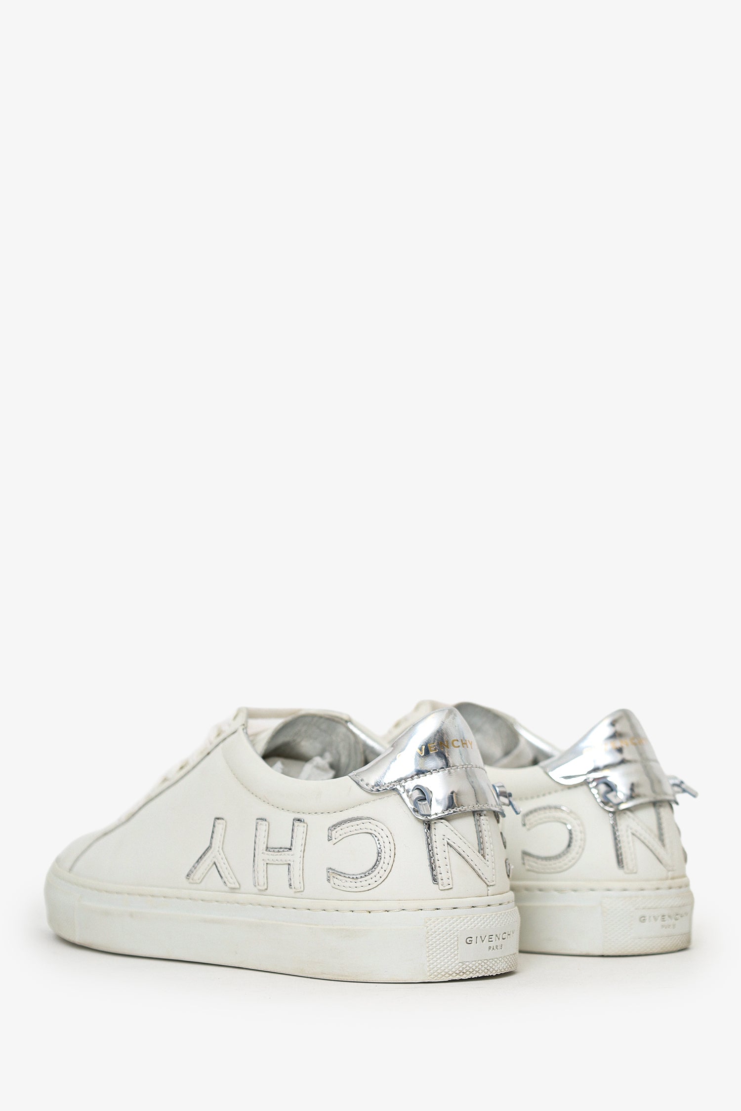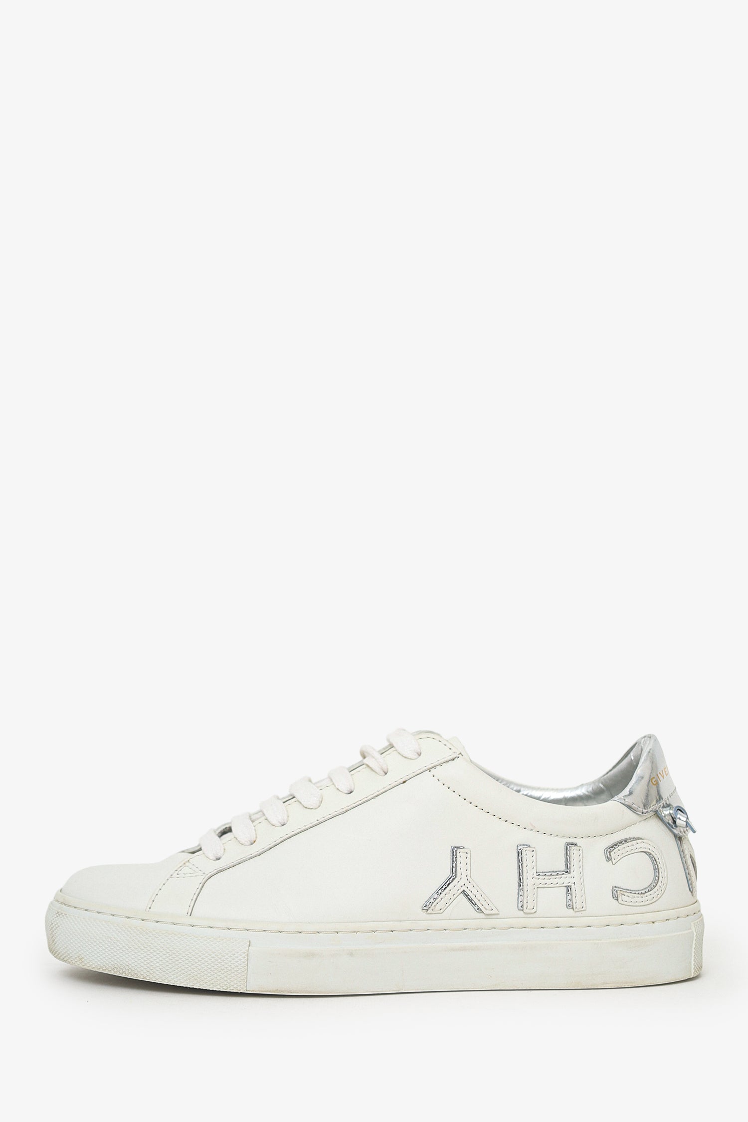 Refresh availabilityGivenchy White/Silver Leather Low Top Sneakers. Slip-on. Round toe. Front lace-up closure. Tonal stitching.