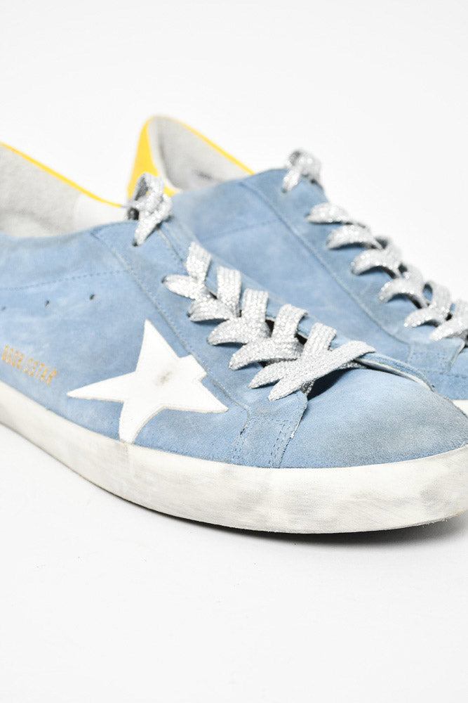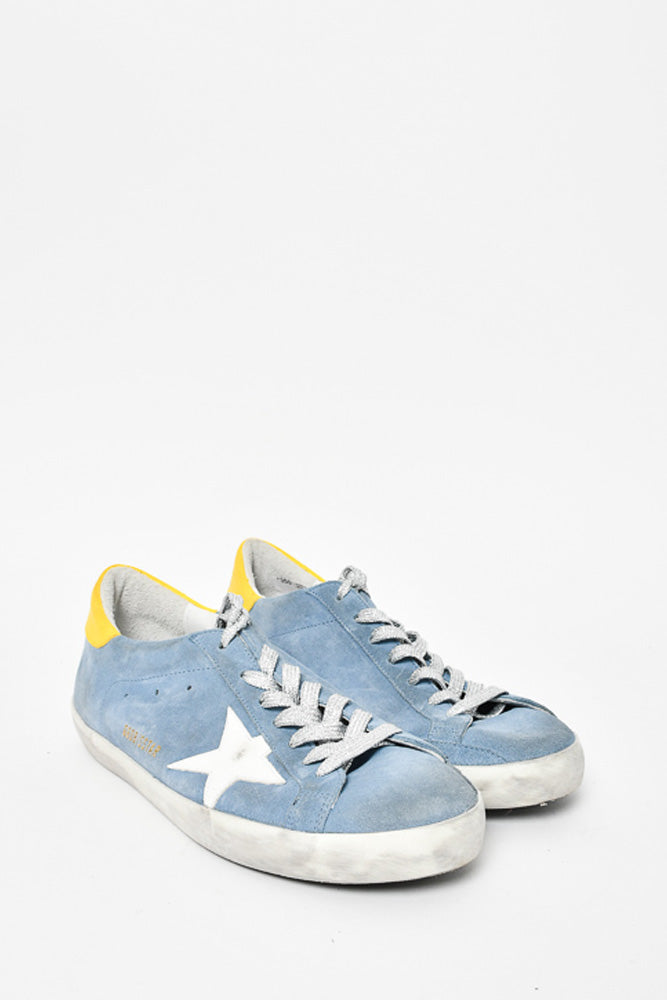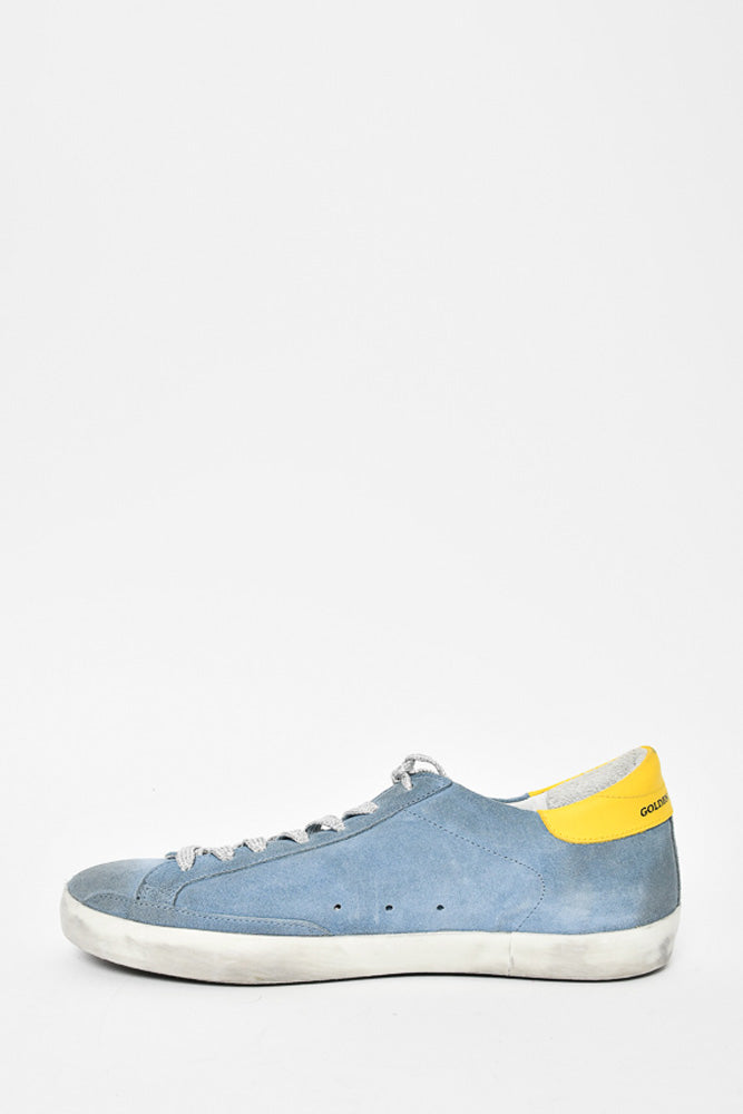 Refresh availabilityGolden Goose Blue/Yellow Suede Low Top Sneakers. Round toe. Lace-up closure. Tonal stitching.