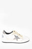 Golden Goose White Leather/Metallic 'Ball Star' Sneakers. Round toe. Lace-up closure. Tonal stitching.