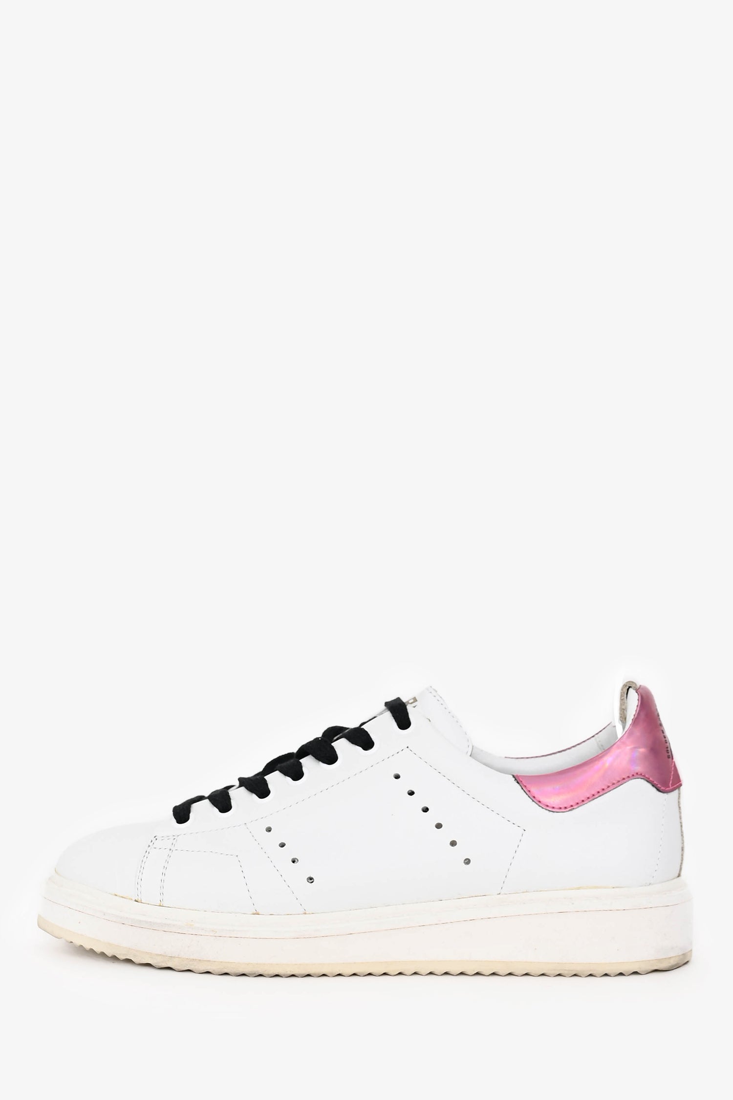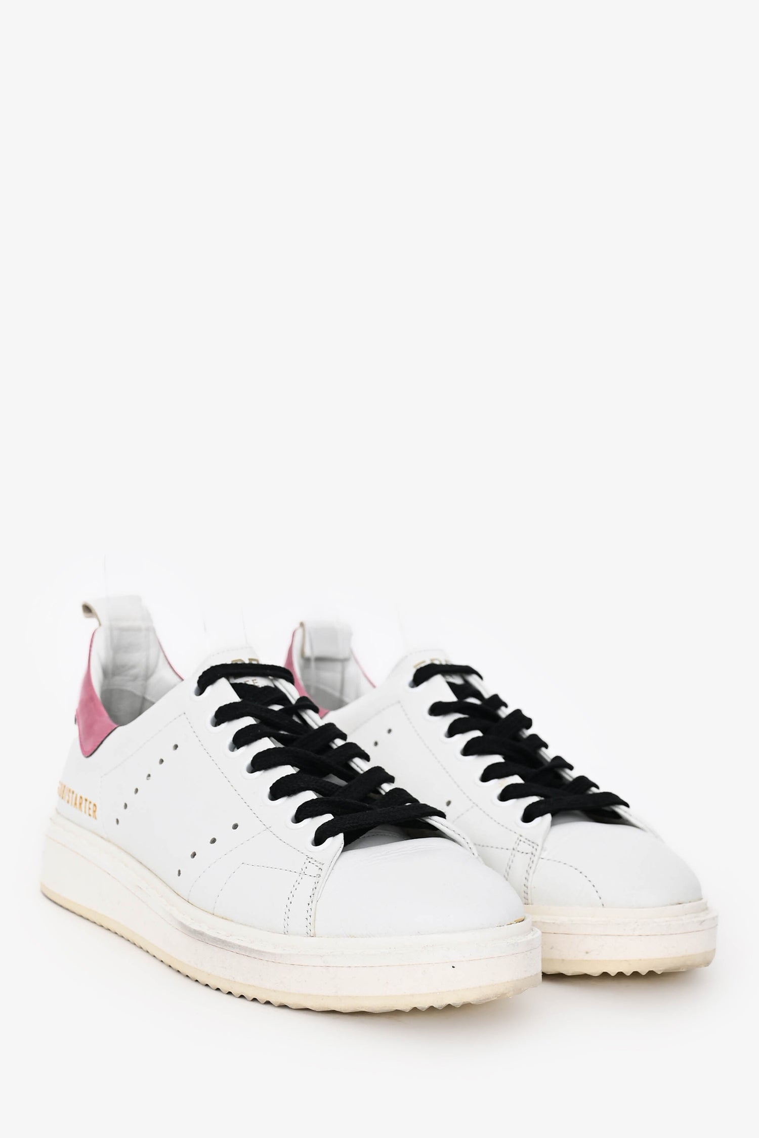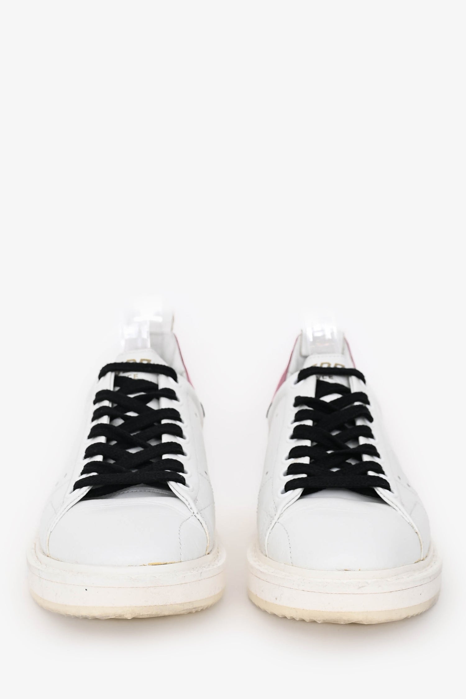 Refresh availabilityGolden Goose White/Pink VCE Sneakers. Slip-on. Round toe. Front lace-up closure. Metallic pink heel tab. Terry lining. Leather insole. Rubber sole. Tonal stitching.
