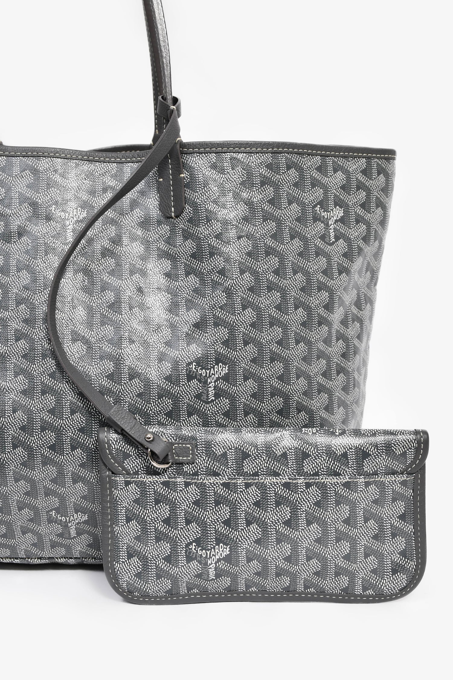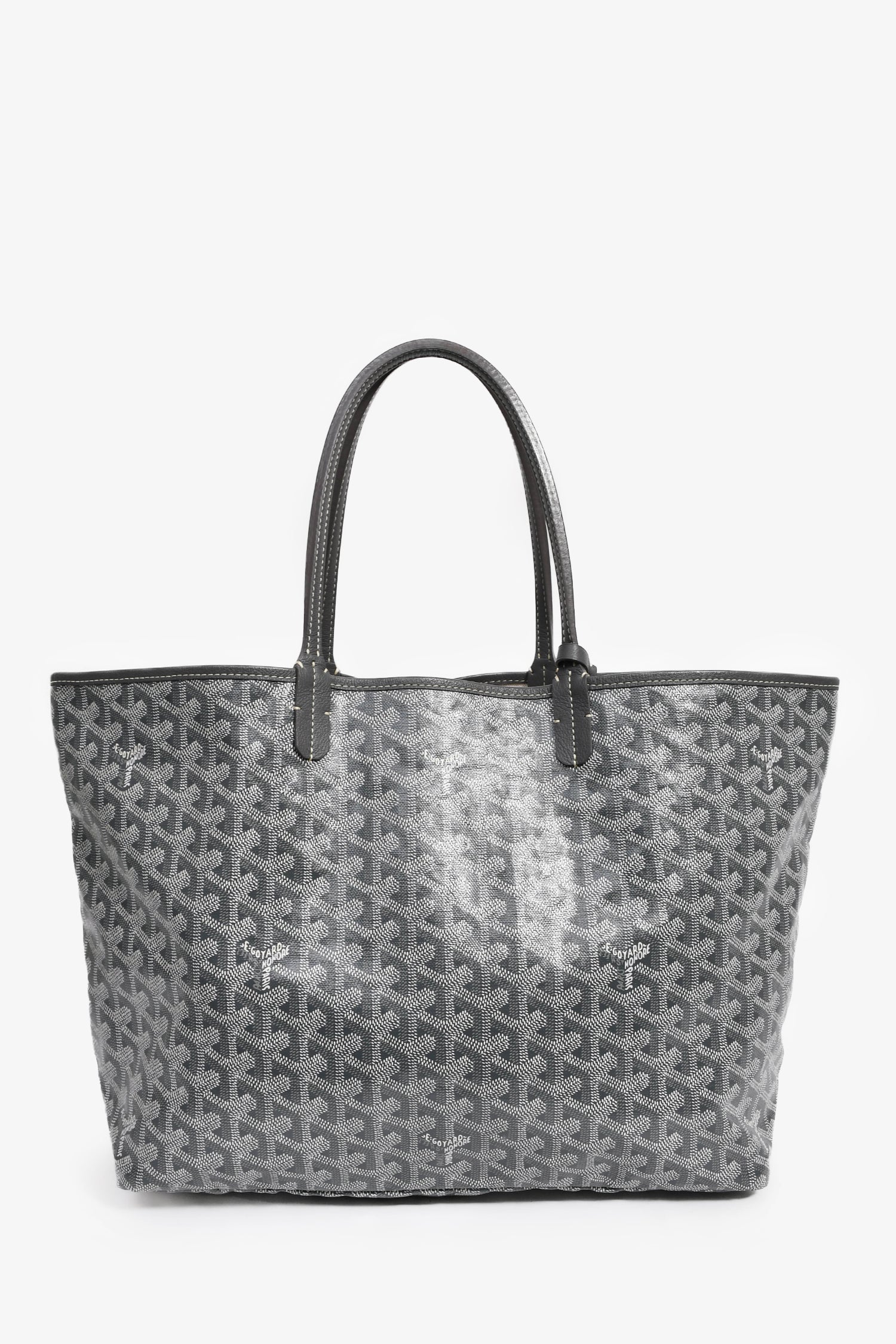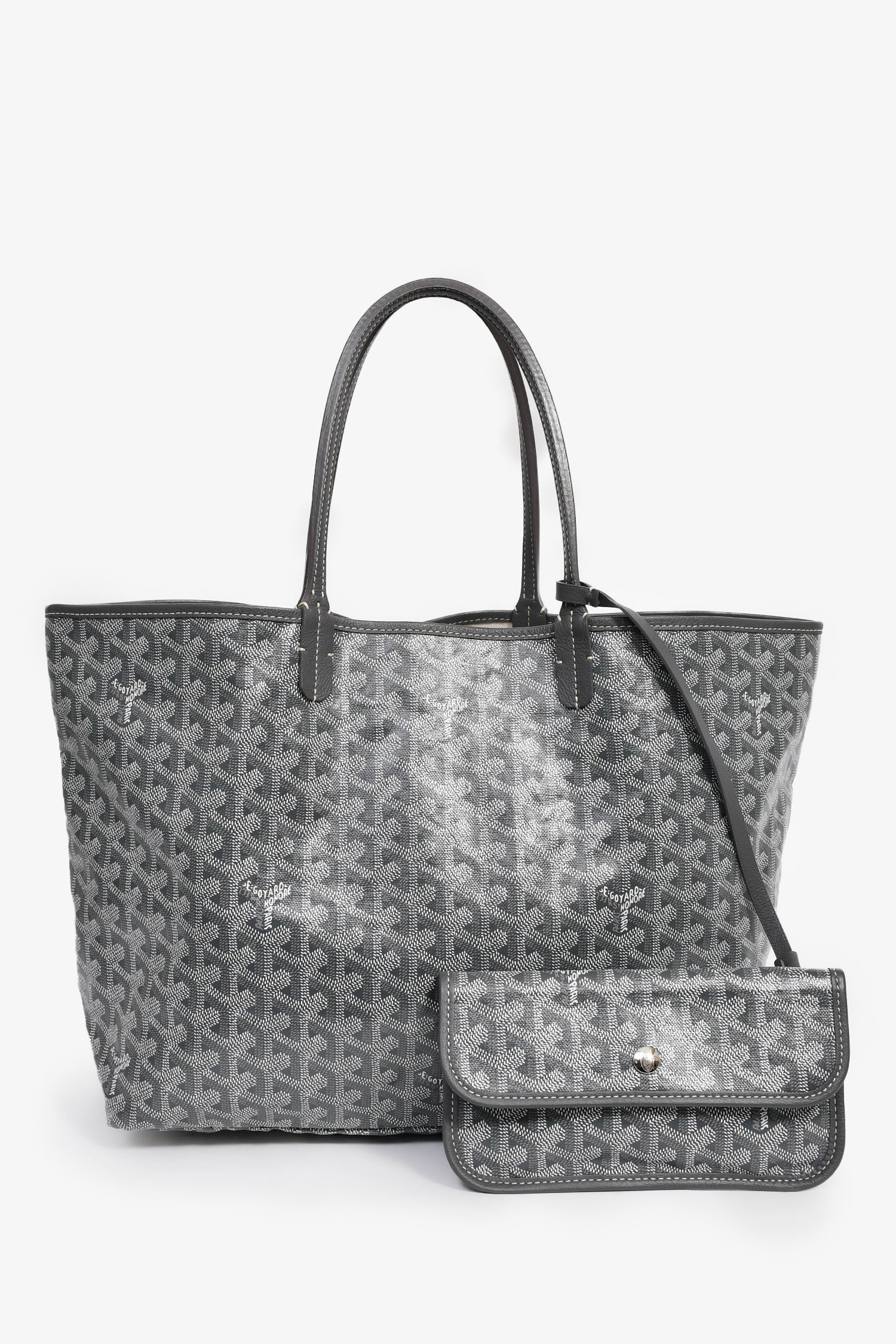 Refresh availabilityGoyard 2014 Grey Goyardine St. Louis PM Tote with Pouch. Dual top handles. Open interior compartment. Built-in pouch with snap button closure. Textile-lined interior. Contrast stitching.