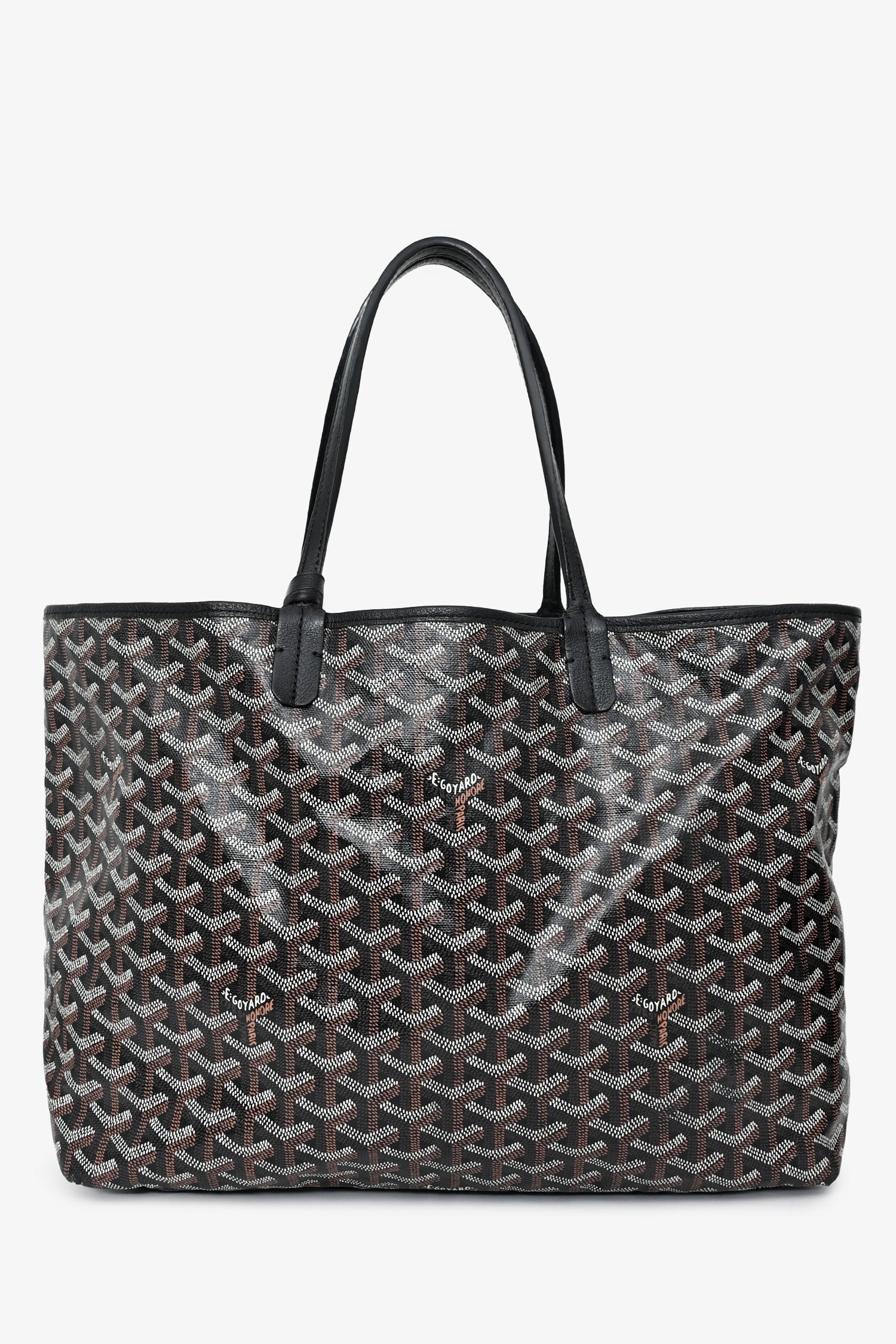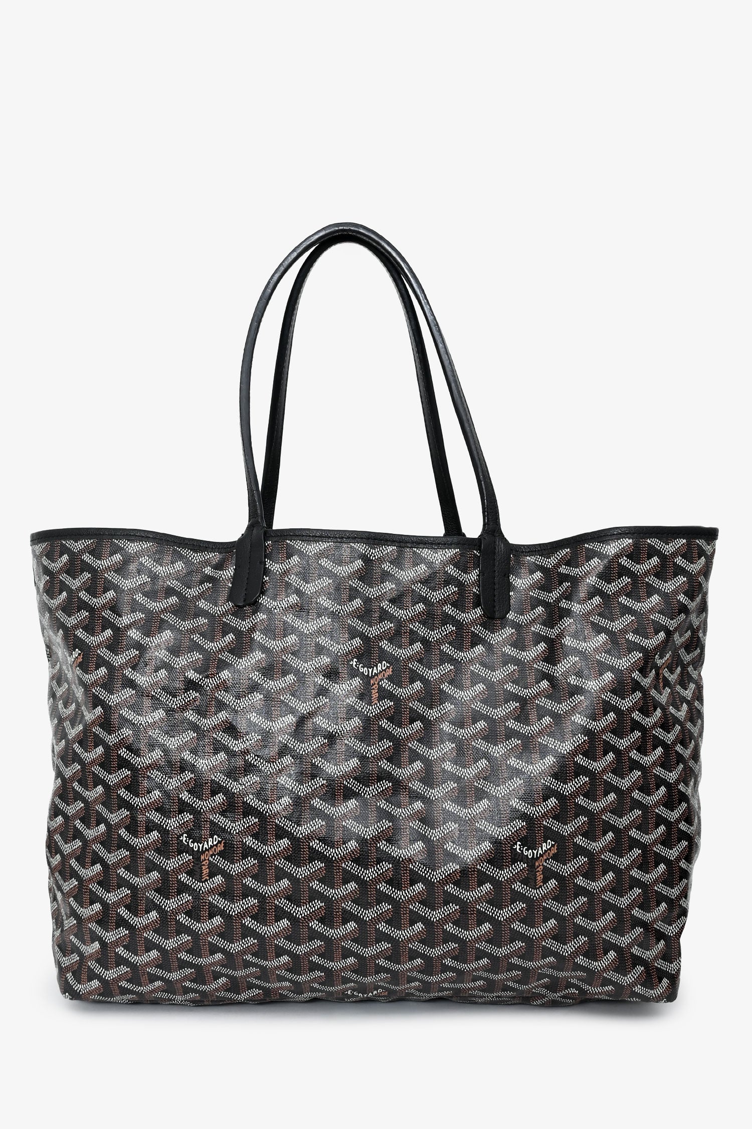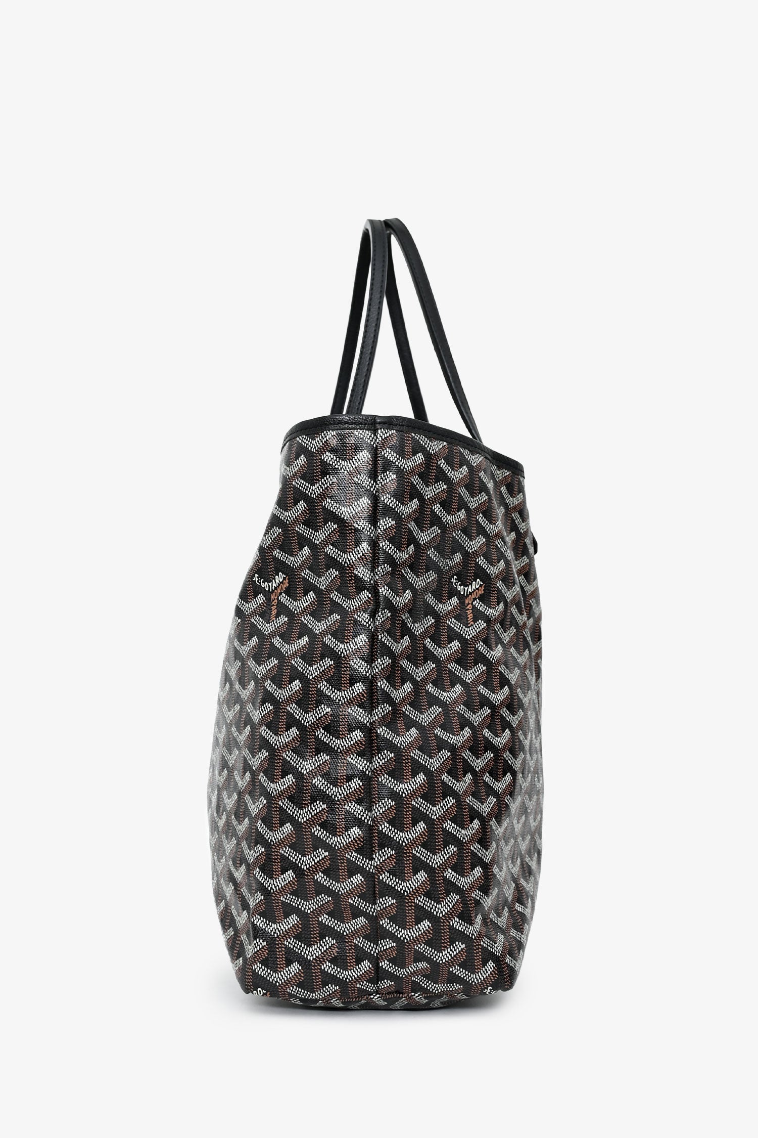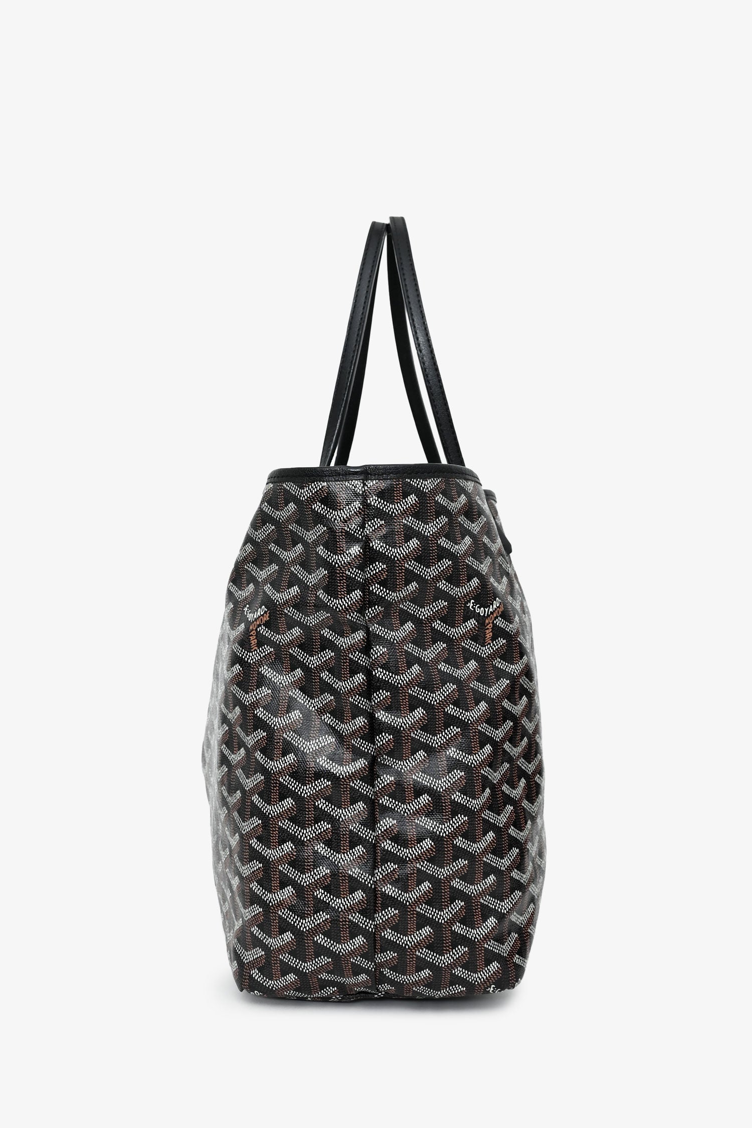 Refresh availabilityGoyard 2015 Black Goyardine St. Louis PM Tote with Pouch. Dual handles. Open top. Lined interior. Open interior. Detachable pouch with fold-over flap and snap-button closure. Silver-tone hardware. Tonal stitching.