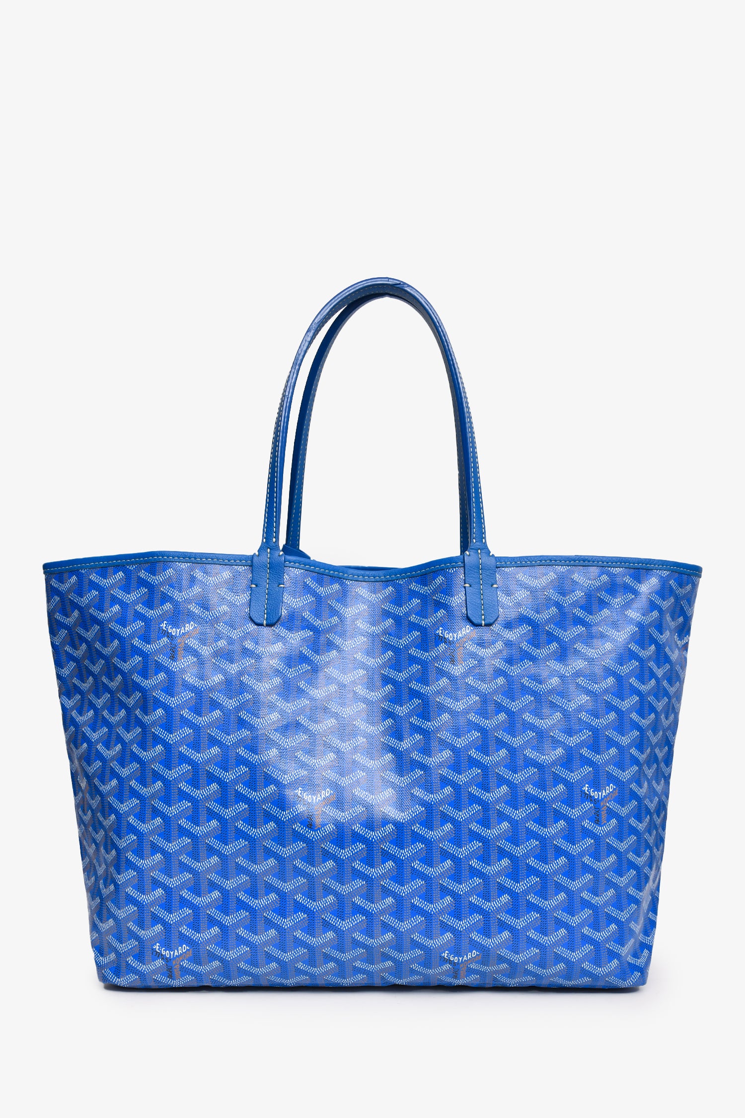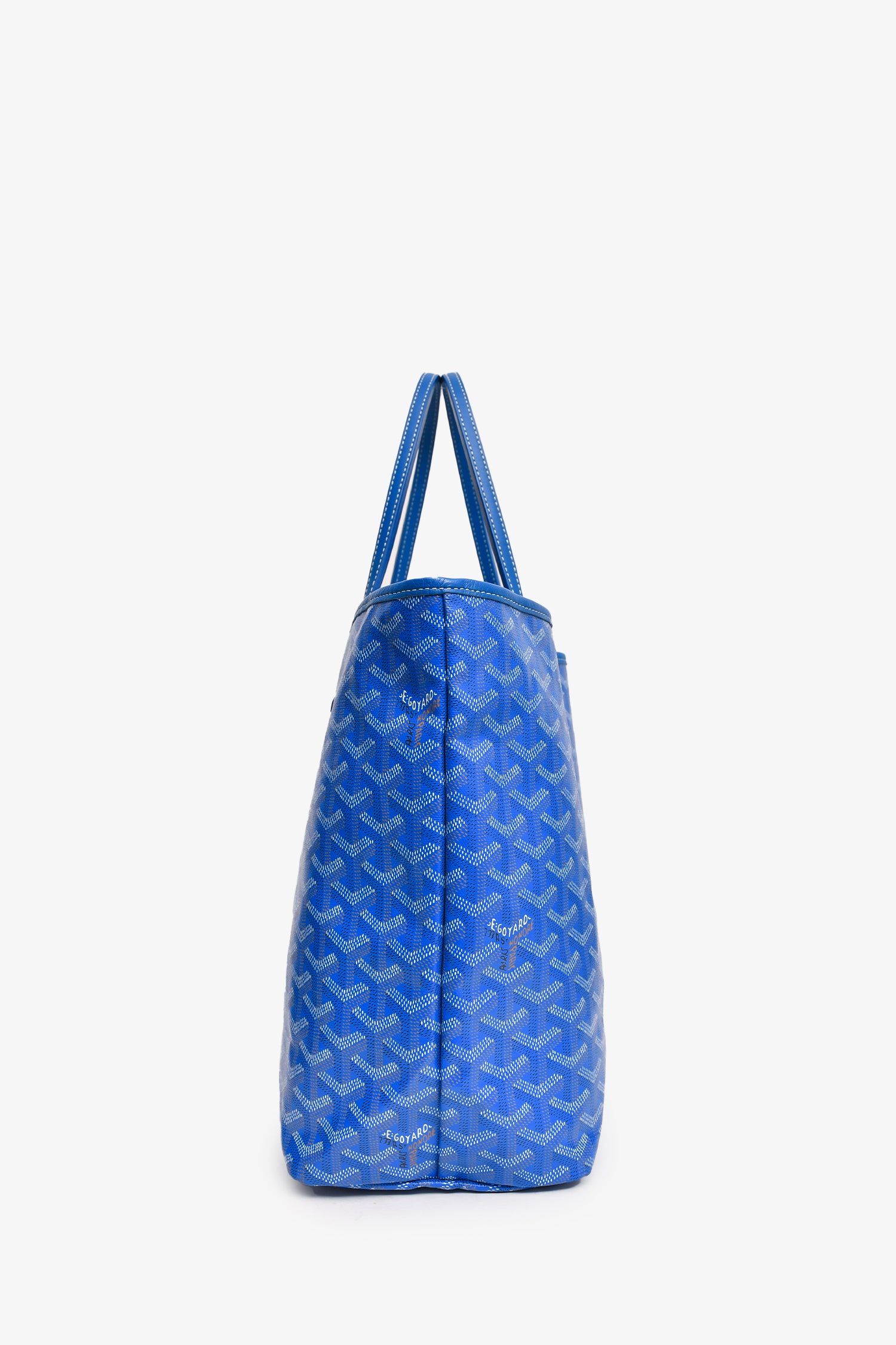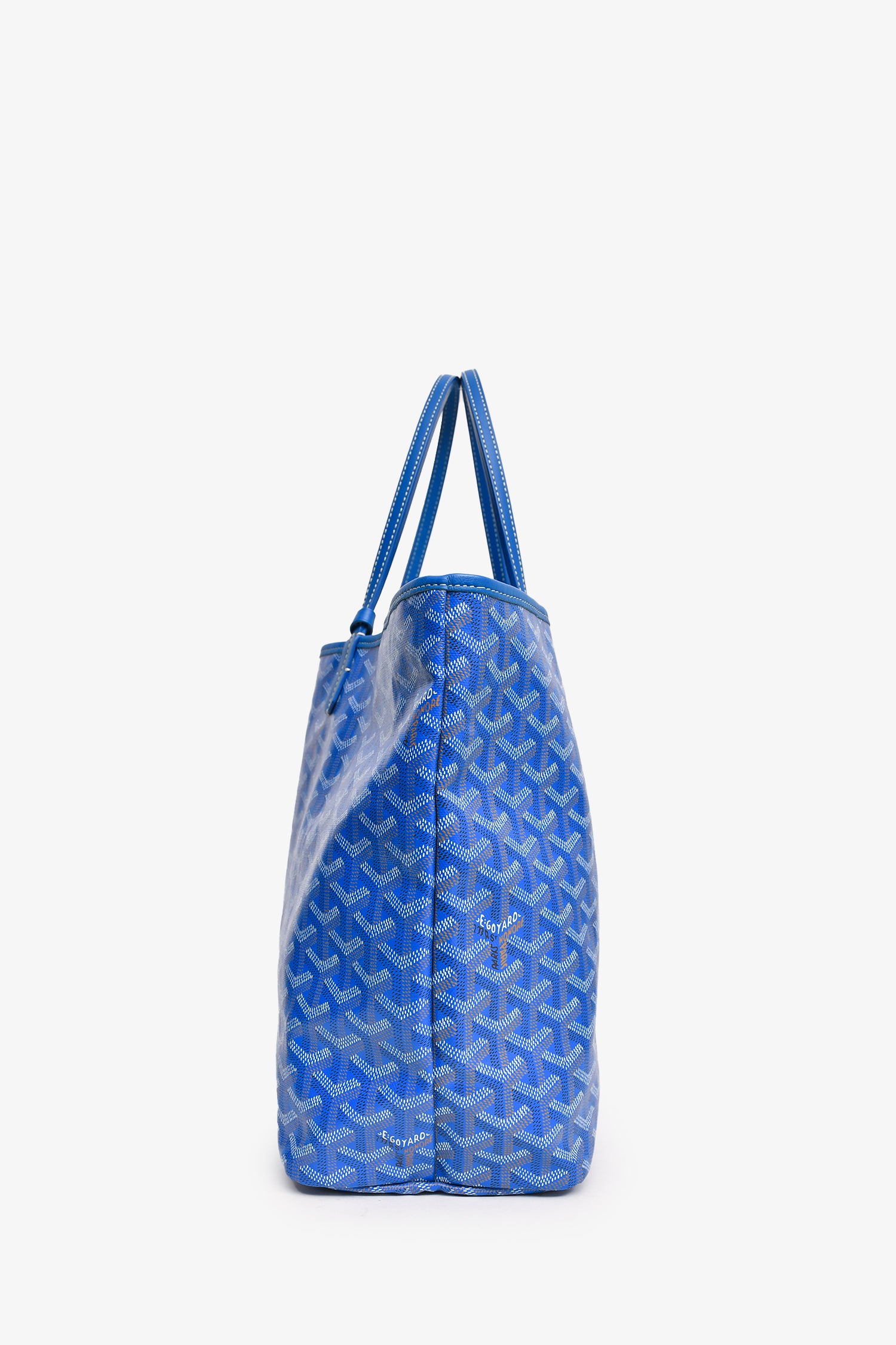 Refresh availabilityGoyard 2017 Blue Canvas St Louis PM Tote. Coated canvas outer. Dual flat top handles. Leather trimming. Attached pouch with a snap closure. Contrast stitching.