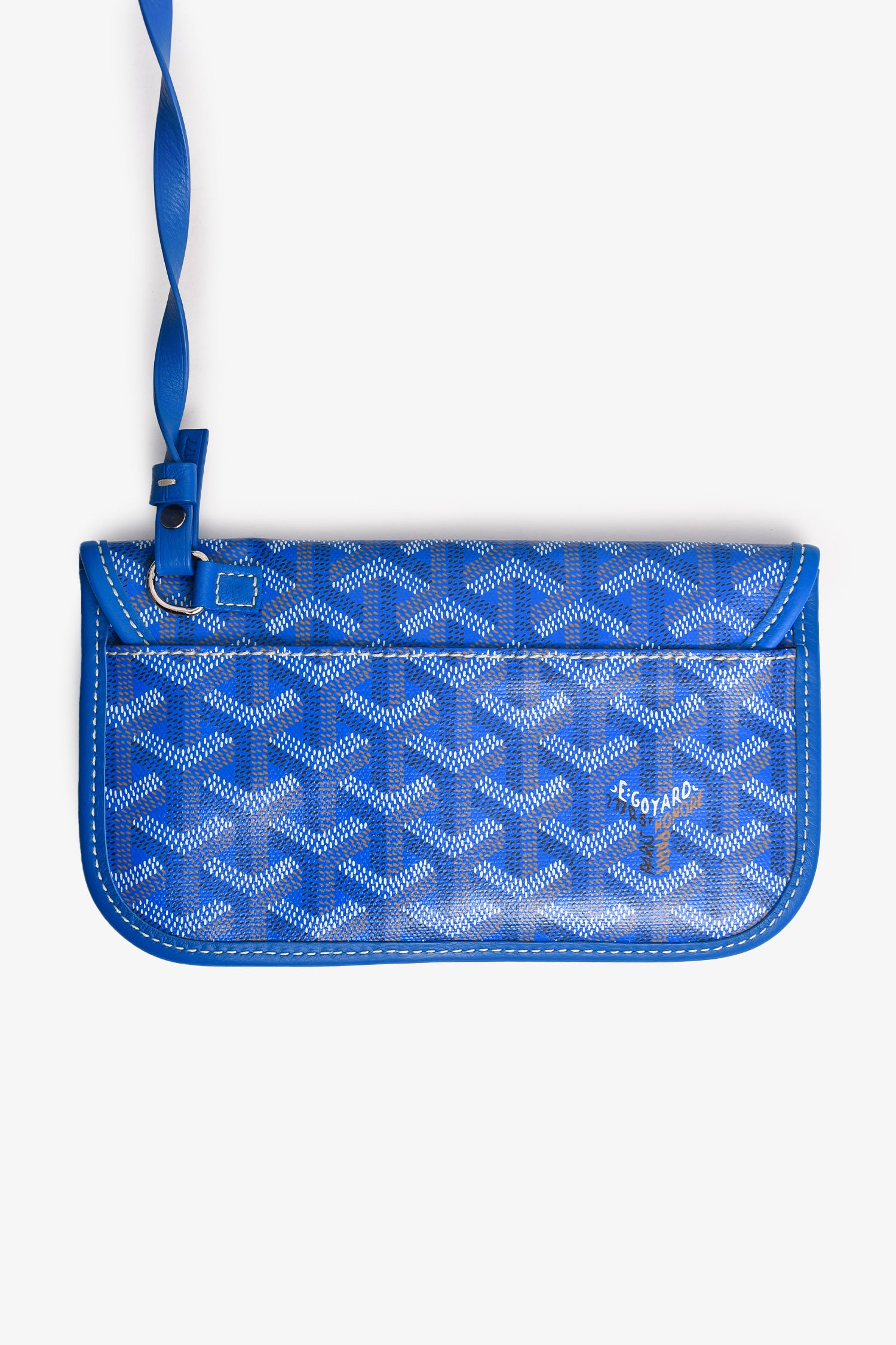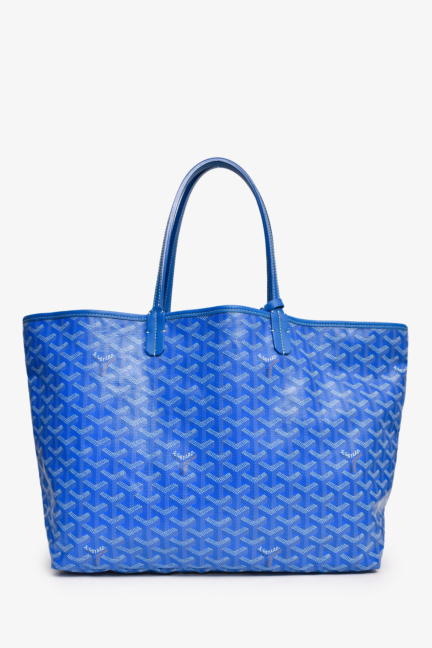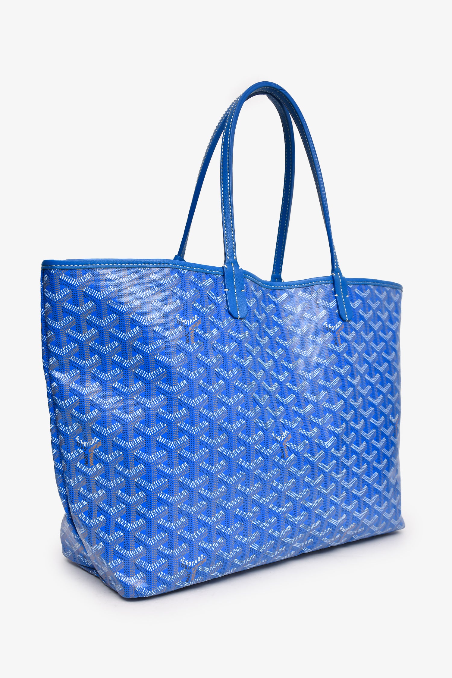 Refresh availabilityGoyard 2017 Blue Canvas St Louis PM Tote. Coated canvas outer. Dual flat top handles. Leather trimming. Attached pouch with a snap closure. Contrast stitching.