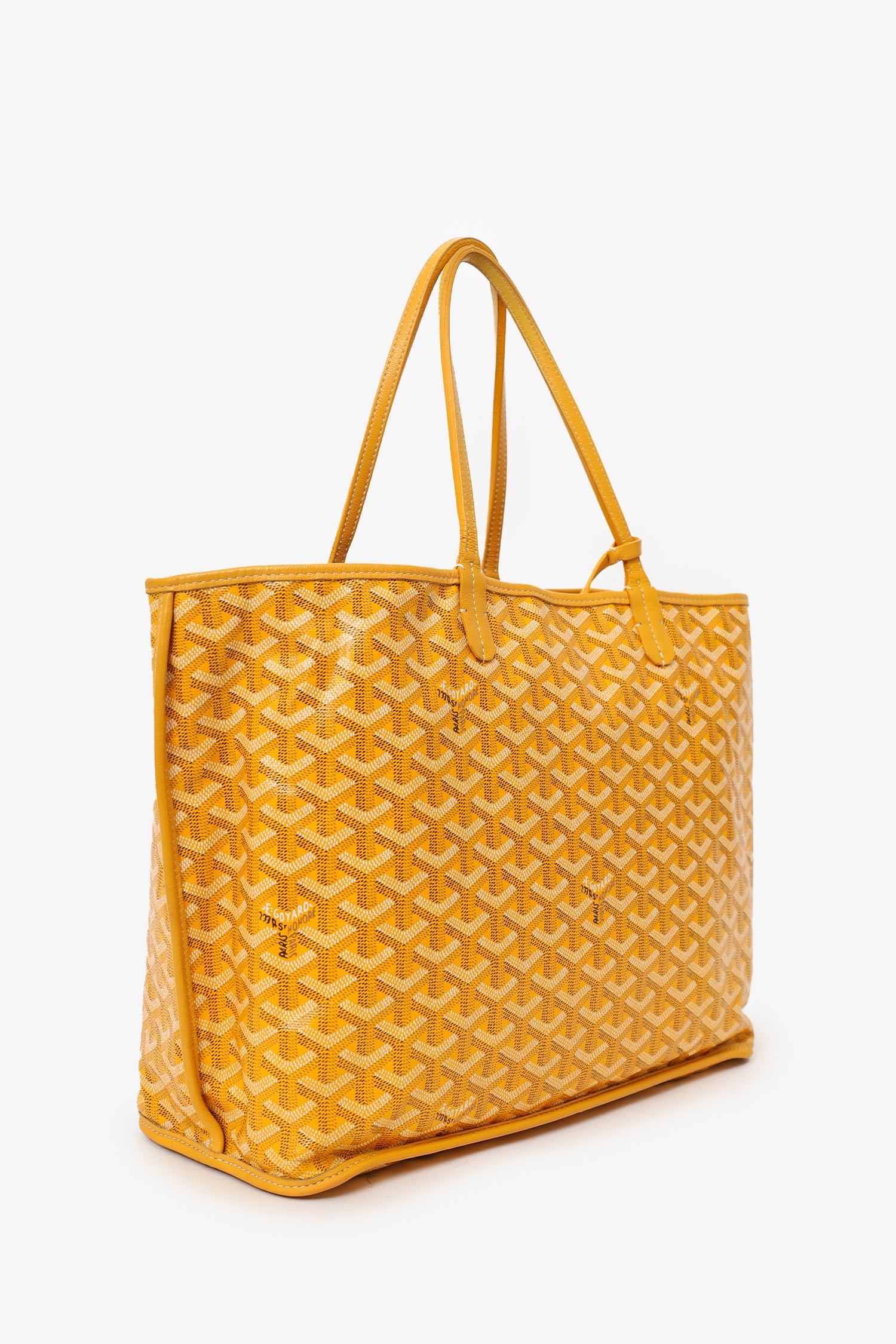 Refresh availabilityGoyard 2019 Yellow Goyardine Coated Canvas Reversible Anjou GM Tote With Pouch. Open top. Open lined interior. Removable pouch with snap-button closure. Contrast-stitching.