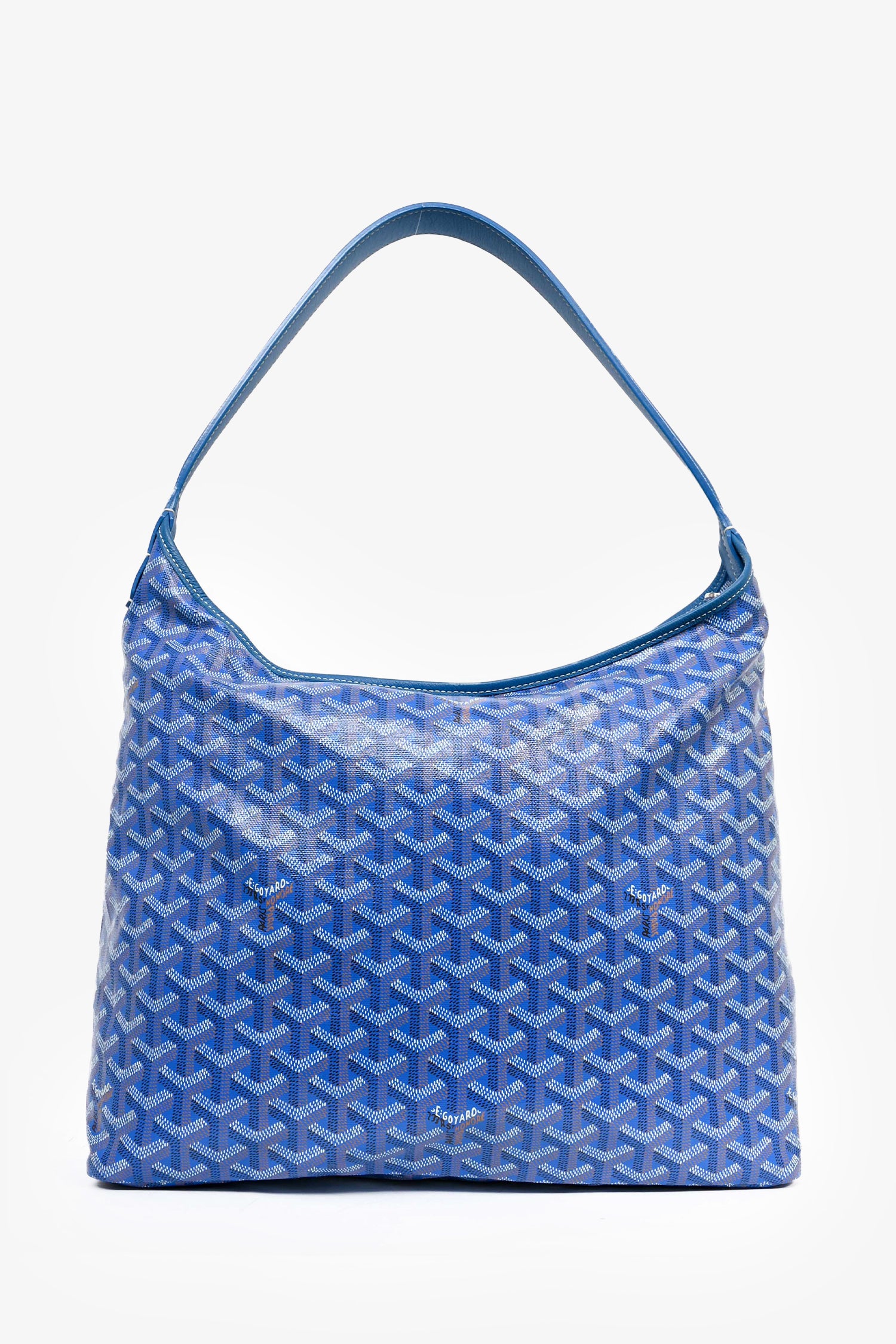 Refresh availabilityGoyard 2023 Blue Goyardine Boheme Hobo. Coated goyardine canvas. Leather trimming with contrast topstitching. Silver-tone hardware. Leather shoulder strap. Comes with a pouch.