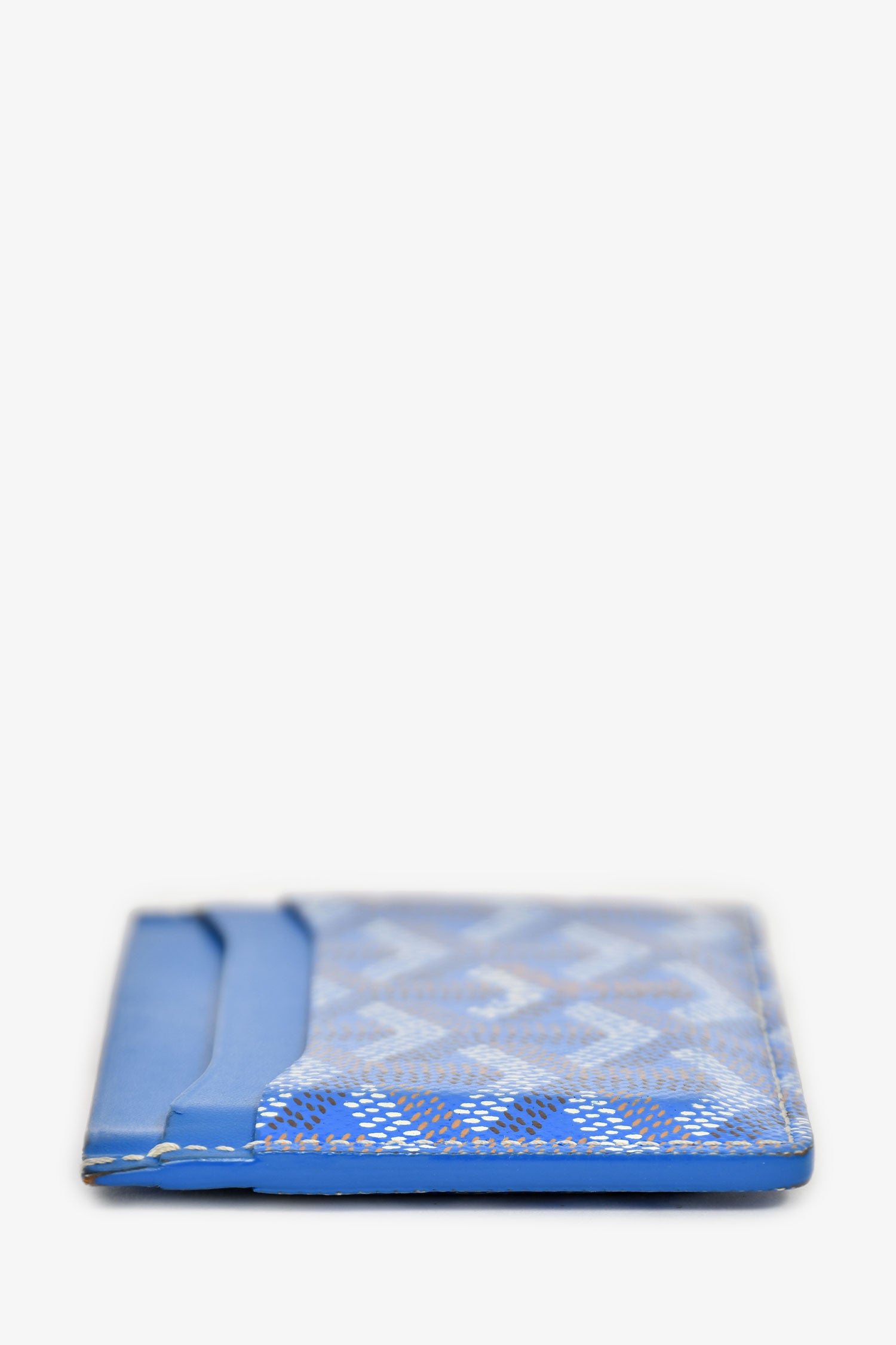 Refresh availabilityGoyard Blue Goyardine Leather 'Saint-Sulpice' Card Holder. Leather-lined interior. 5 card slots. Contrast and tonal stitching.