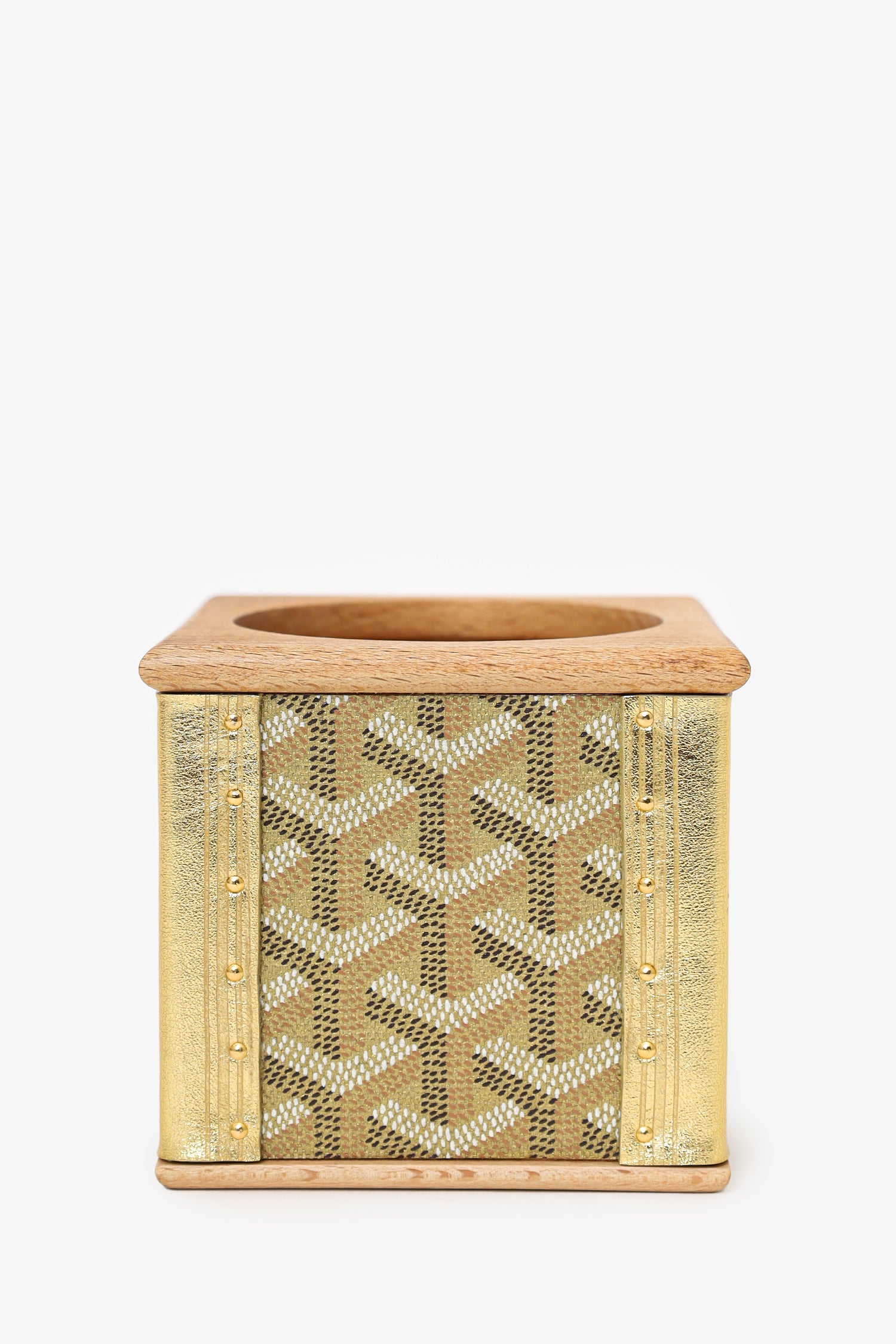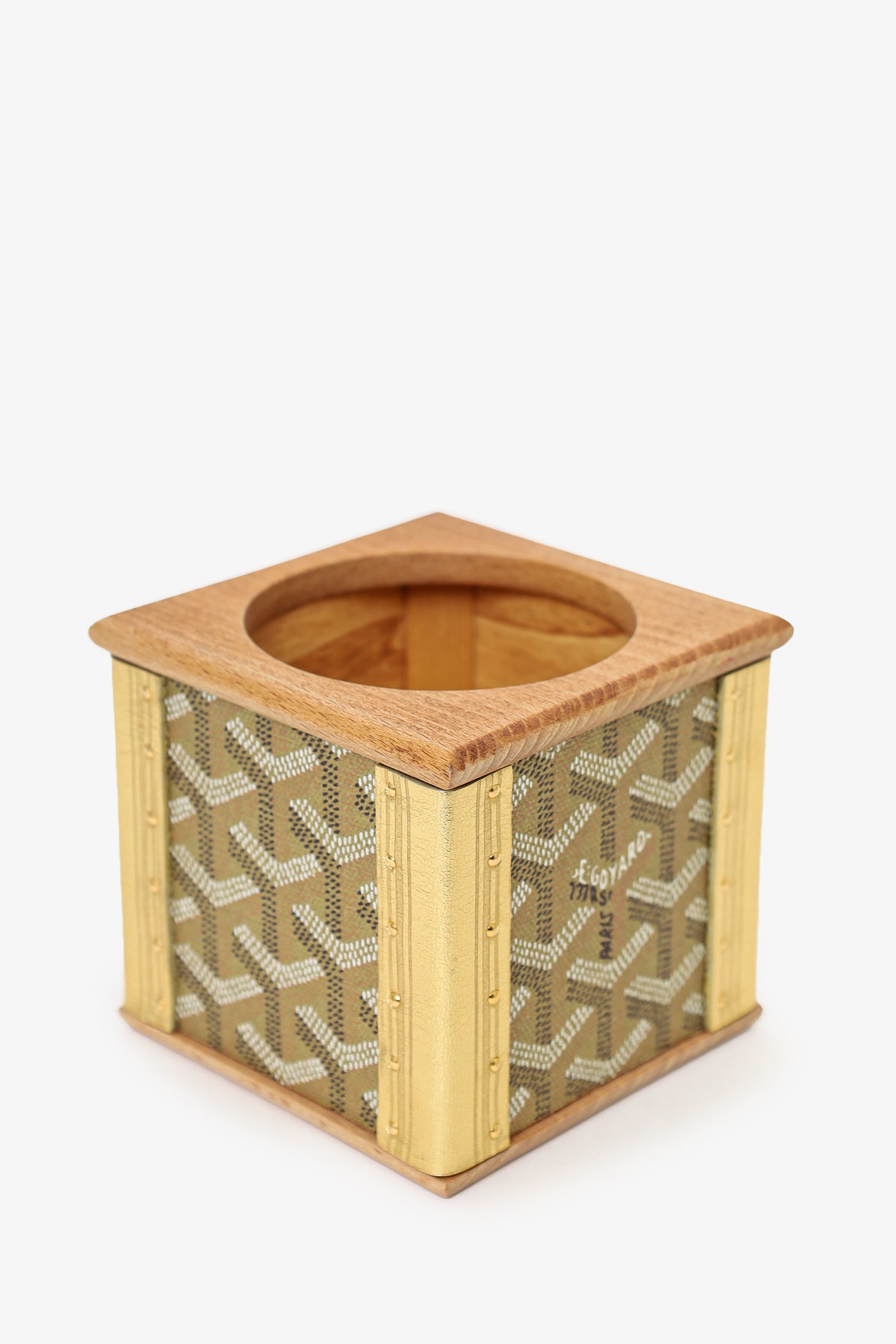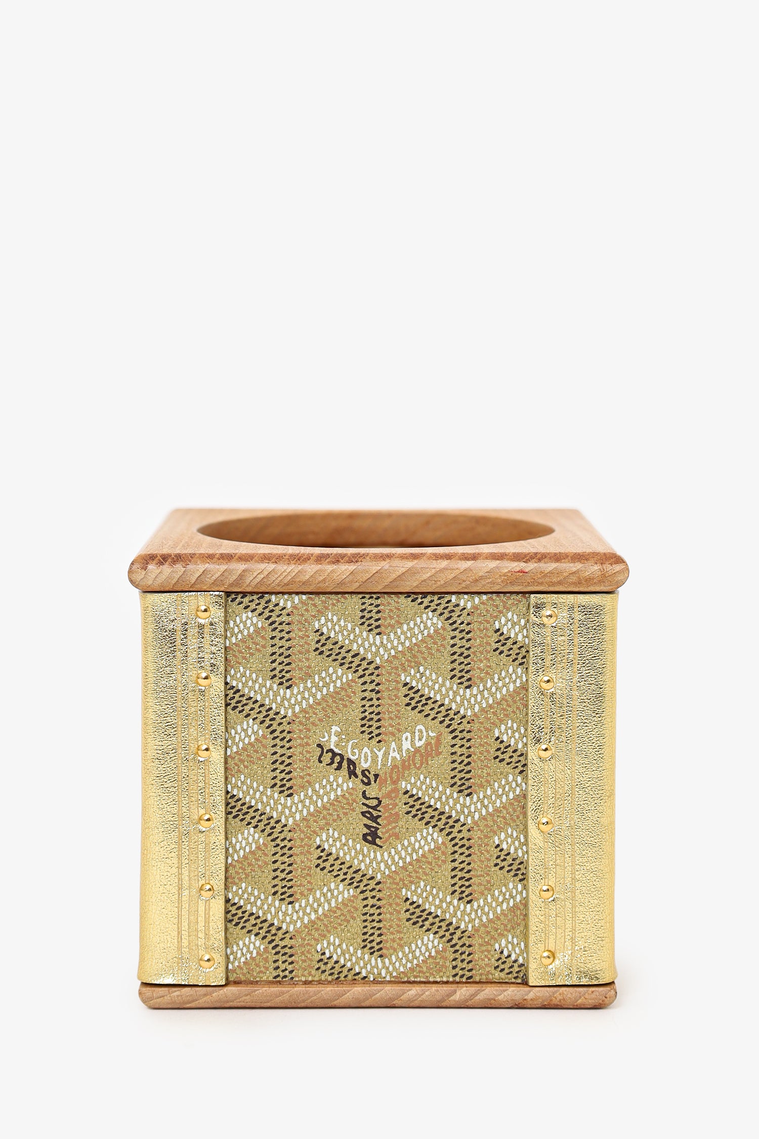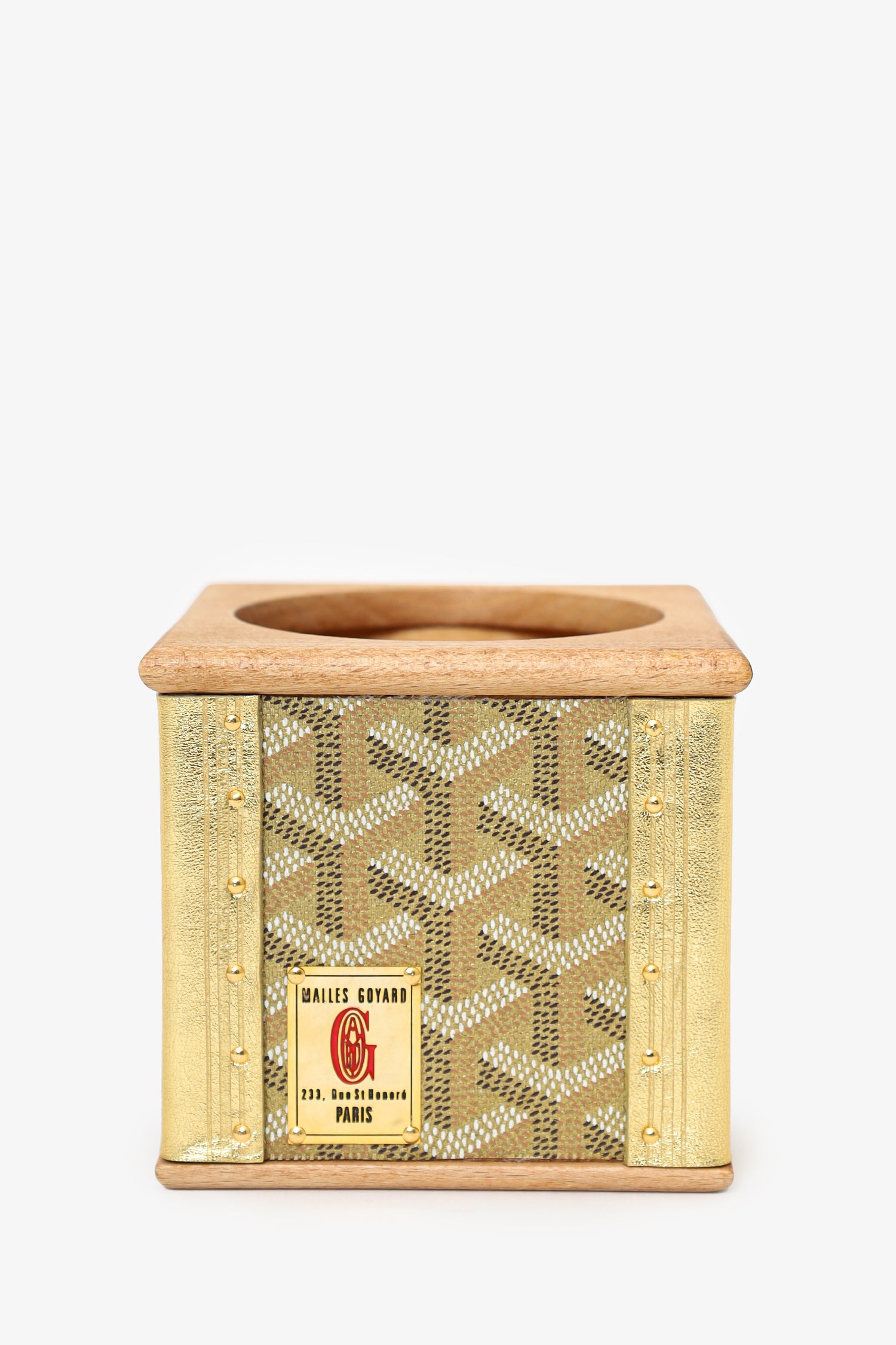 Refresh availabilityGoyard Gold Goyardine Coated Canvas/Wood Candle Holder. Top opening. Tonal stitching.
