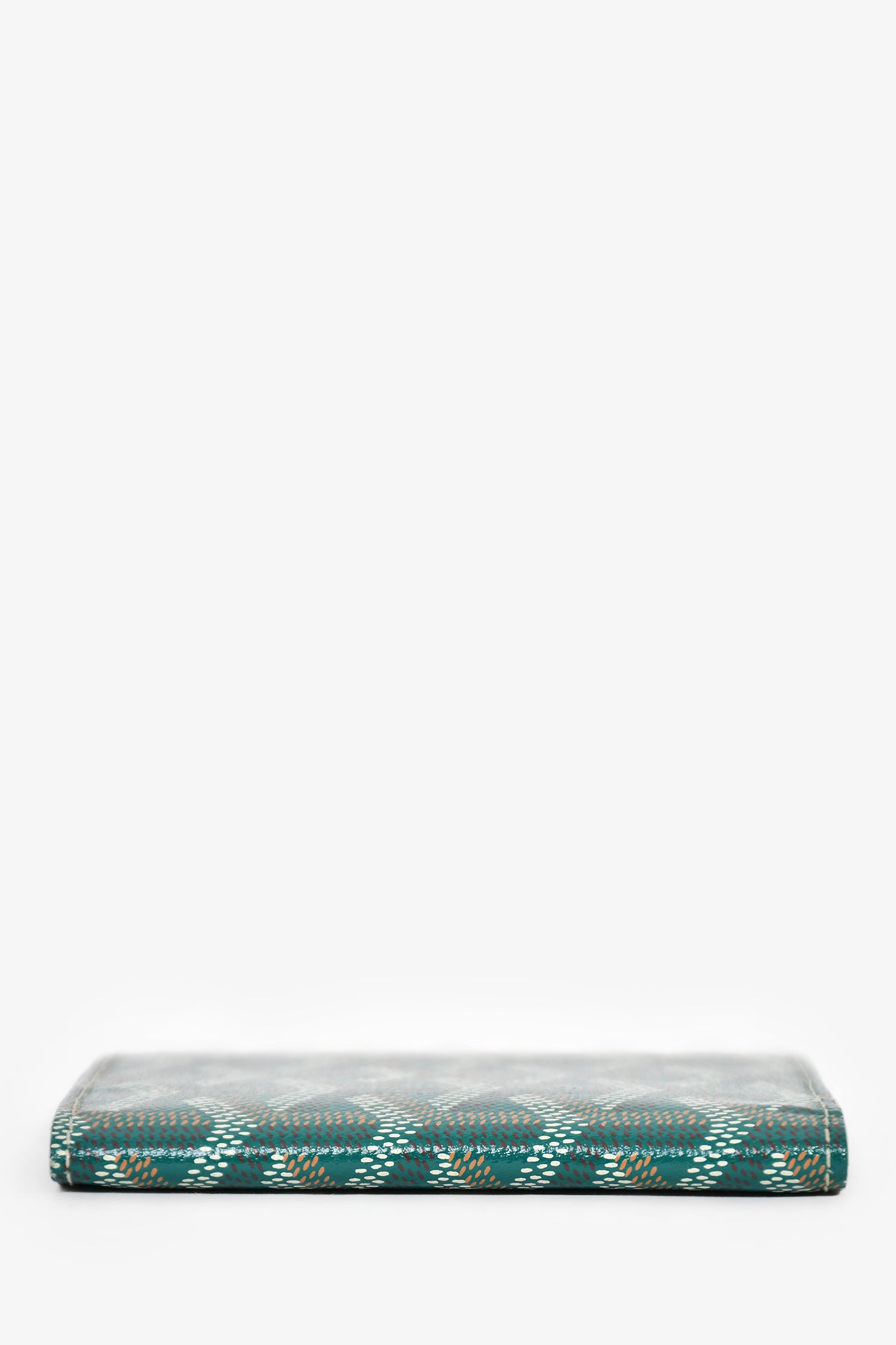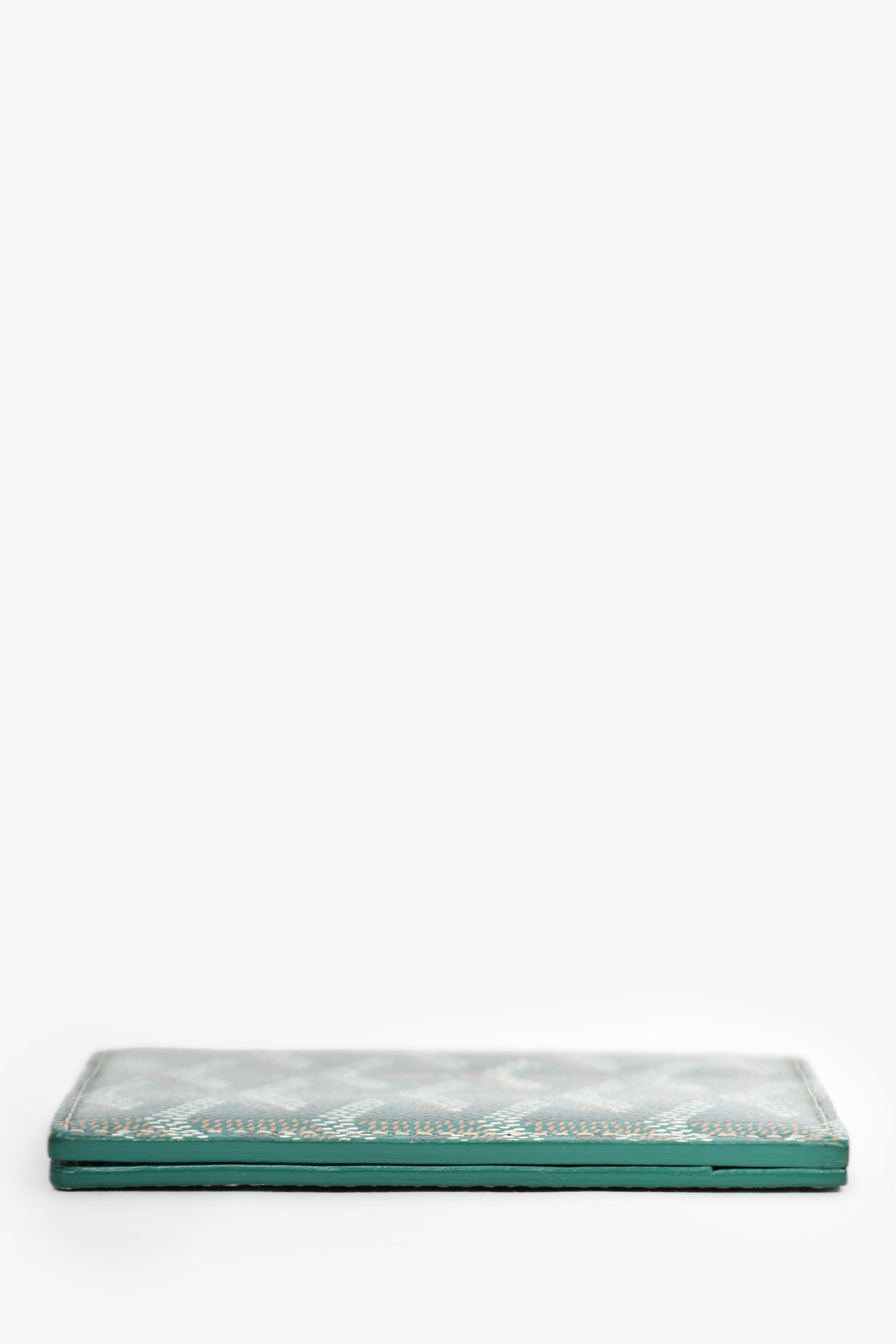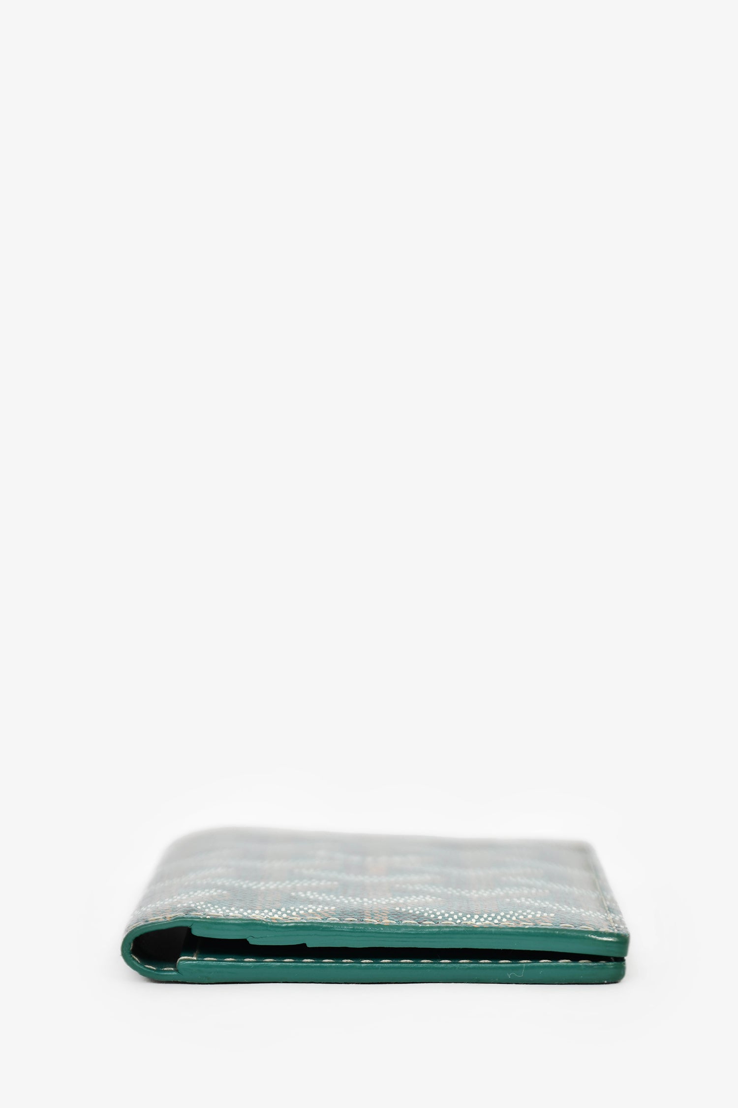 Refresh availabilityGoyard Green Goyardine Saint Marc Card Wallet. Leather-lined interior. 5 card slots. Bi-fold. Contrast stitching.