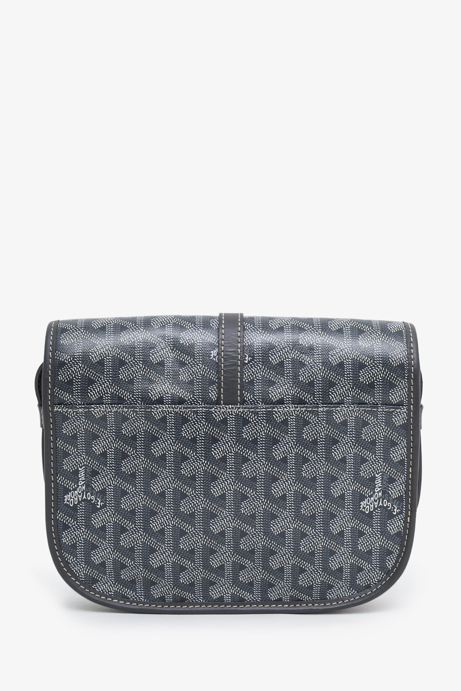 Refresh availabilityGoyard Grey Goyardine Belvedere II PM Messenger Bag. Front fold-over flap with pull-through closure. Adjustable crossbody strap with pull-through buckle closure. Single rear exterior slip pocket. Lined interior with 3 slip pockets. Lined interior. Contrast stitching.