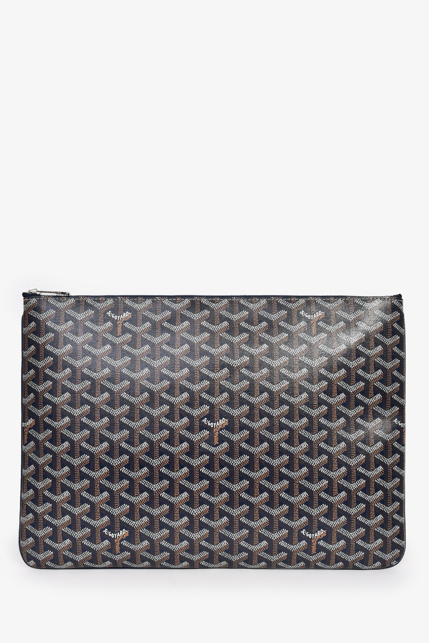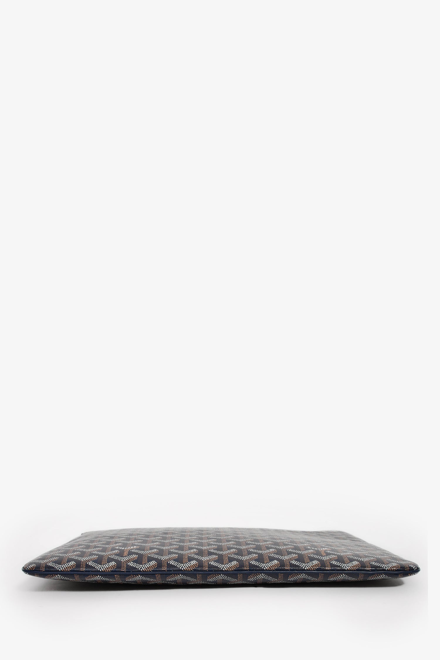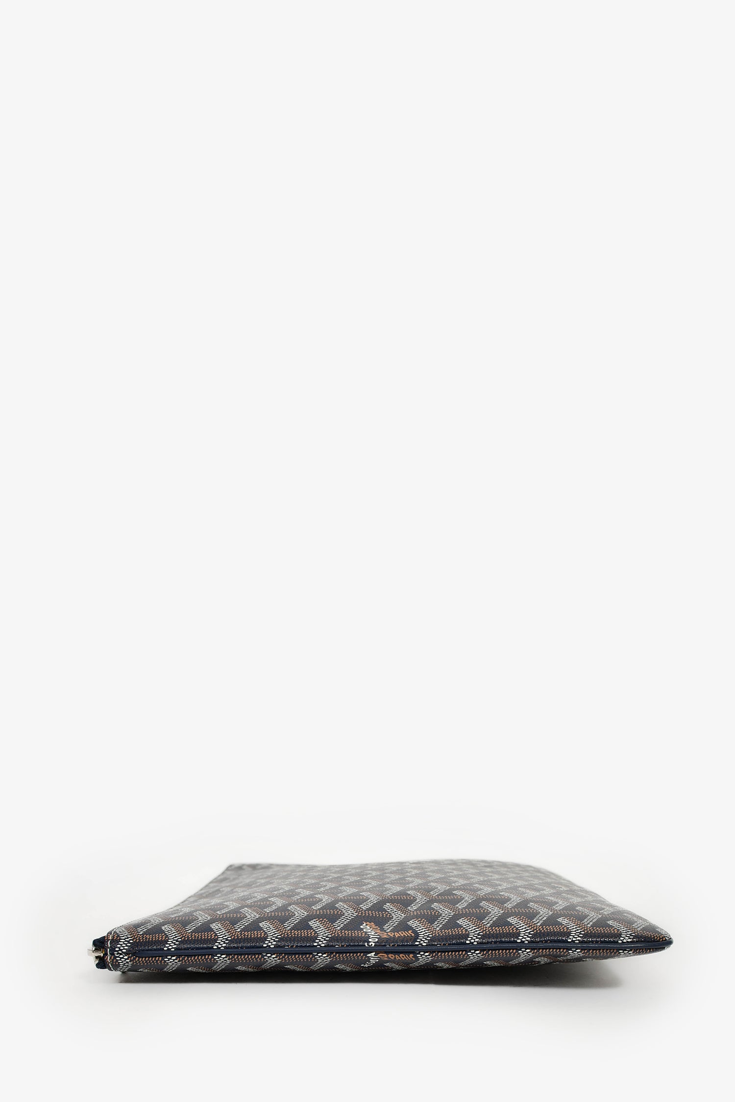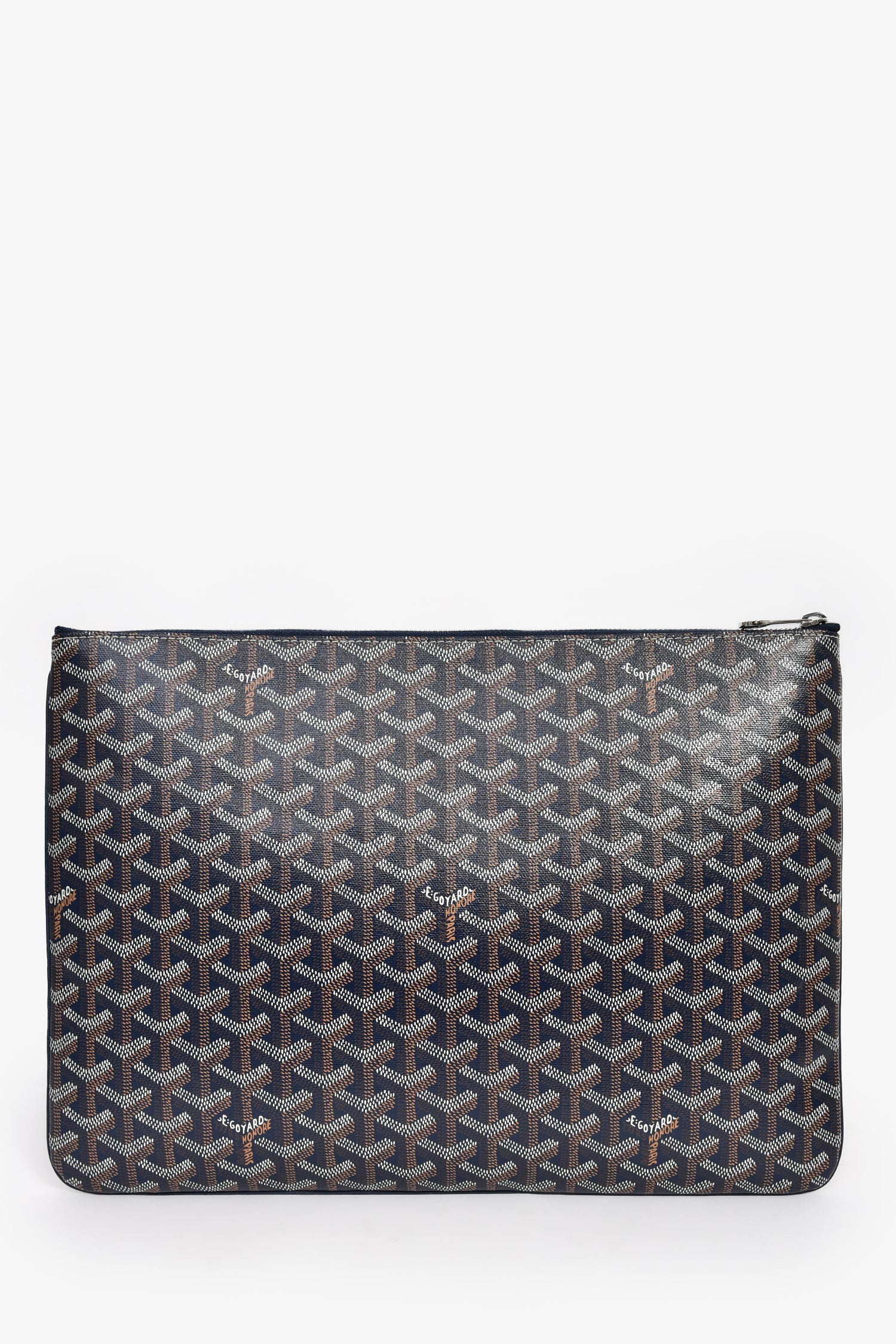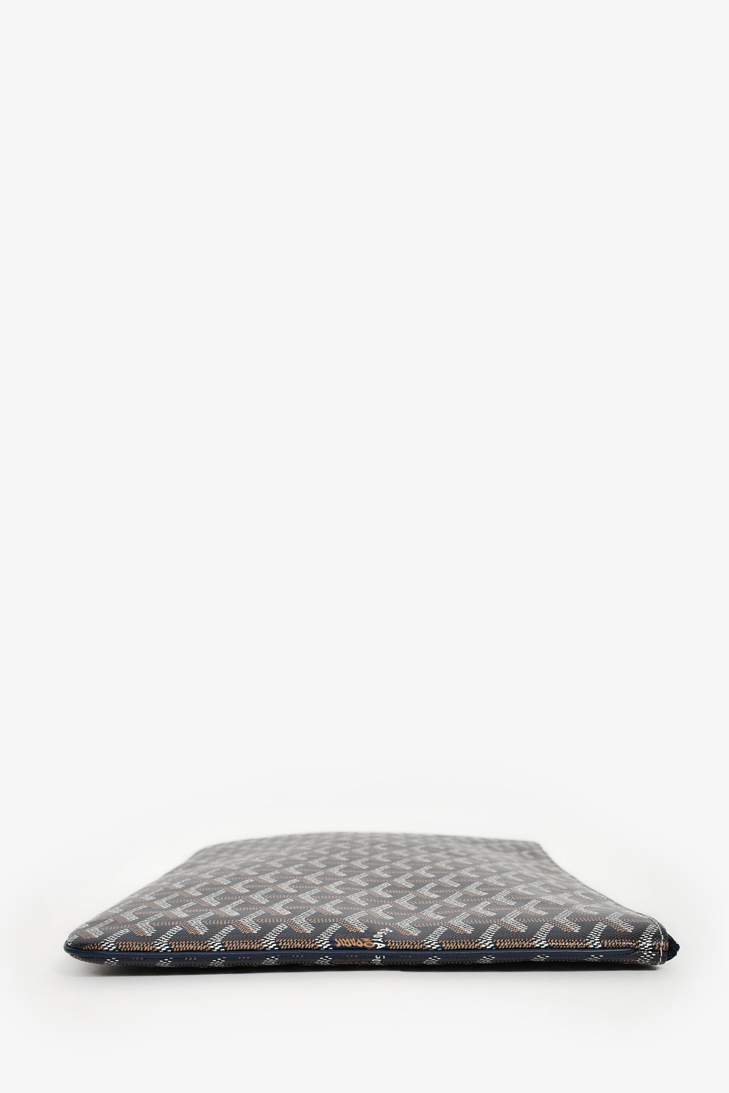 Refresh availabilityGoyard Navy Blue Goyardine Pochette Senat GM Zip Pouch. Top zip closure. Canvas-lined interior with a card slot. Silver-tone hardware. Tonal stitching.