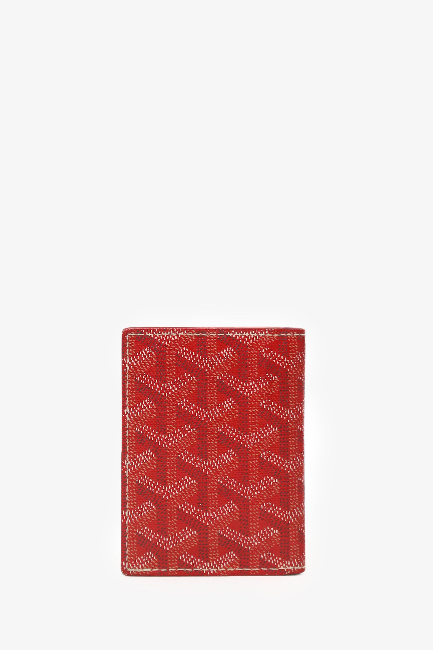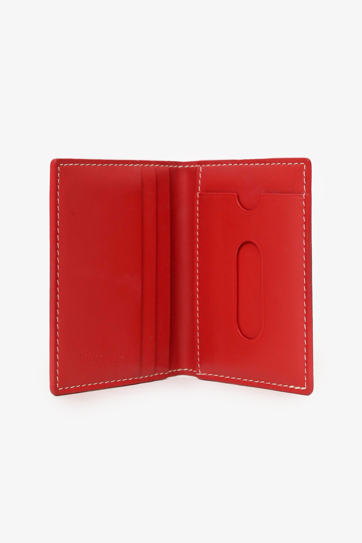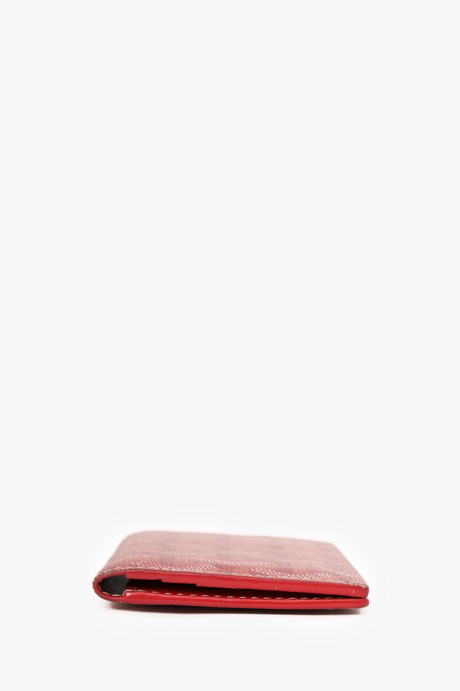 Refresh availabilityGoyard Red Goyardine Leather Card Holder. Bi-fold. 5 interior card slots. Contrast-stitching.