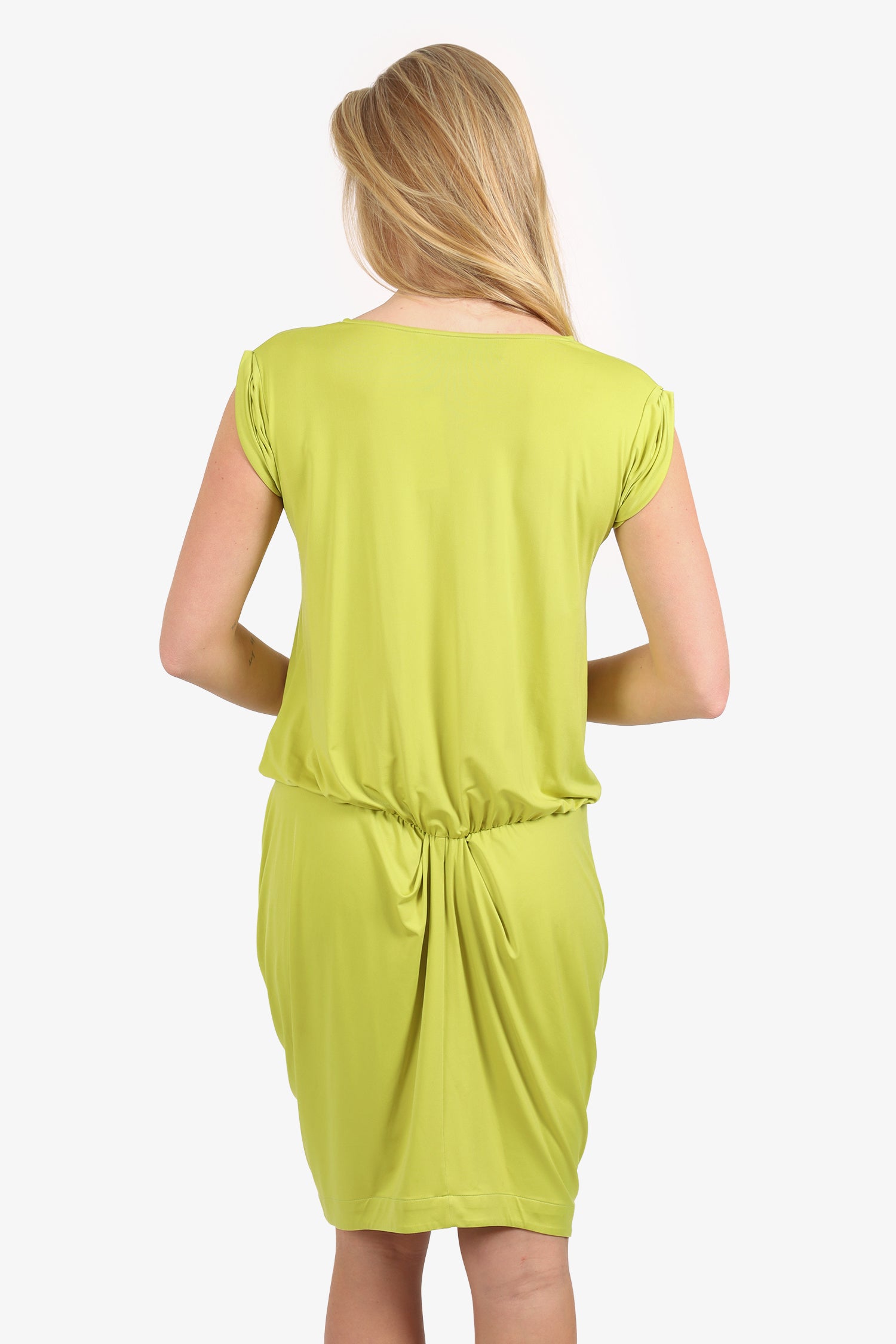 Refresh availabilityGreta Constantine Green Short Sleeve Ruched Mini Dress. Slip-on. Round neckline. Tonal stitching.