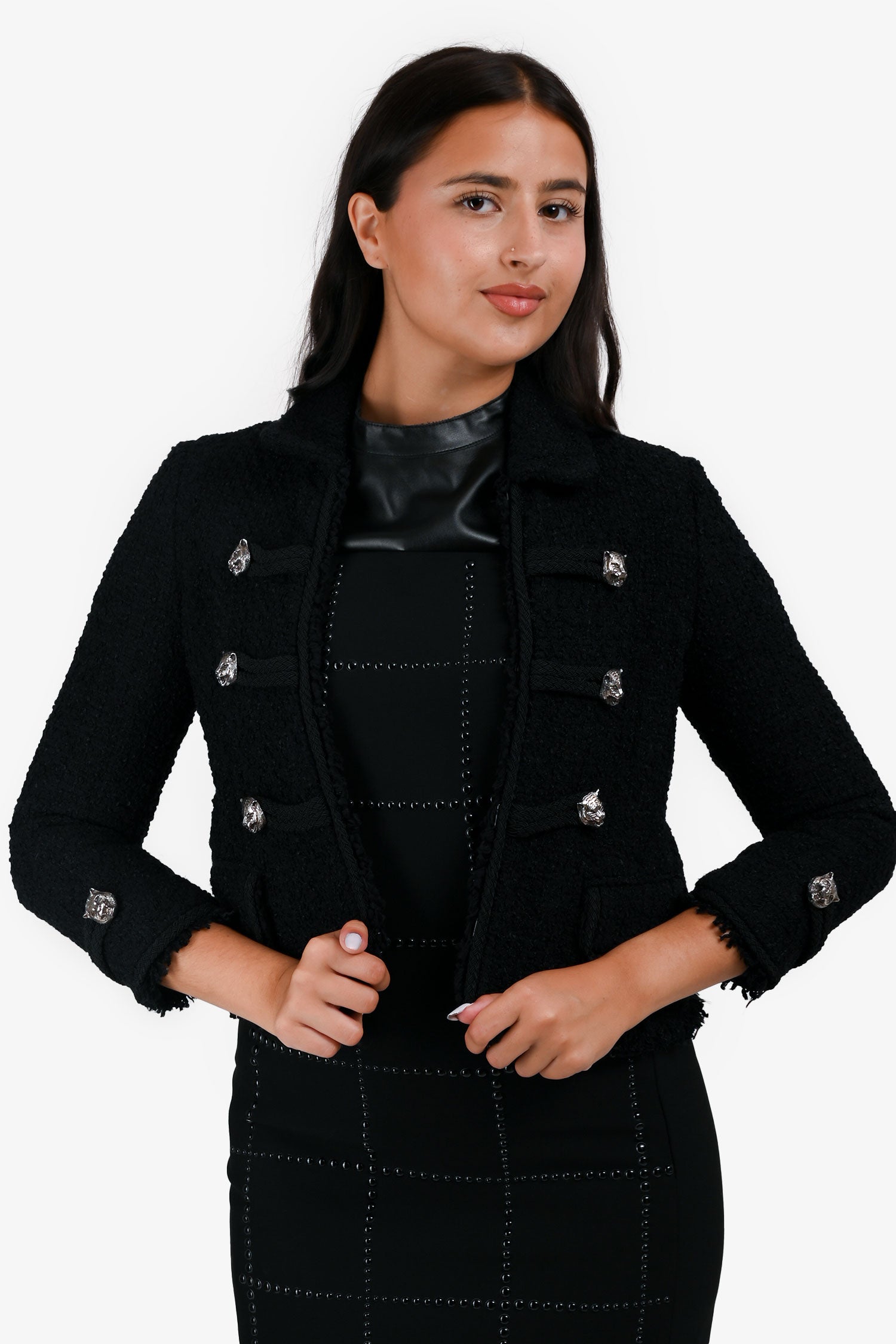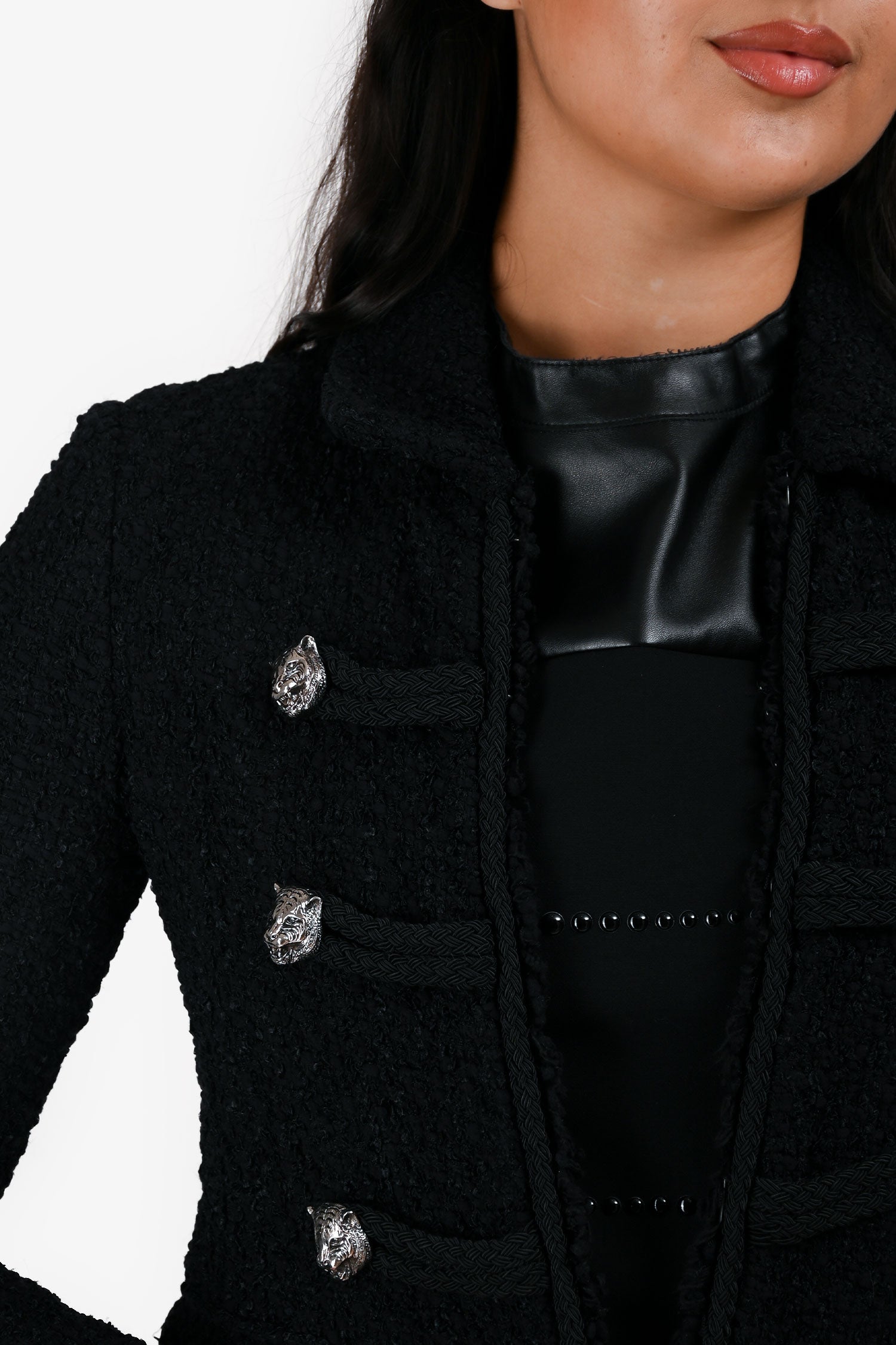 Gucci 2015 Black Tweed Tiger Button Military Jacket Size 38