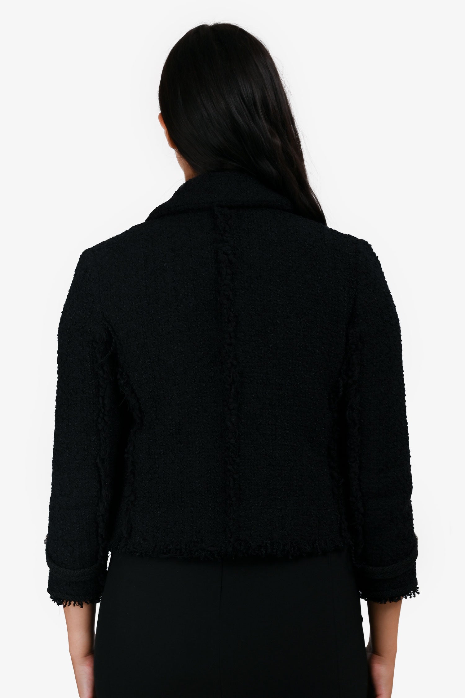 Refresh availabilityGucci 2015 Black Tweed Tiger Button Military Jacket. Front hook-up closure. Front pockets. Lined.