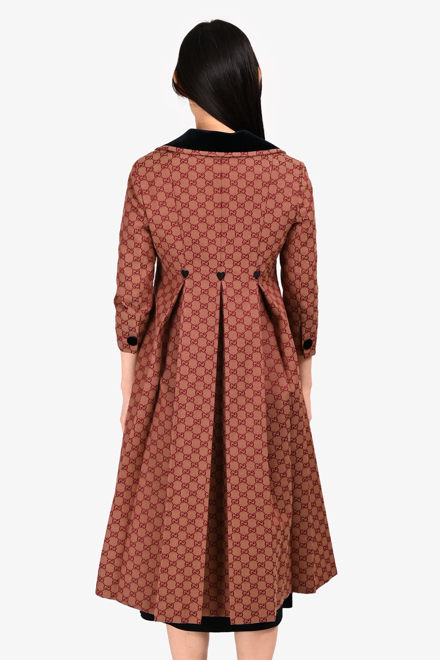 Refresh availabilityGucci 2021 Burgundy GG Monogram Velvet Detailed Coat. Front button-up closure. Front pockets. Lined.