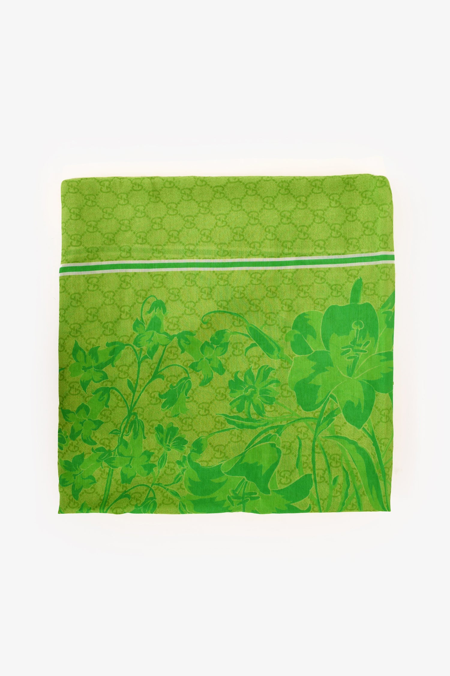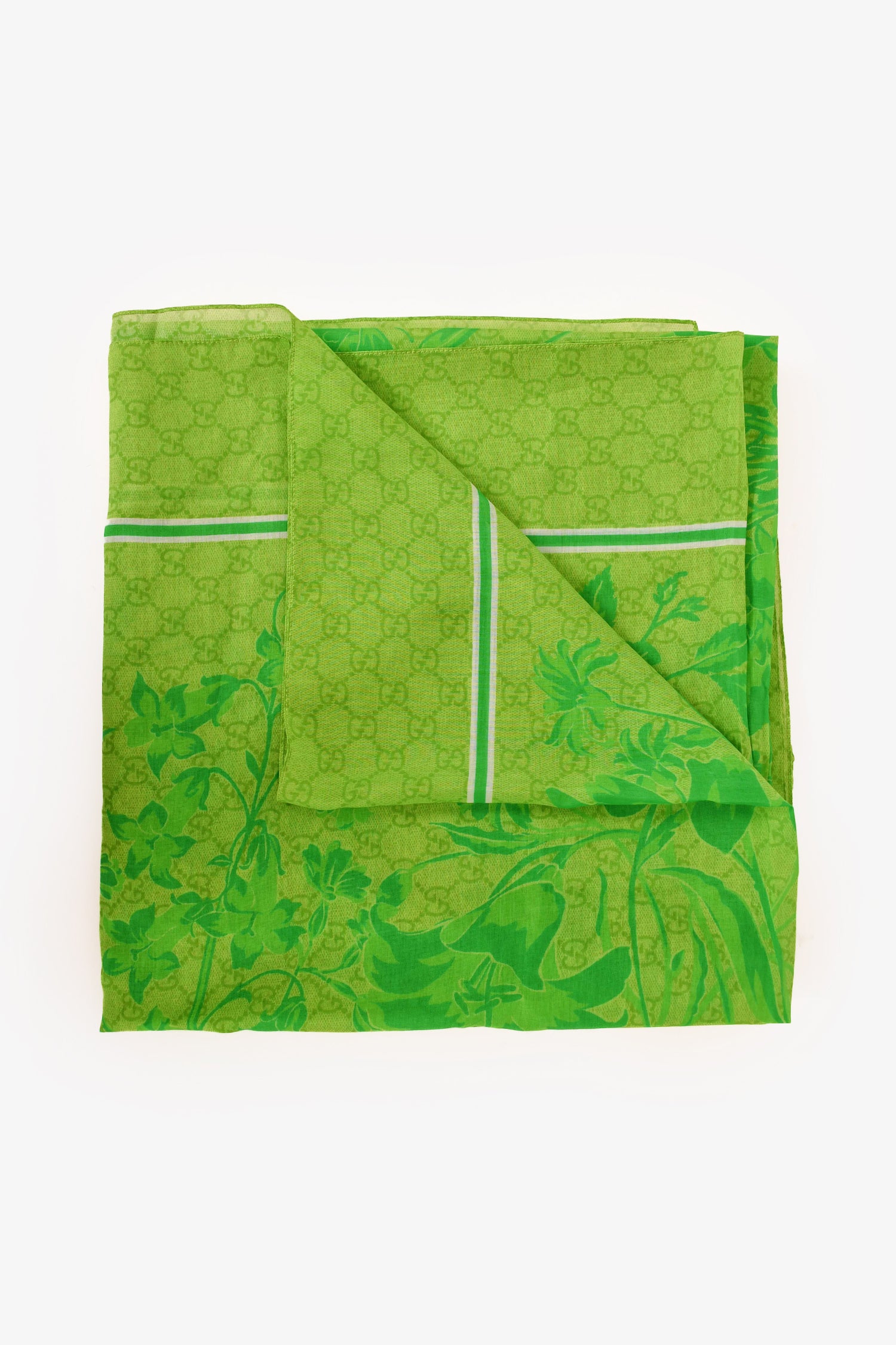 Gucci 2024 Green GG supreme Floral Print Scarf