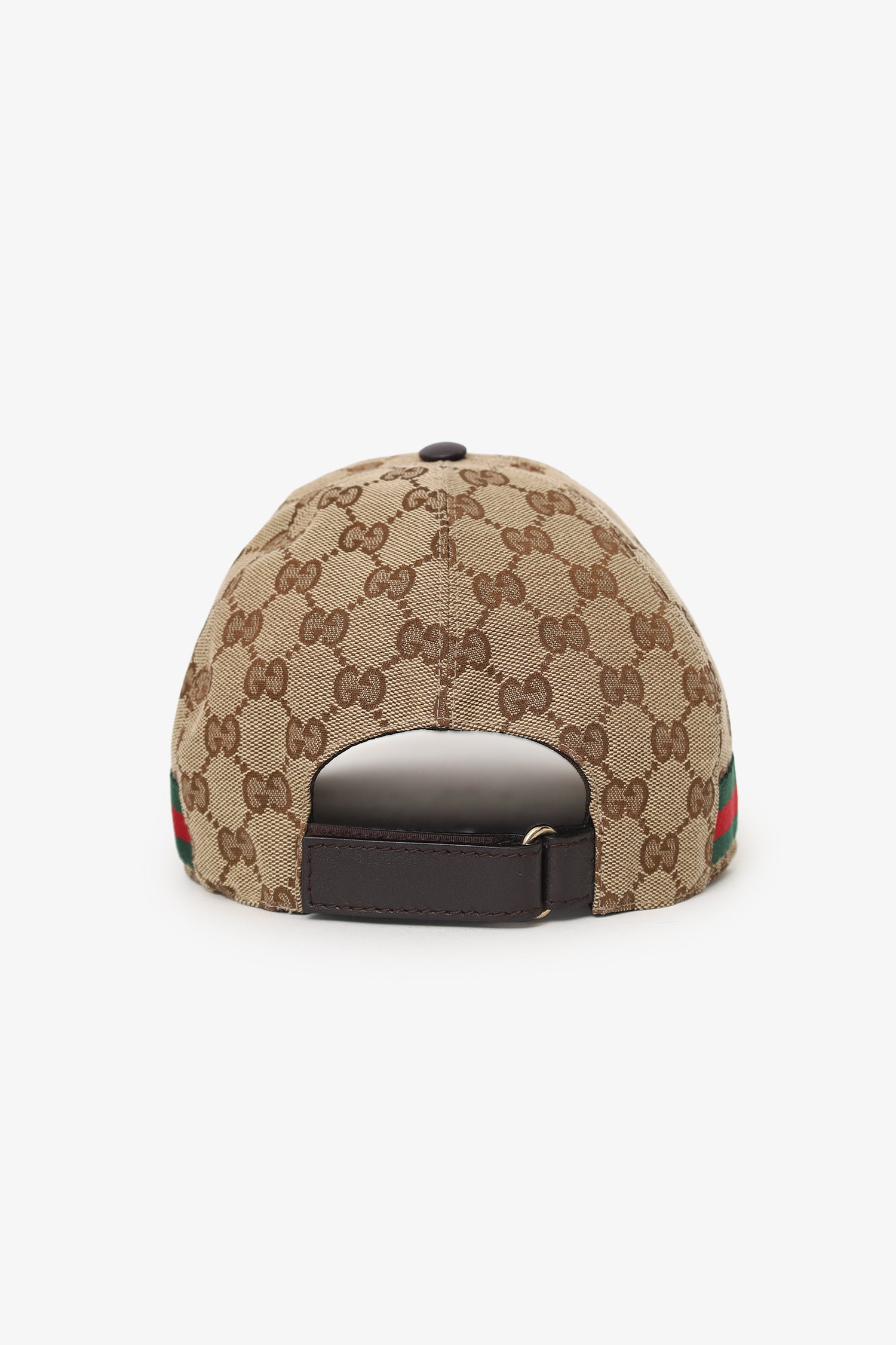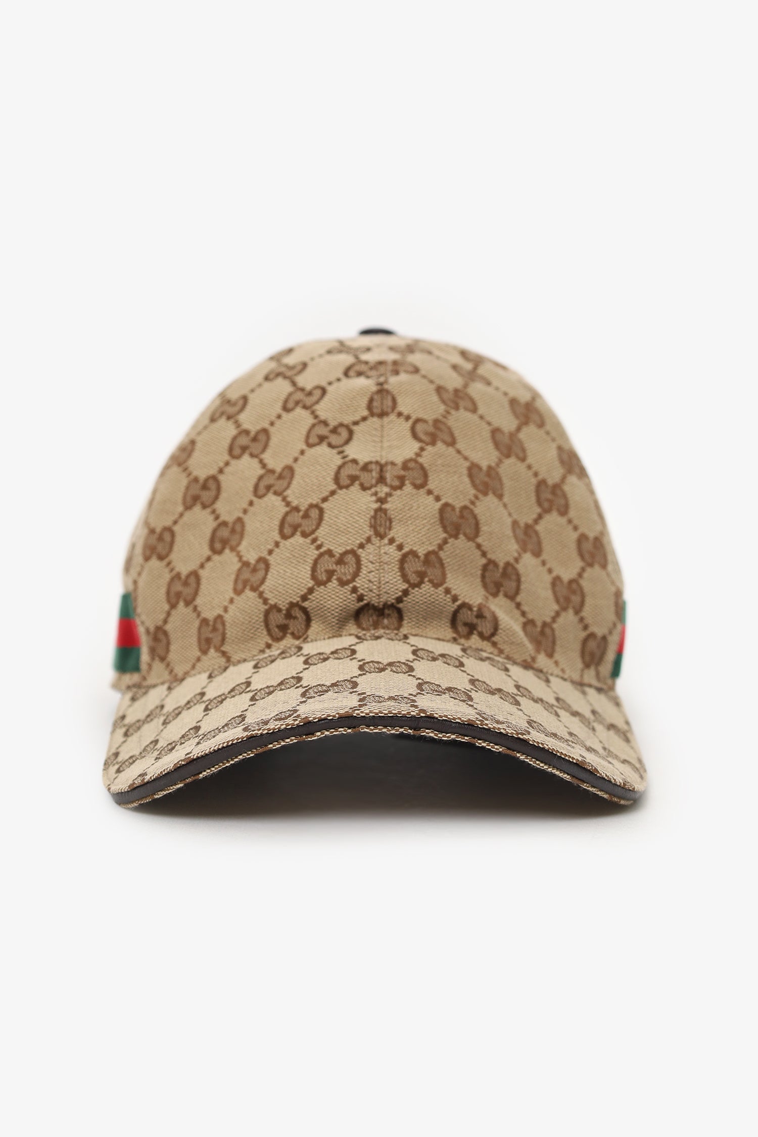 Refresh availabilityGucci Beige 'GG' Canvas Cap. Adjustable rear pull-through velcro closure. Lined interior. Gold-tone hardware. Tonal stitching.