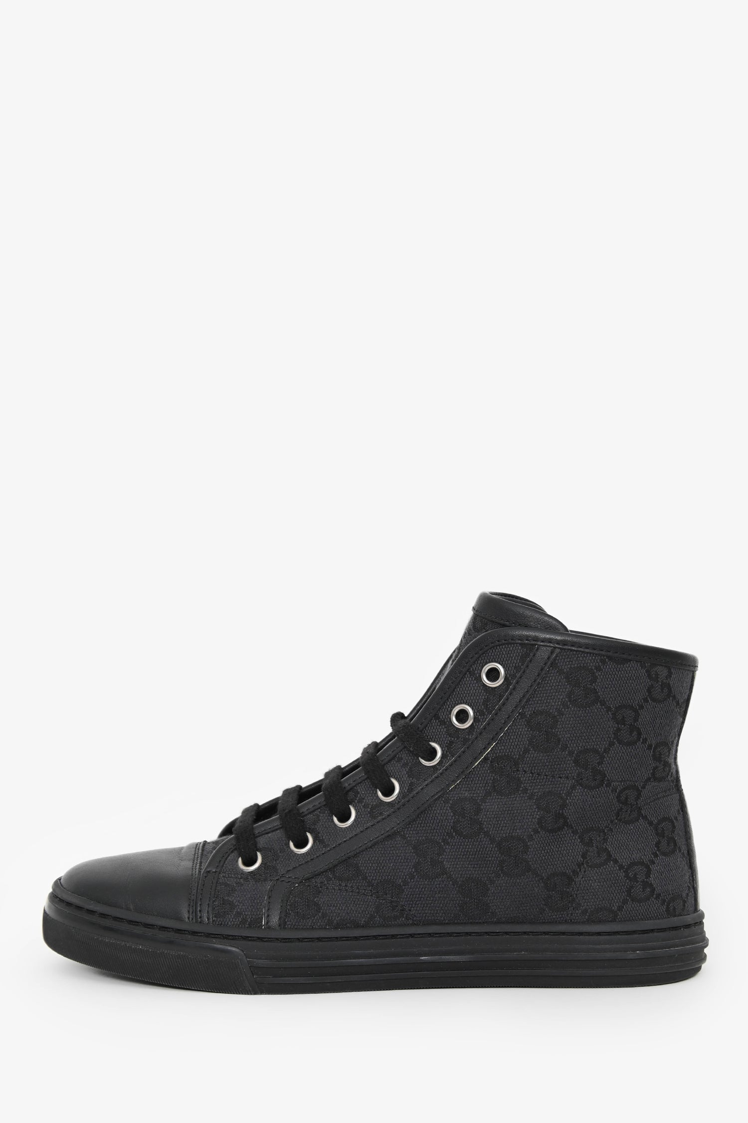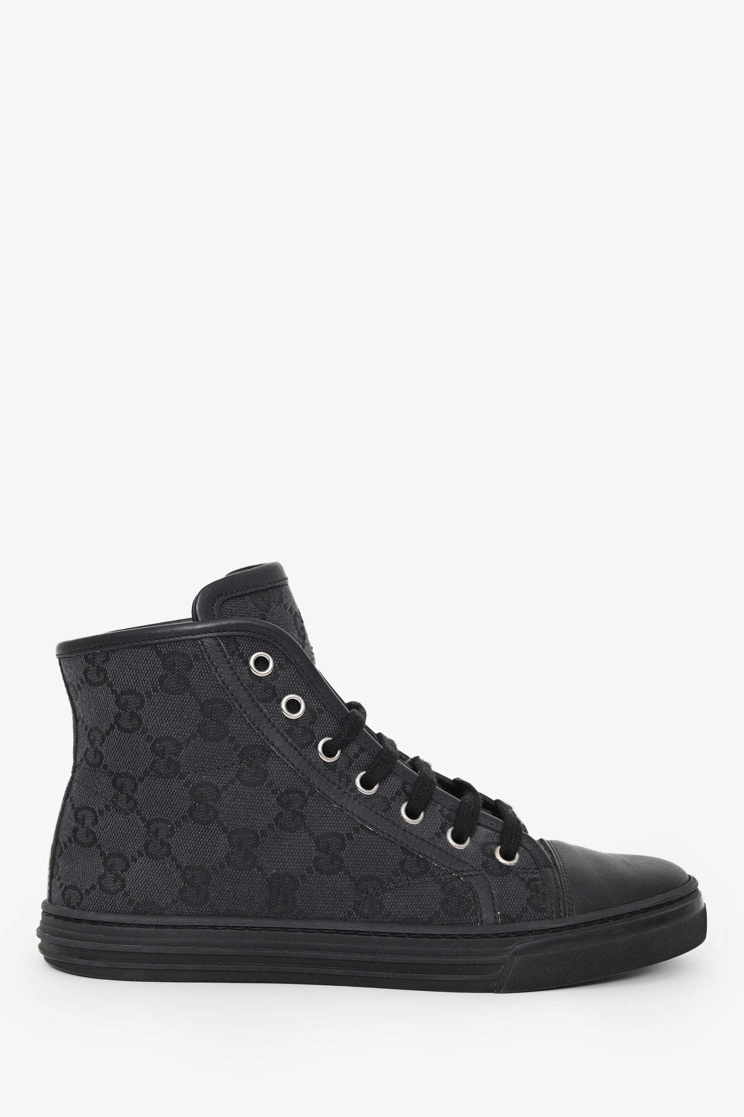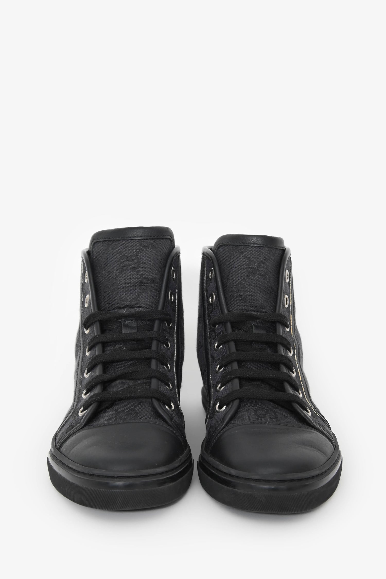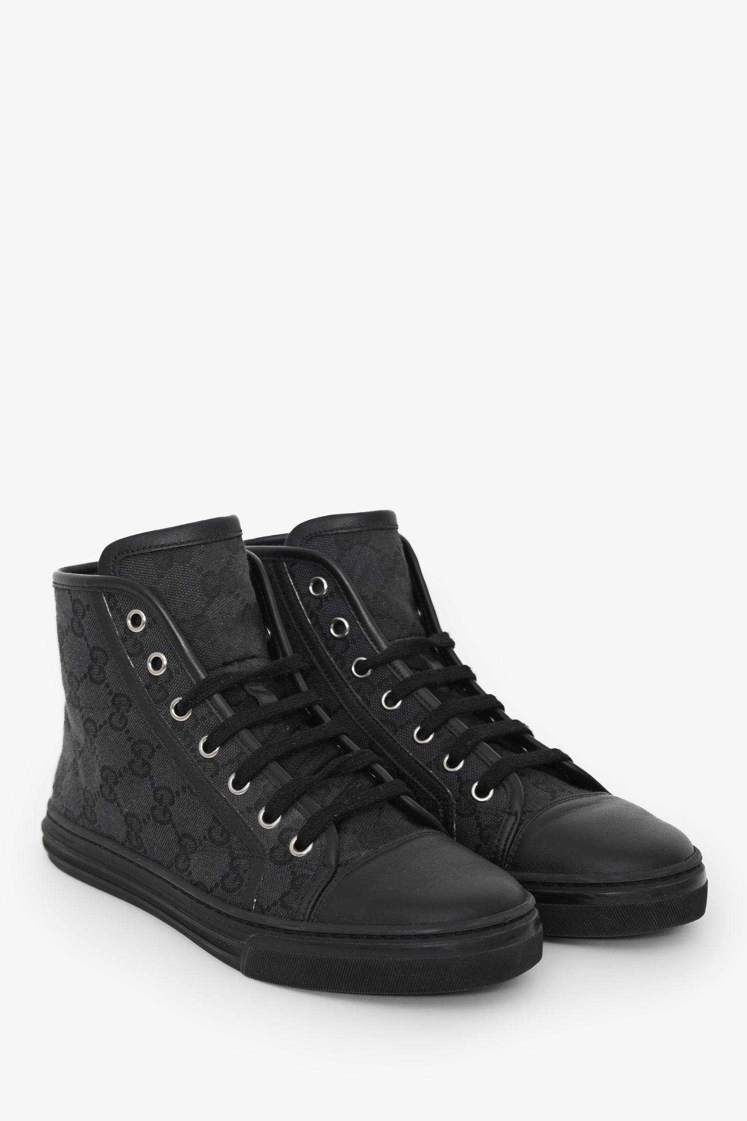 Refresh availabilityGucci Black Canvas GG High Top Sneakers. Slip-on. Round toe. Lace-up closure. Rubber soles. Tonal stitching.