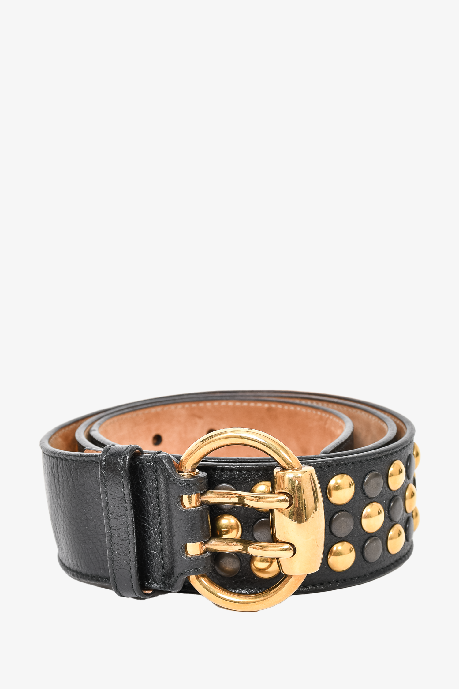 Refresh availabilityGucci Black/Gold Leather Studded Belt. Buckle closure. Tonal stitching.