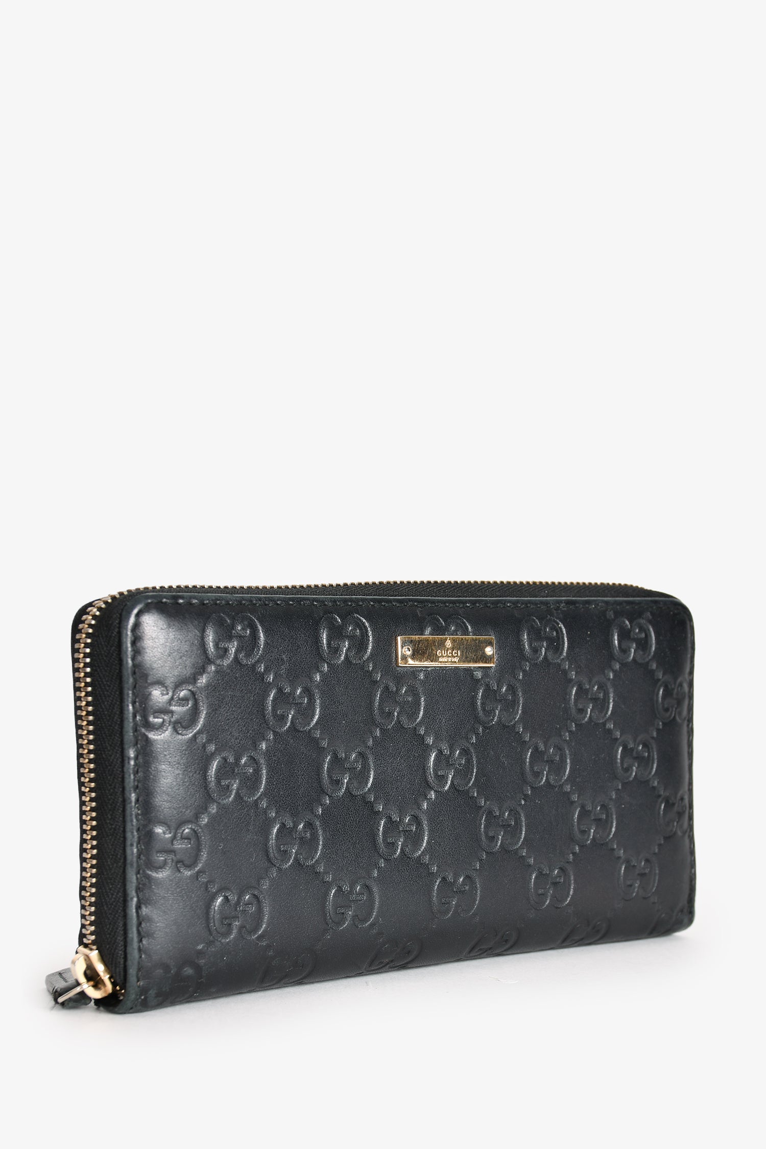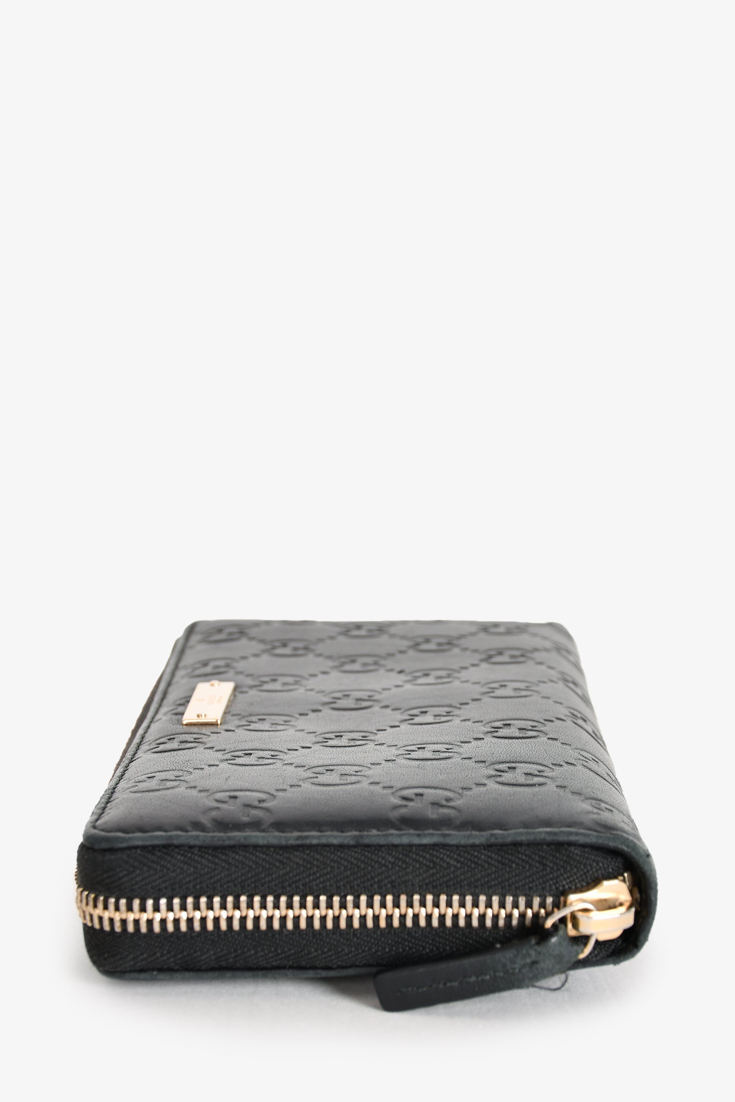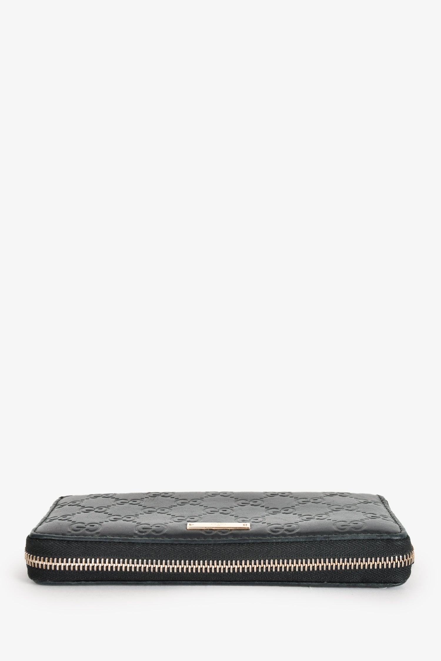 Refresh availabilityGucci Black Guccissima Continental Signature Wallet. Top zip-around closure. 12 card slots. 1 zippered compartment. Gold-tone hardware. Tonal stitching.
