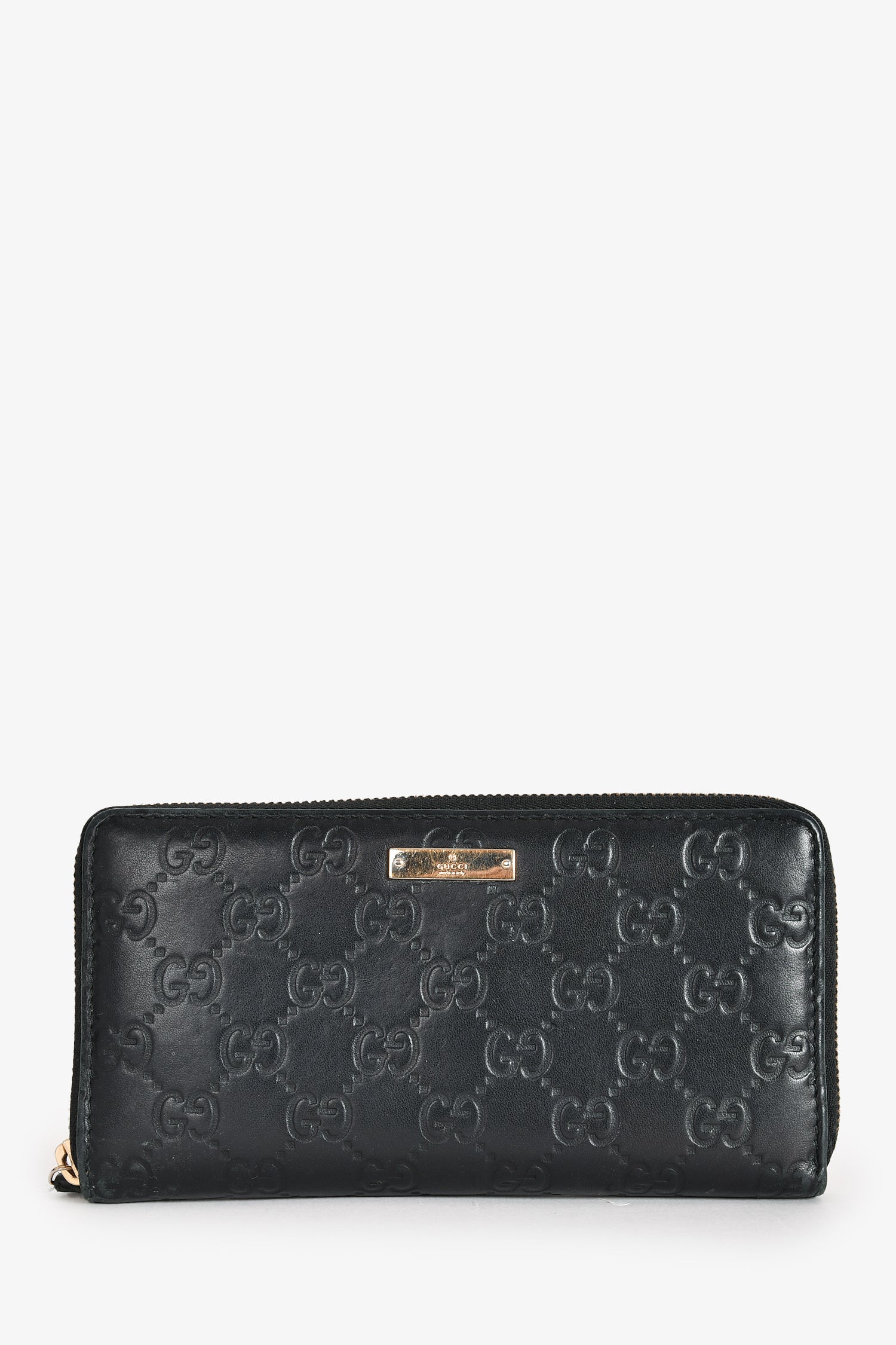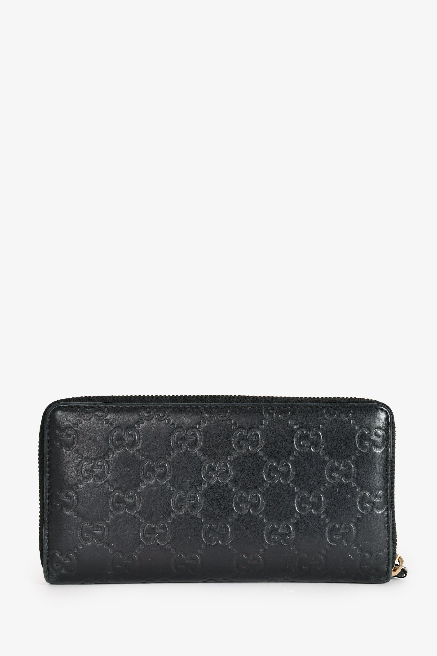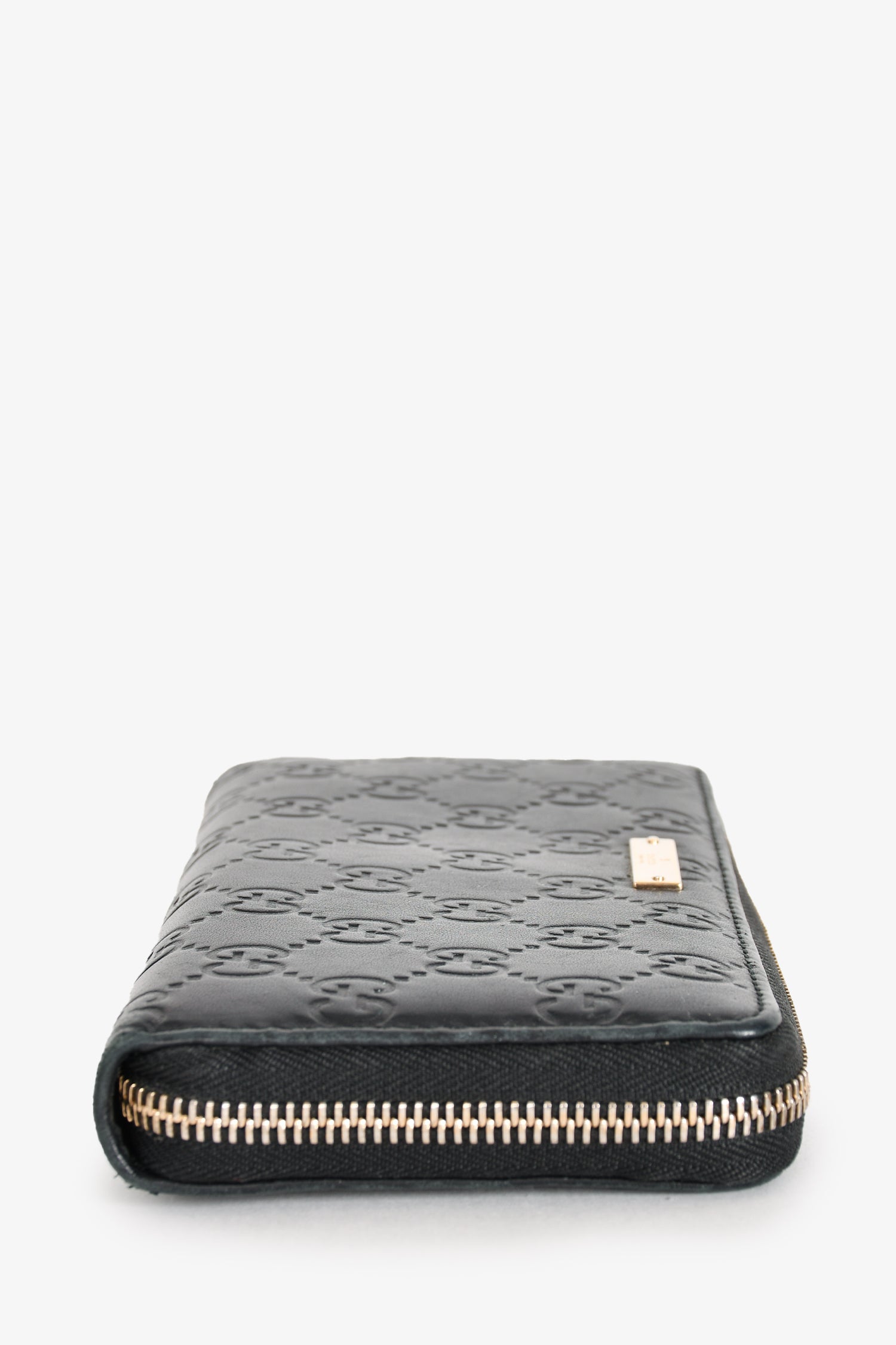 Refresh availabilityGucci Black Guccissima Continental Signature Wallet. Top zip-around closure. 12 card slots. 1 zippered compartment. Gold-tone hardware. Tonal stitching.