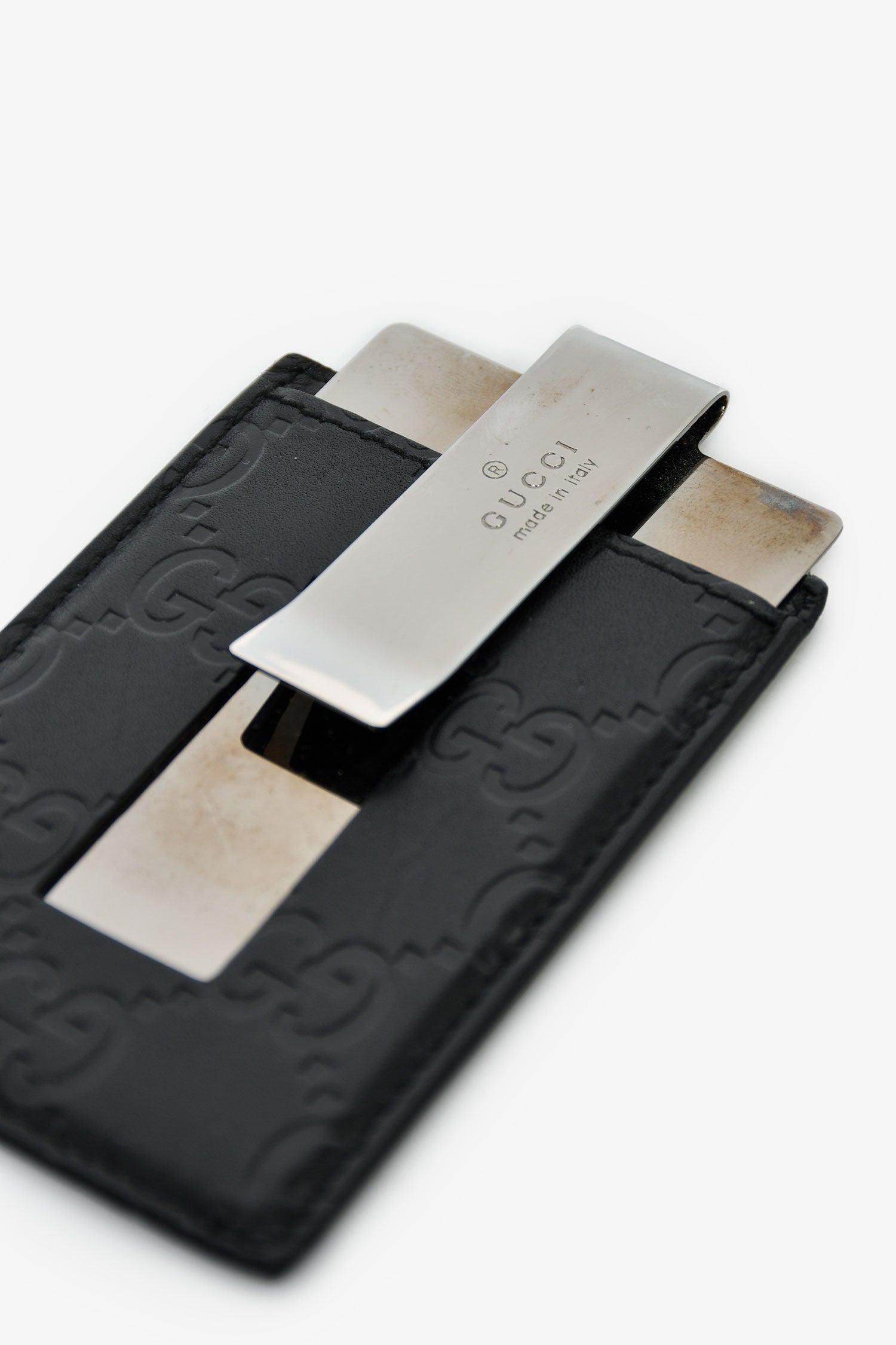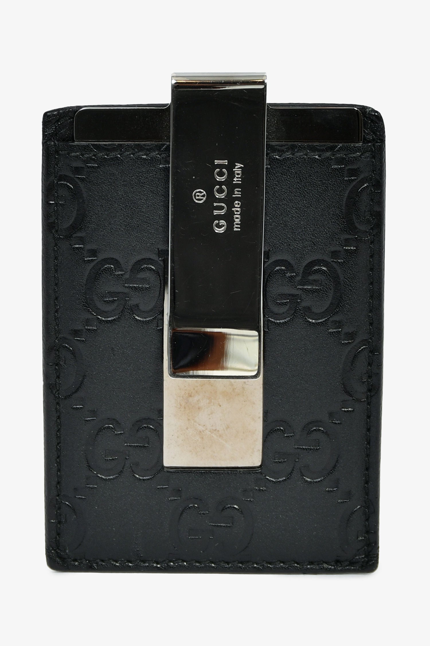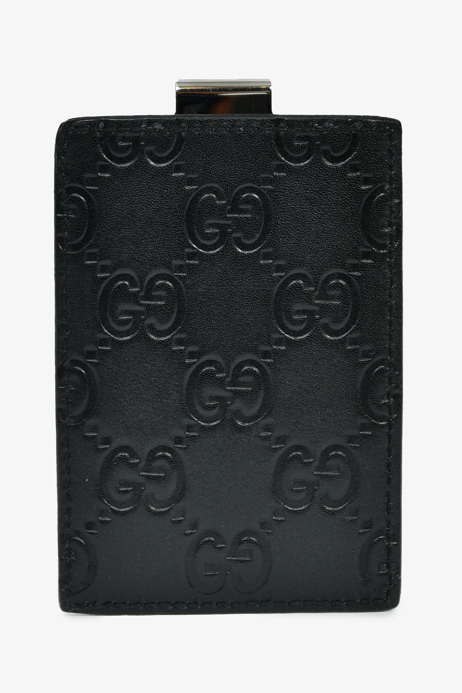Refresh availabilityGucci Black Guccissima Money Clip. Tonal stitching. Silver-tone hardware.