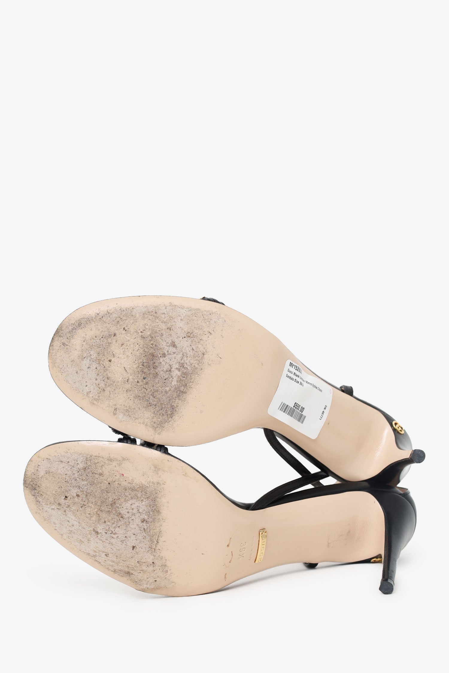 Gucci Black Leather 95mm Sylvie Chain Sandals Size 39.5
