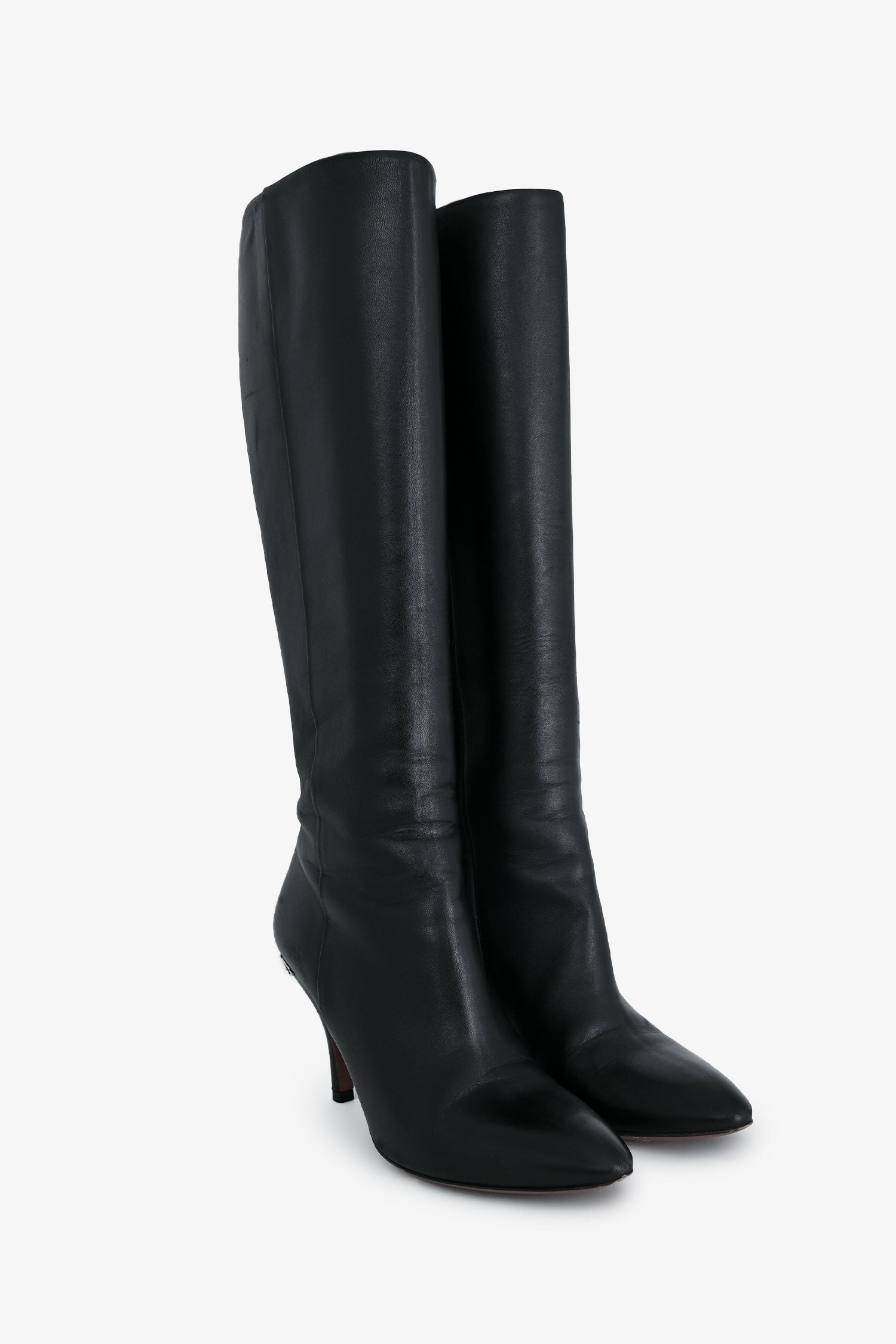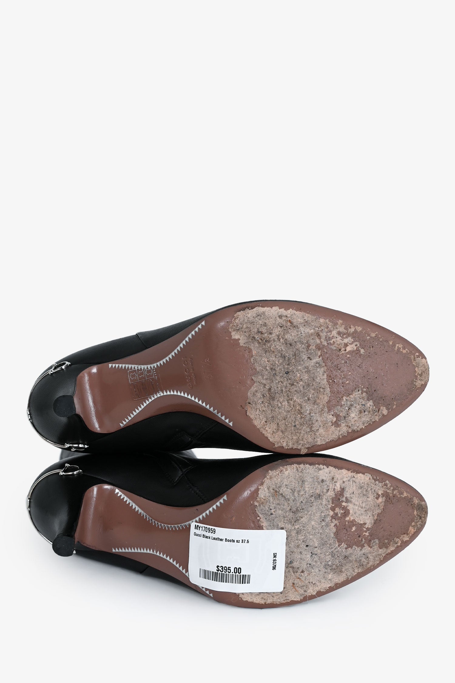 Refresh availabilityGucci Black Leather Boots. Almond toe. Tonal stitching.
