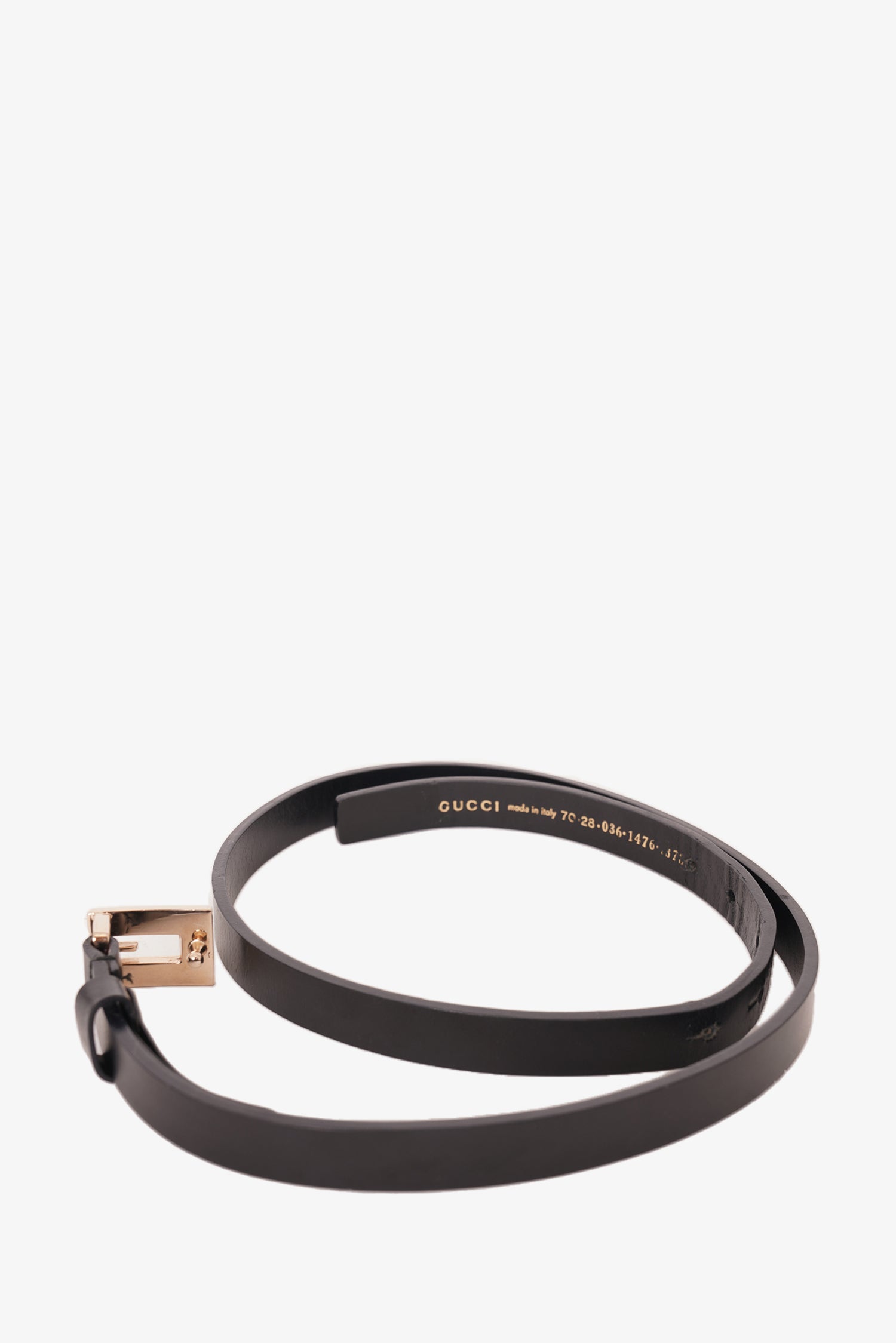 Gucci Black Leather G Buckle Slim Belt Size 70