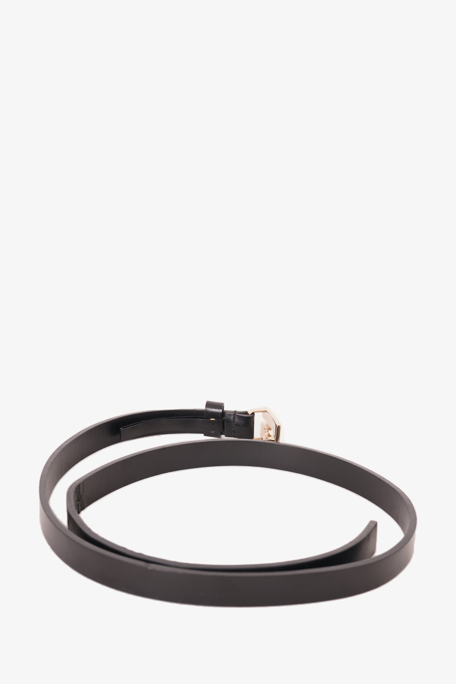 Refresh availabilityGucci Black Leather G Buckle Slim Belt. Buckle closure. Silver-toned hardware.