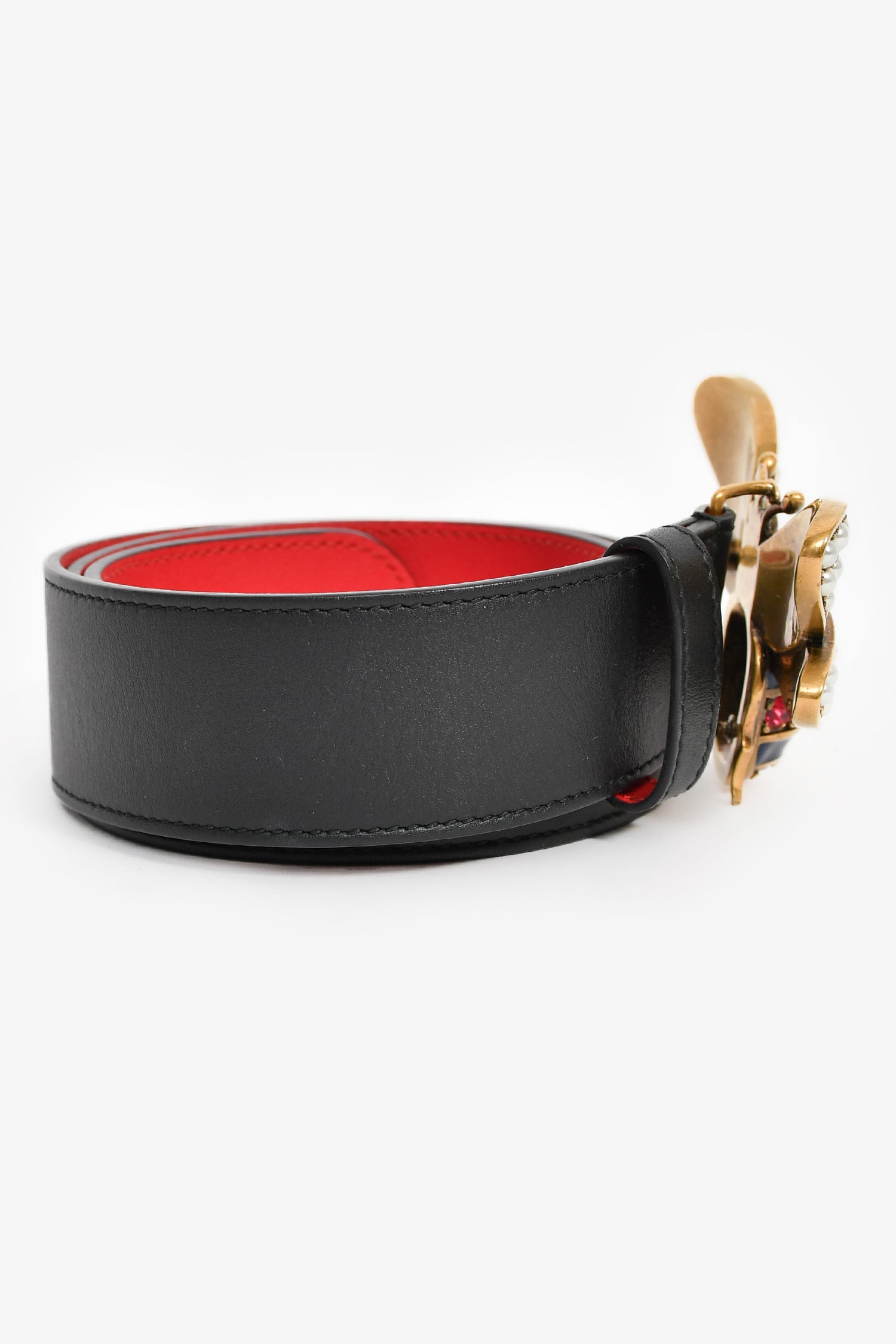 Gucci Black Leather Jewel Bee 'Sylvie ' Belt Size 110