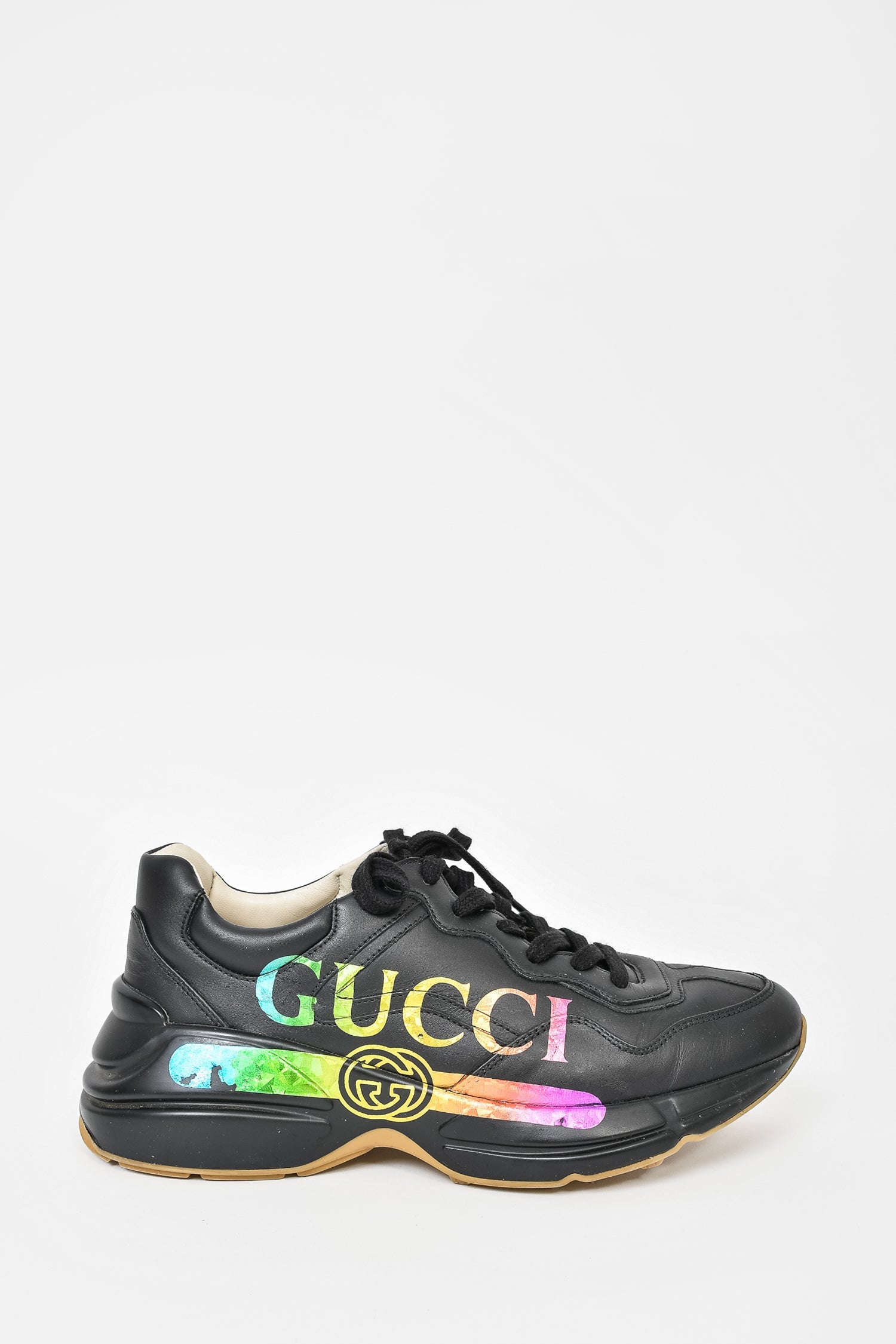 Gucci Black Leather Rainbow Logo "Rhyton" Sneakers Size 39