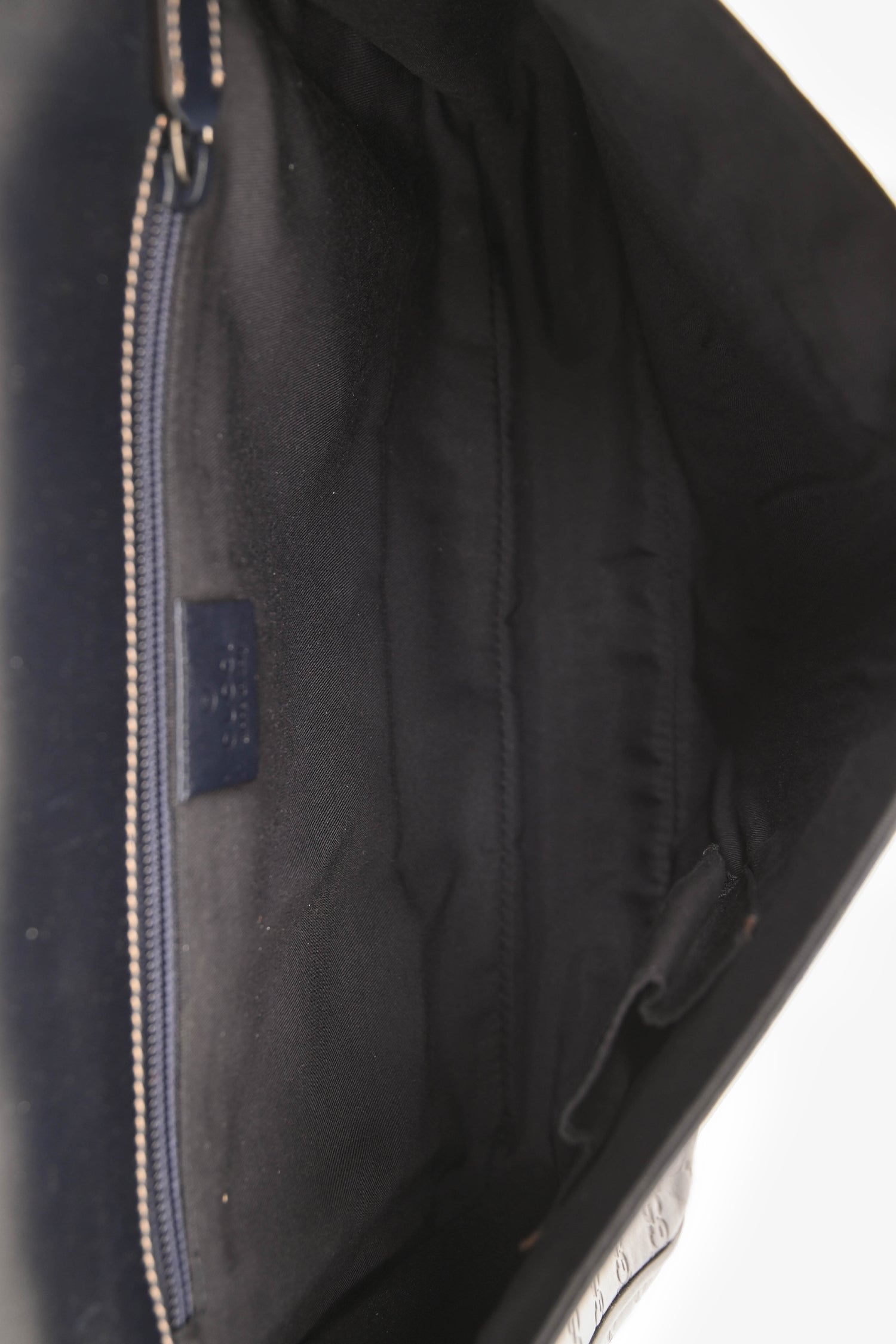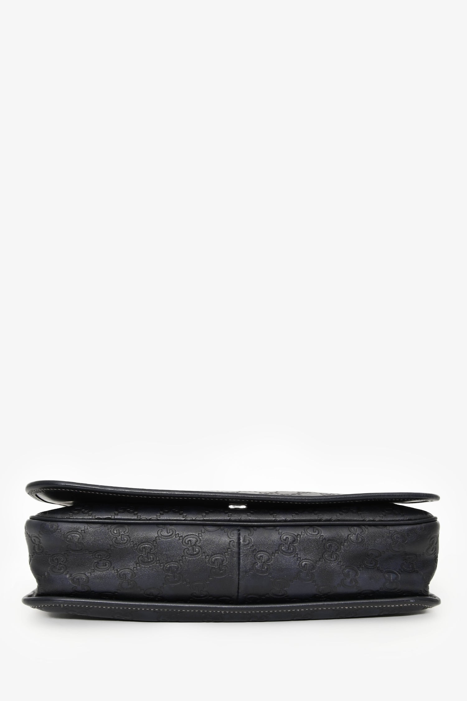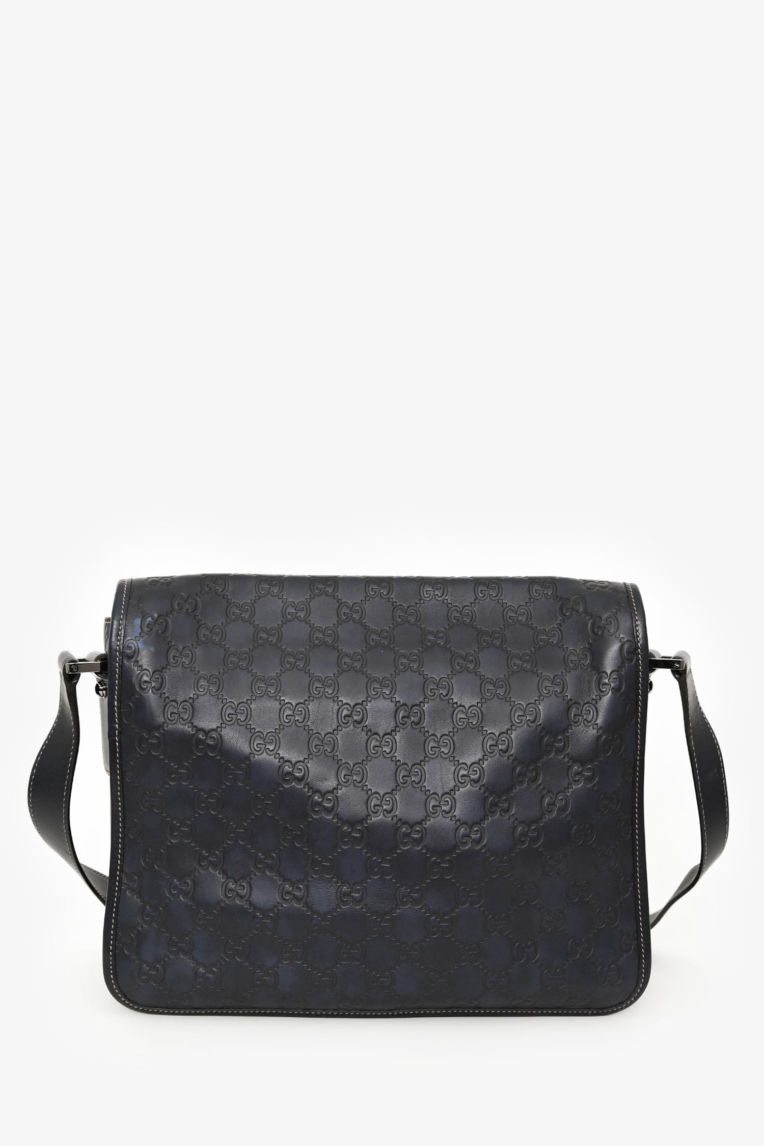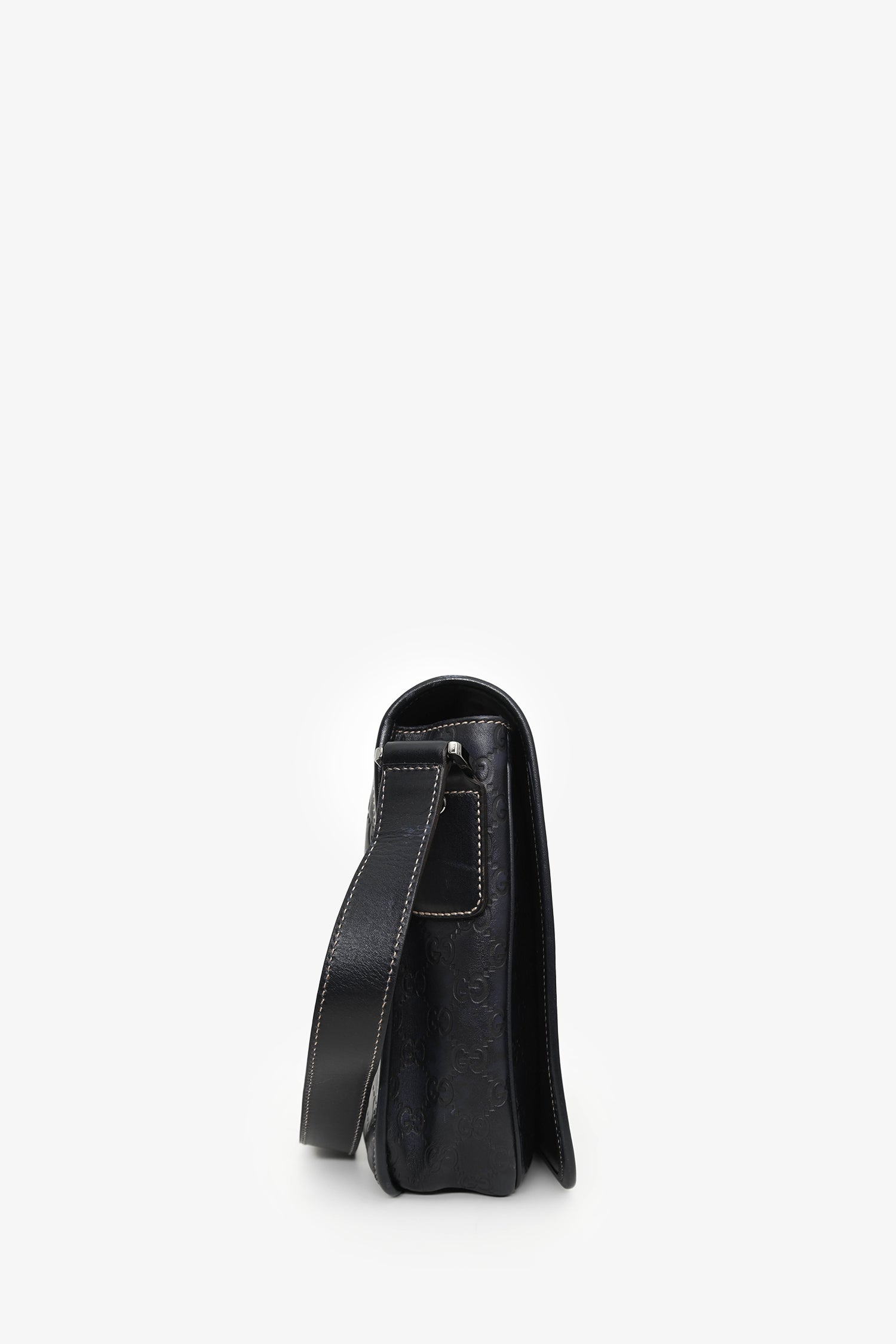 Refresh availabilityGucci Black Leather Supreme Messenger Bag. Front fold-over flap with magnetic button closure. Adjustable strap. Lined interior. 2 interior wall pockets; 1 slip, 1 with zip closure. Silver-tone hardware. Contrast stitching.