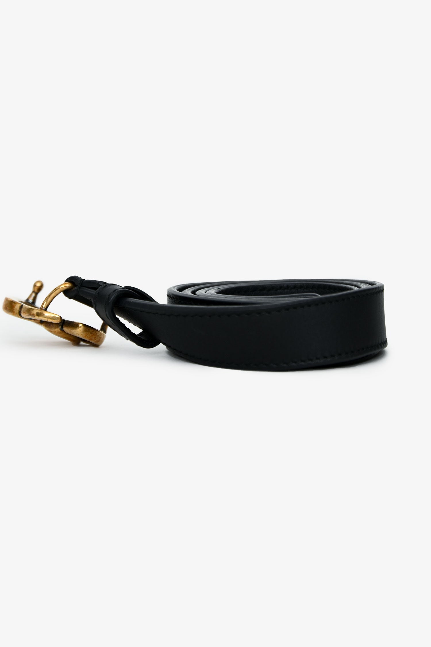 Refresh availabilityGucci Black Leather Thin GG Belt. Adjustable pull-through closure. Gold-tone hardware. Tonal stitching.