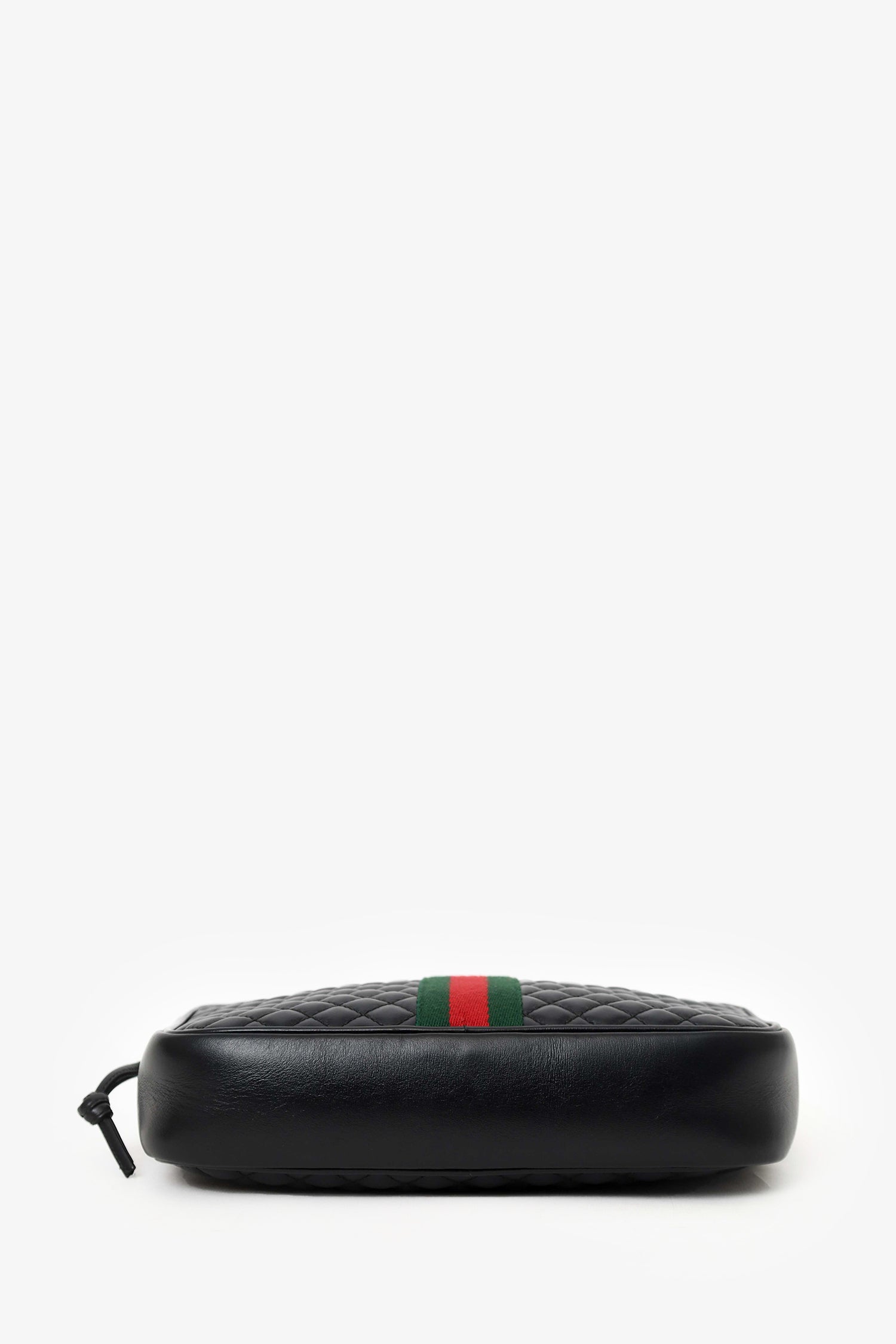 Gucci Black Leather Web Trapuntata Quilted Camera Bag