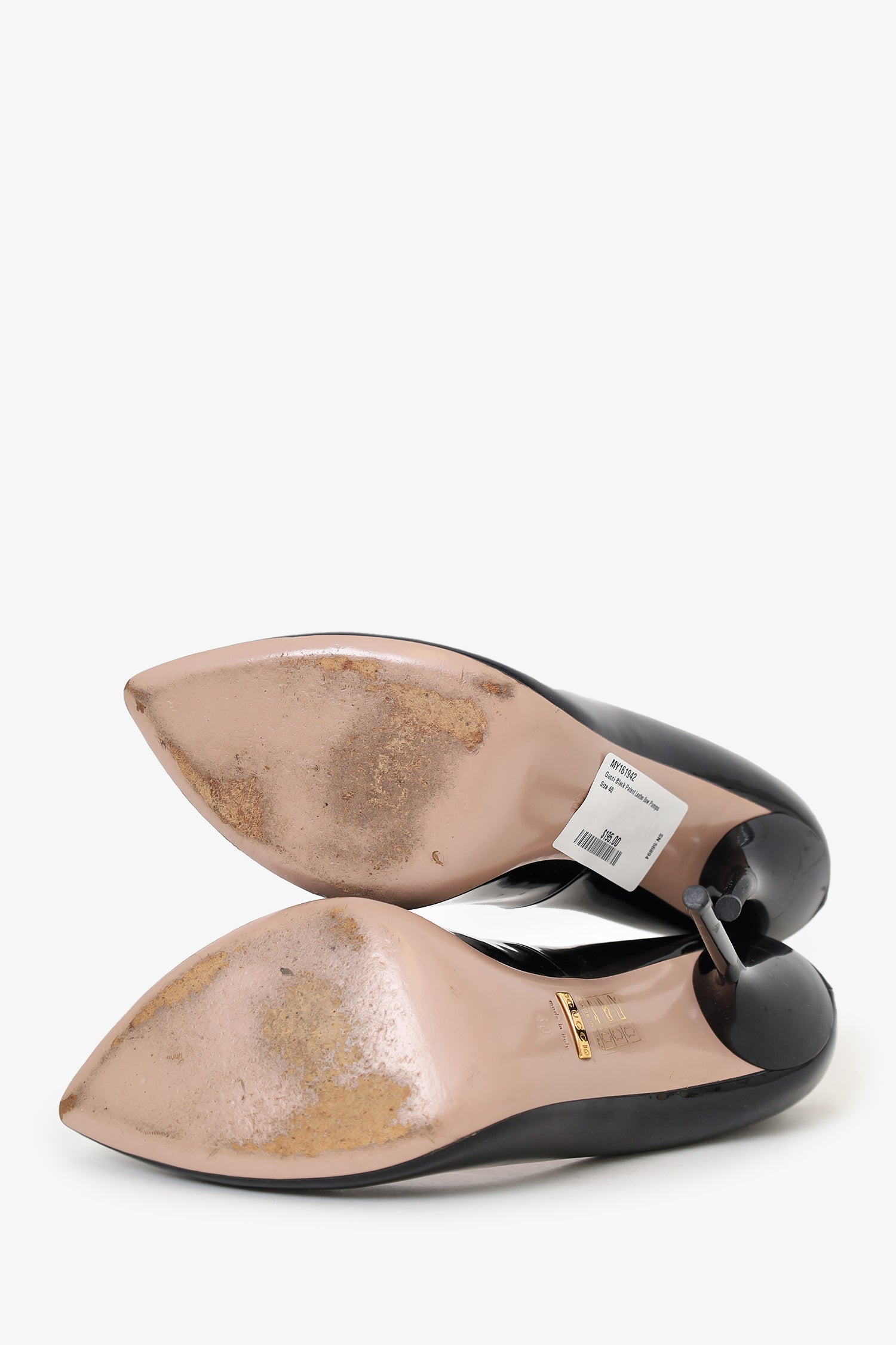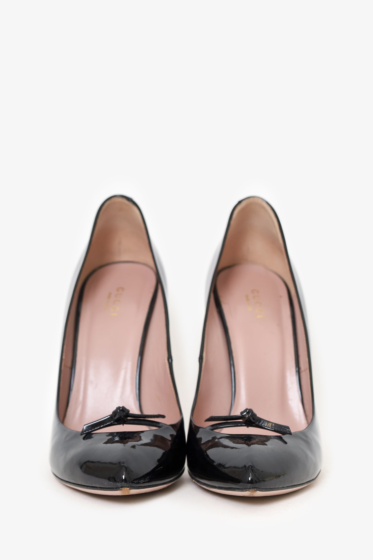 Refresh availabilityGucci Black Patent Leather Bow Pumps. Slip-on. Pointed-toe. Tonal stitching.