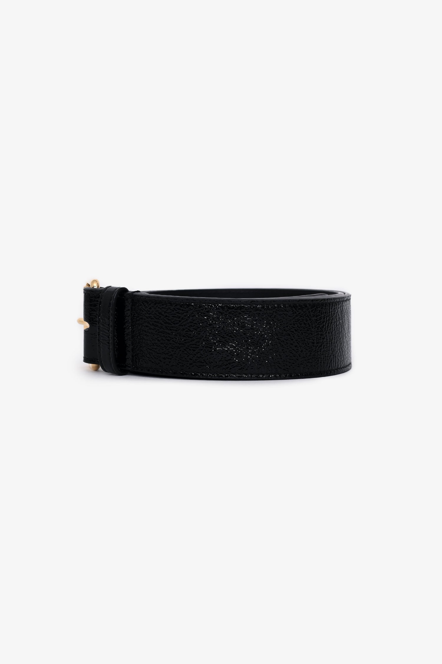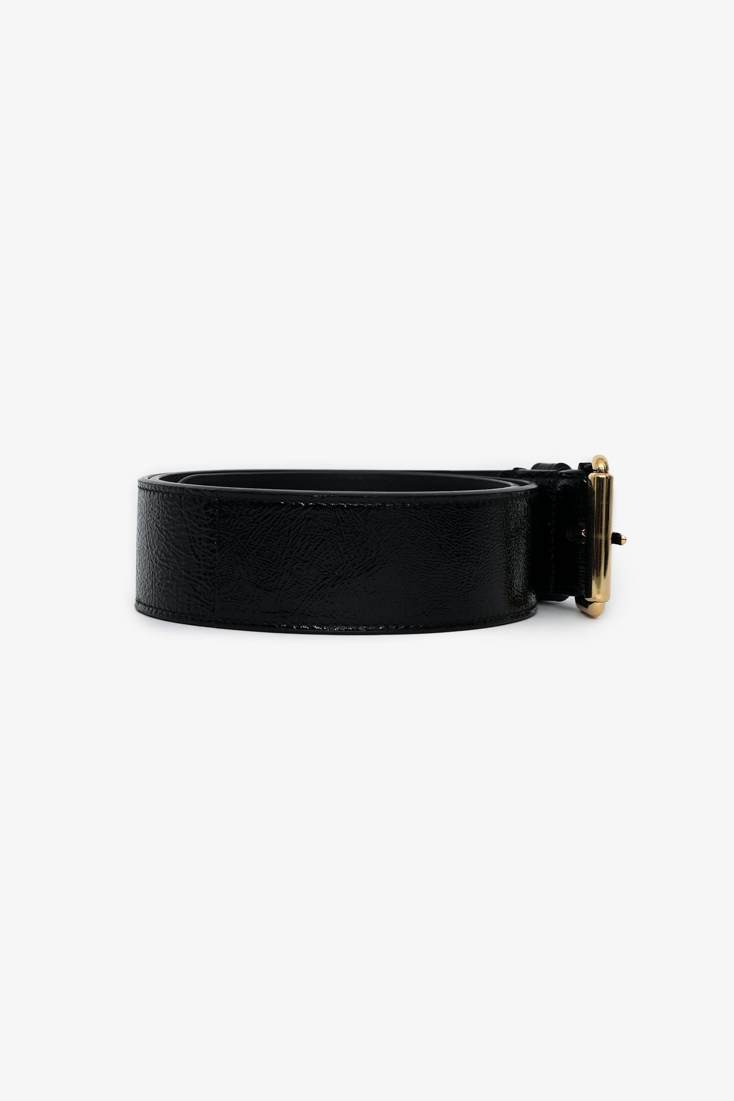 Refresh availabilityGucci Black Patent Leather Belt. Adjustable pull-through buckle closure. Gold-tone hardware.