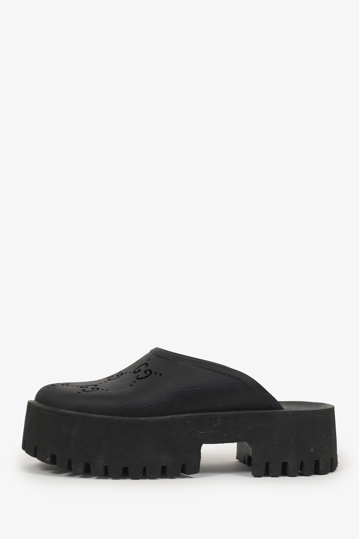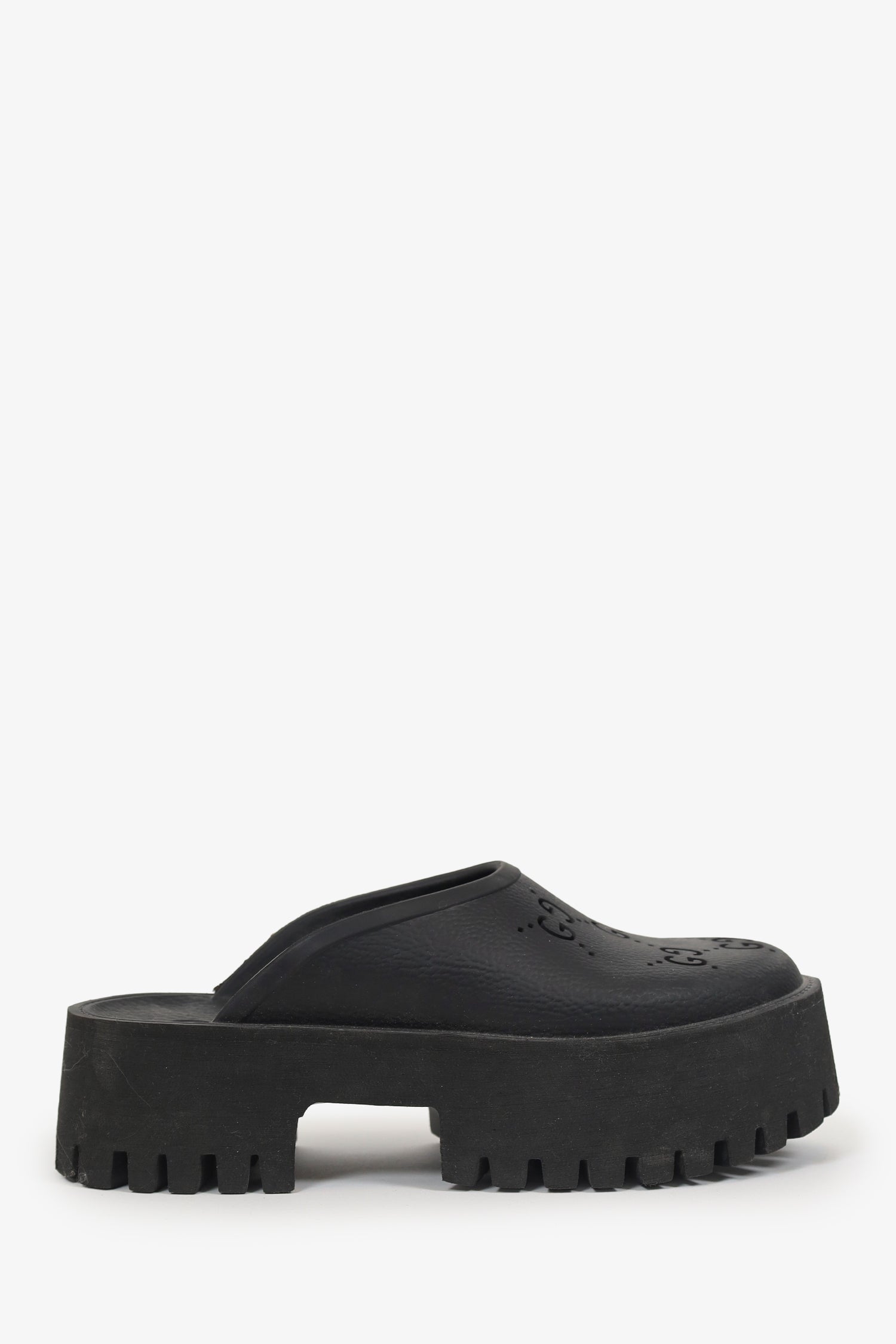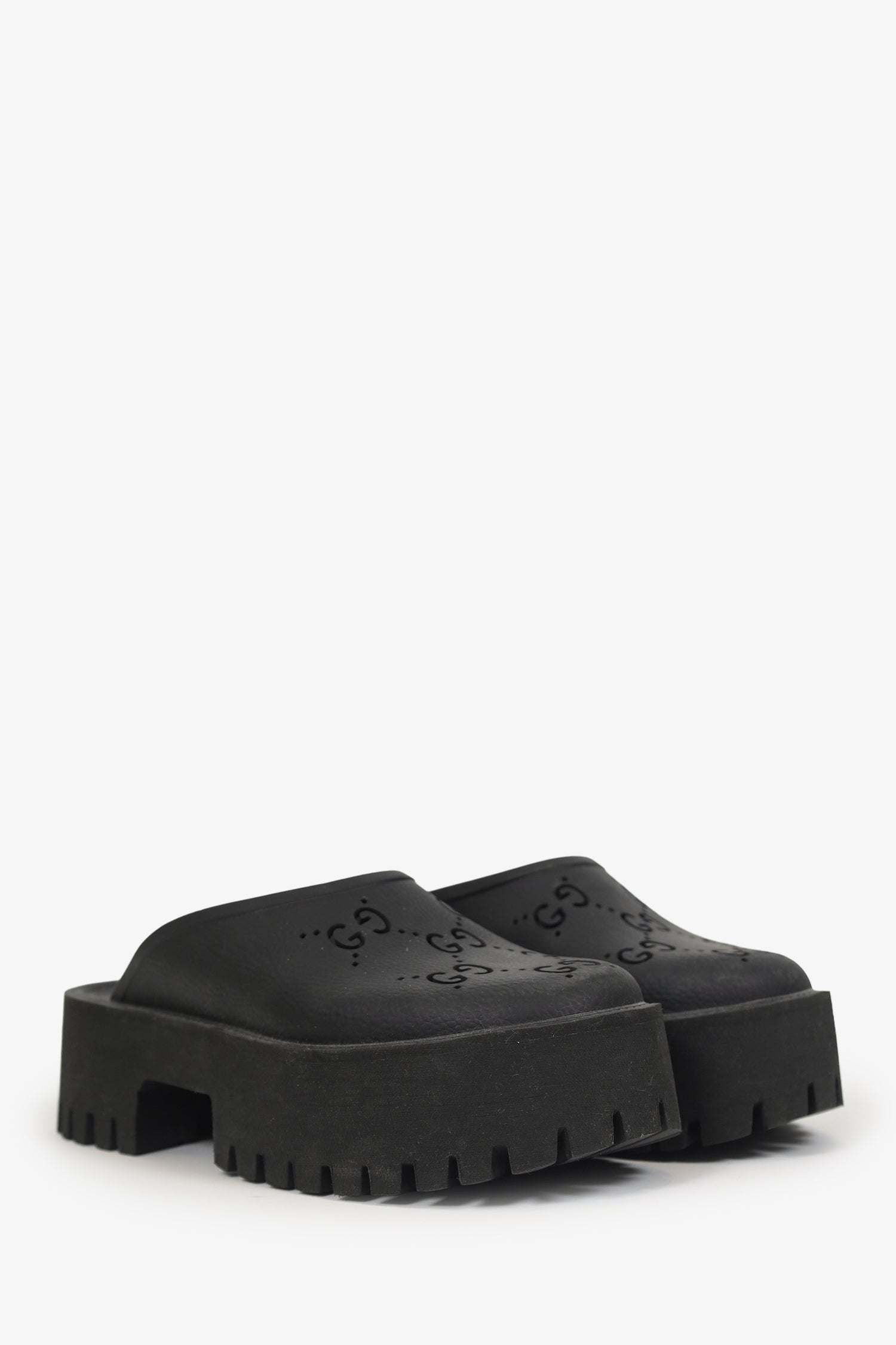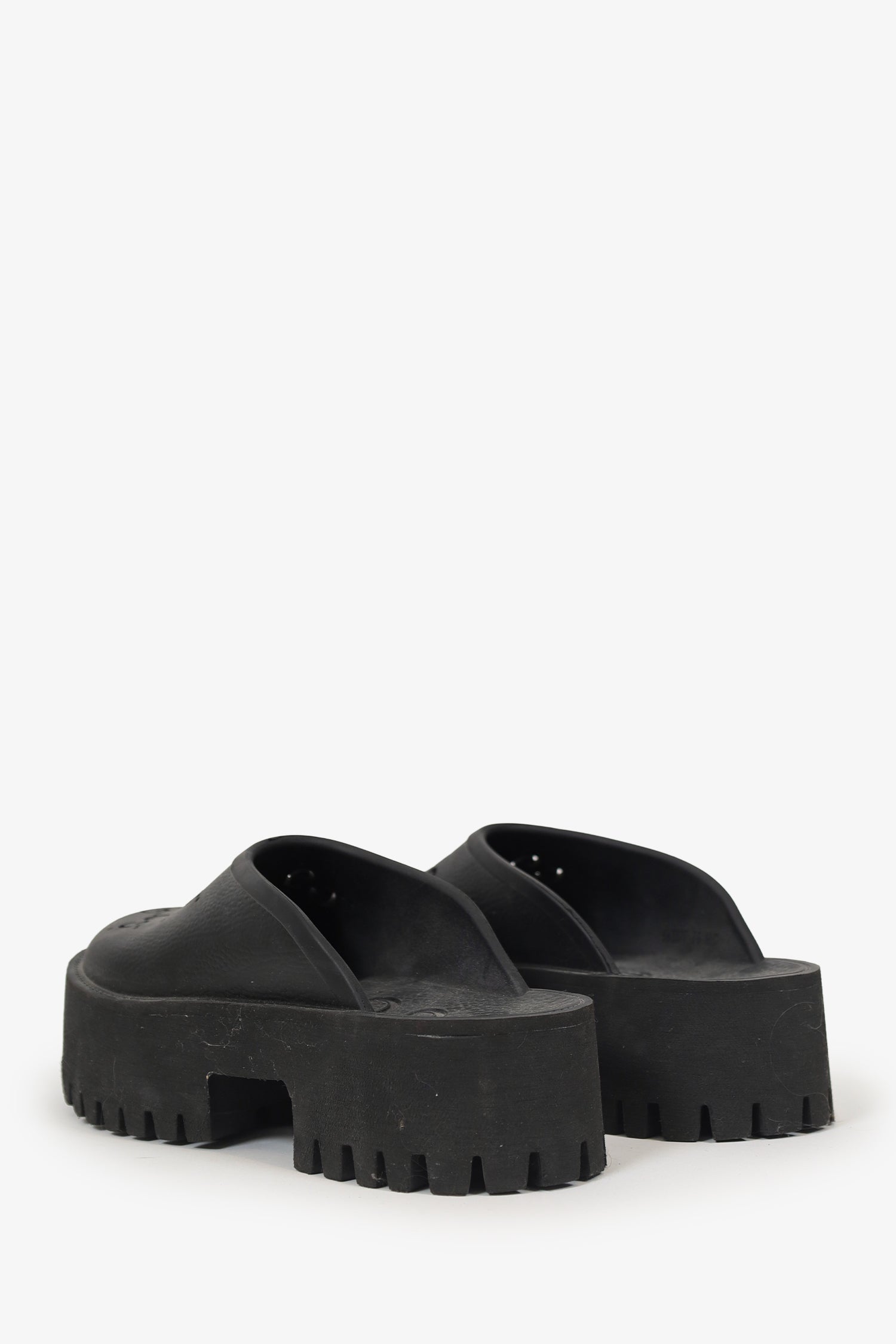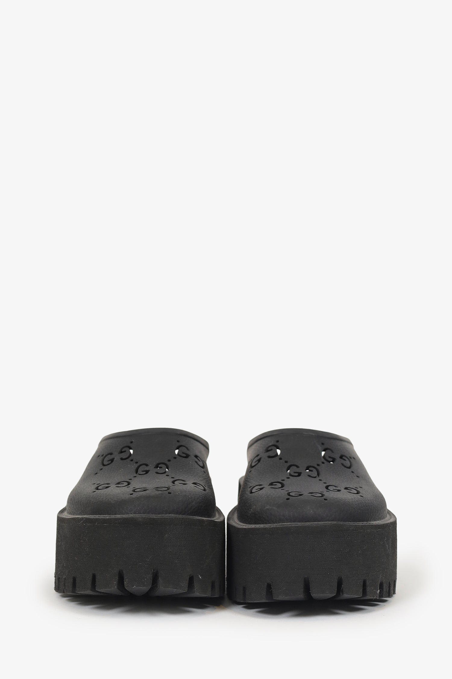 Gucci Black Rubber Perforated 'GG' Chunky Mules Size 38