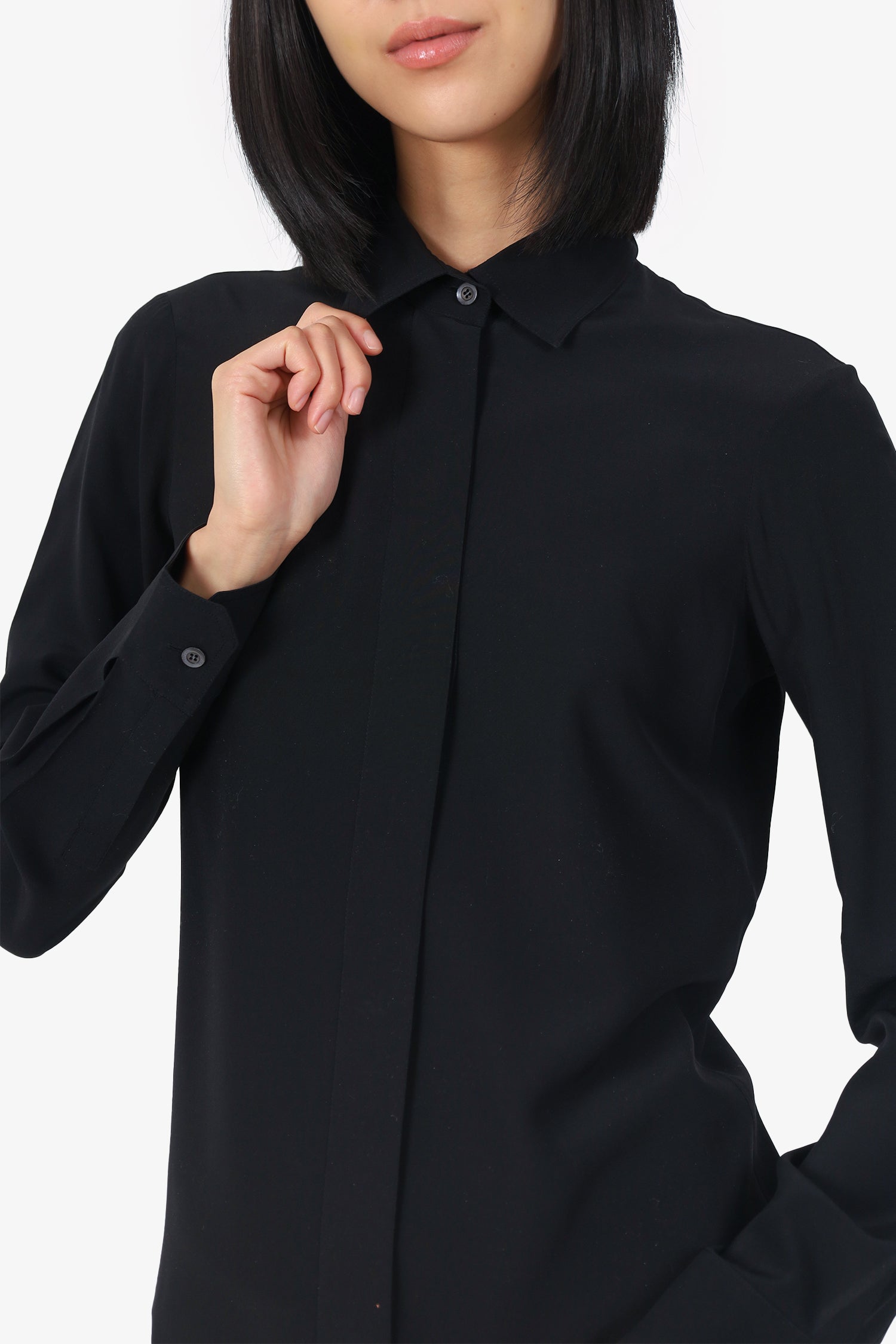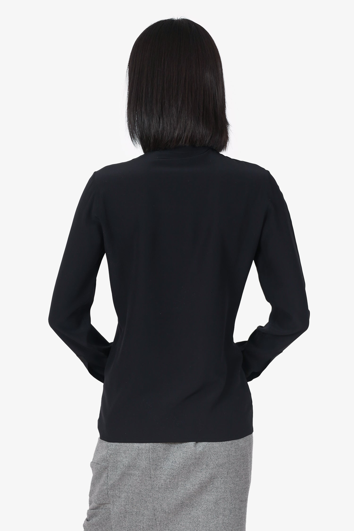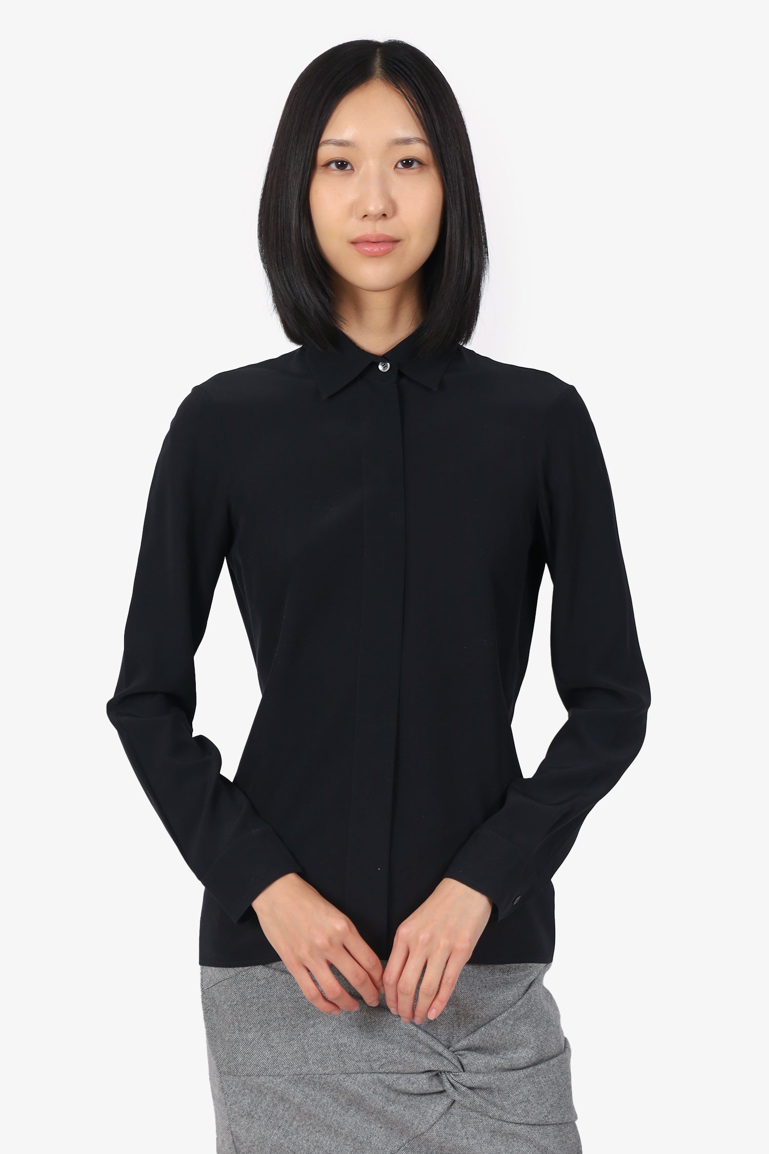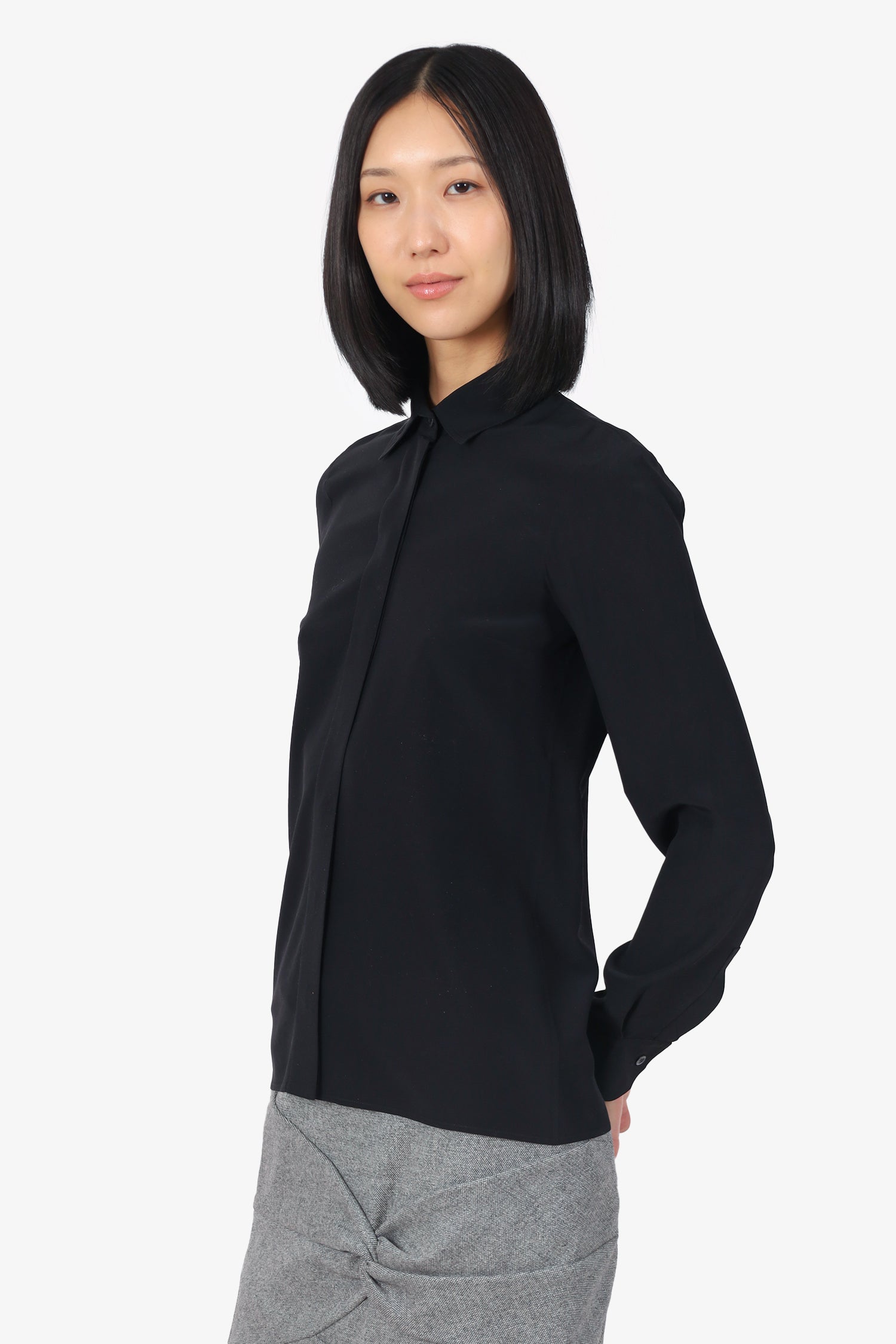 Refresh availabilityGucci Black Silk Button Down Blouse. Pull-on. Collared-neckline. Front button-up closure. Sleeve cuffs with button-up closure. Tonal stitching.