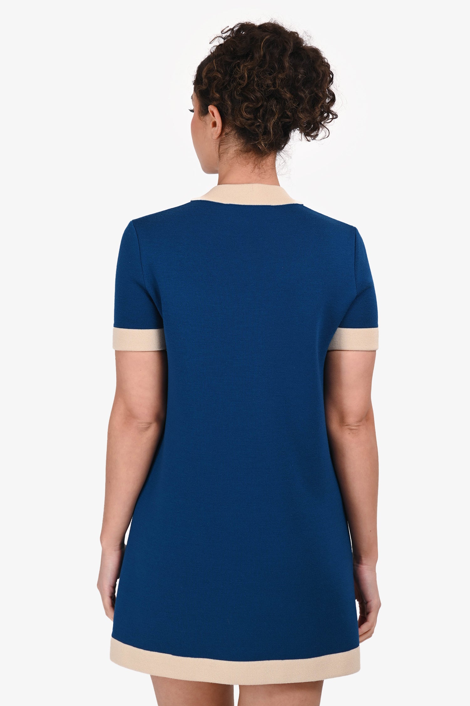 Gucci Blue/Cream GG Logo Short Sleeve Dress Size XS