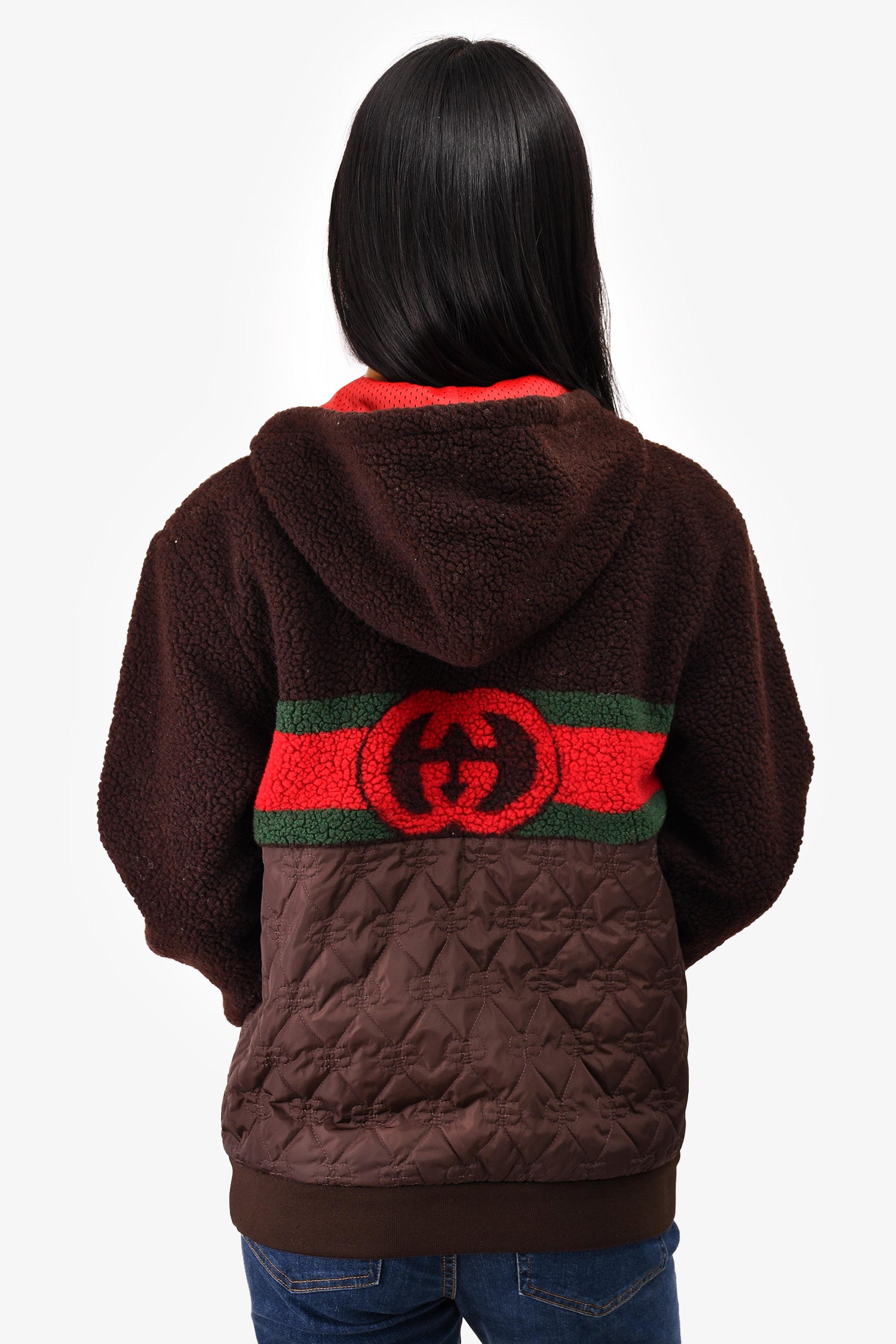 Refresh availabilityGucci Brown Fleece Logo Zip Up Hoodie. Front zip closure. Tonal stitching.